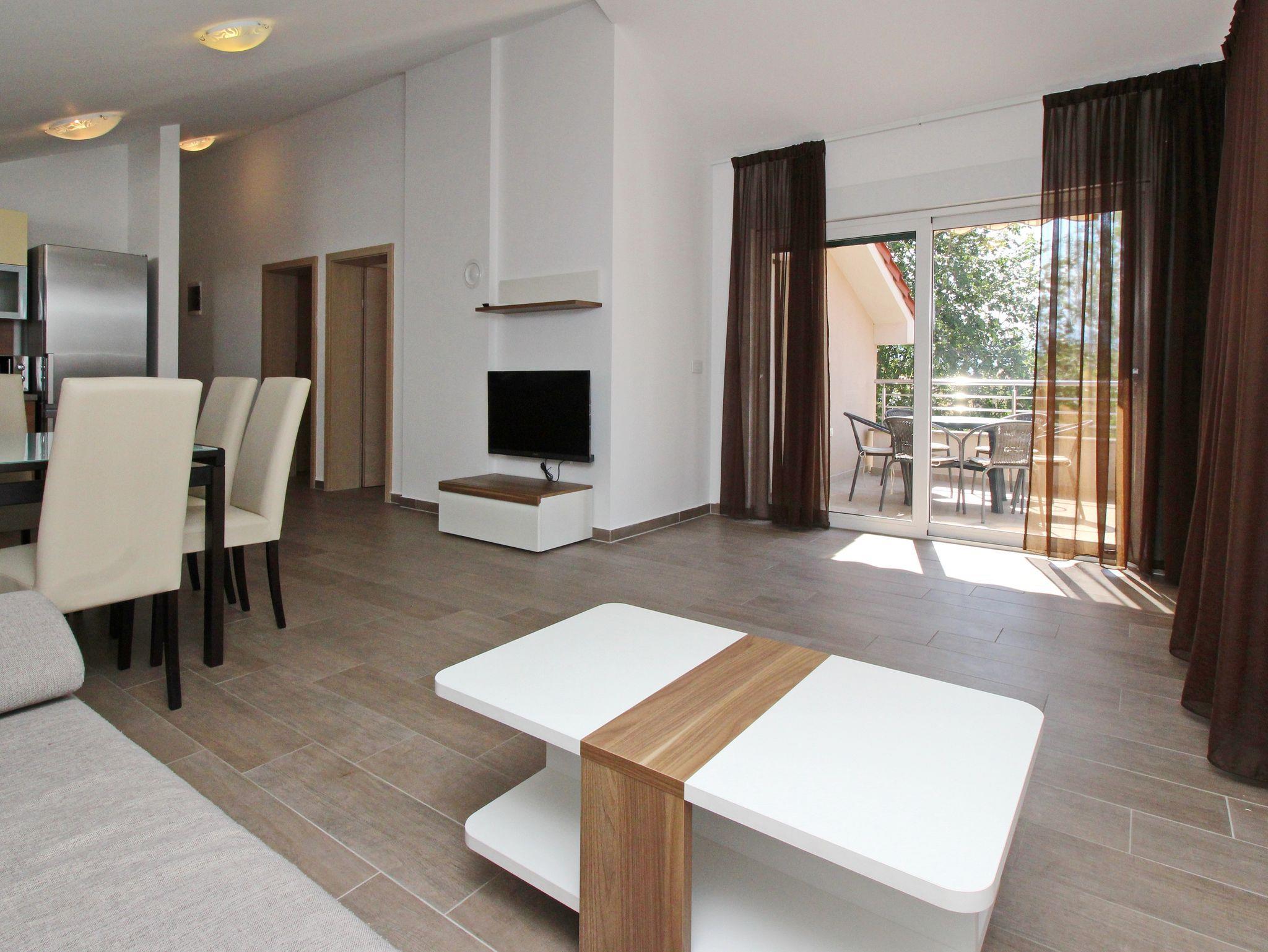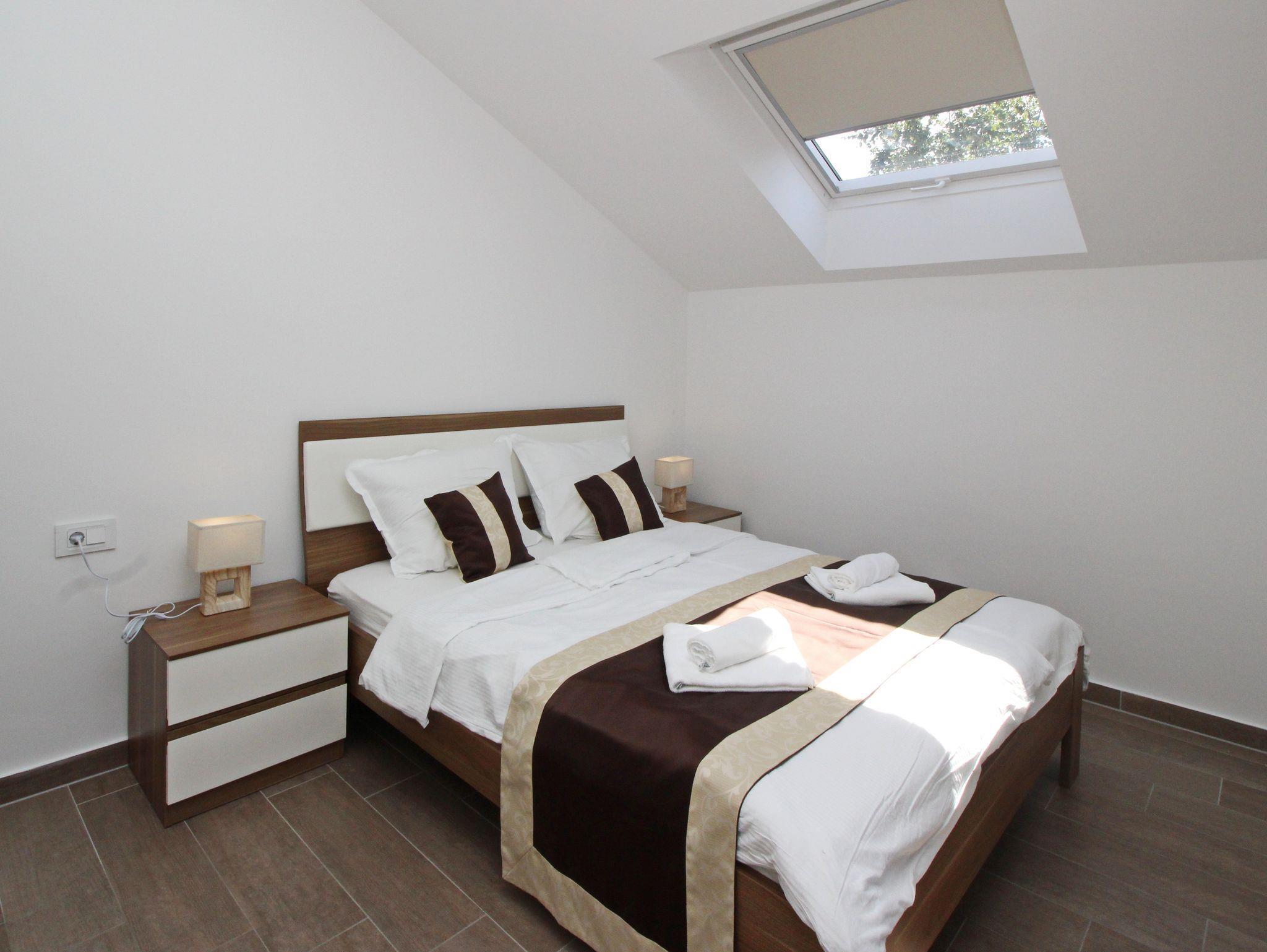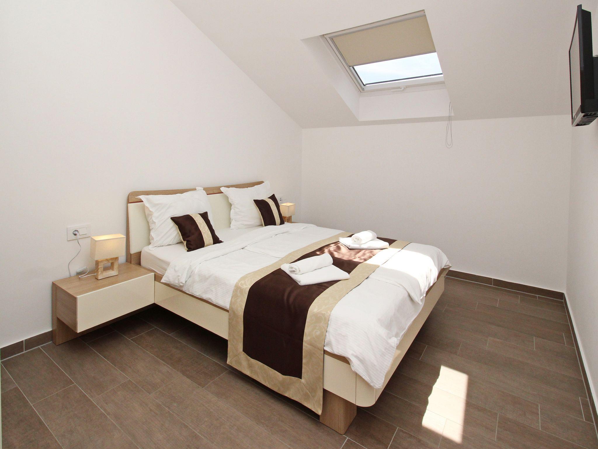 Ferienwohnung bietet Platz für 6 Gäste. Die Betten sind in Schlafzimmern, die es 2 gibt, und in Wohnzimmer, innerhalb einer Gesamtfläche von 63m2, angeordnet. Die Gäste haben eine eigene Terrasse zur Verfügung, auf der sie in warmen Sommernächten genießen können. In der Unterkunftseinheit besteht die Möglichkeit des Mitbringens von Haustieren gegen Aufpreis. IM PREIS INBEGRIFFEN: Kurtaxe, Endreinigung, Klimatisierung, Parkplatz, Internet. VERBINDLICHE ZUSÄTZLICHE KOSTEN: Aufzahlung für Kurzaufenthalte (prozentualer Zuschlag pro Nächtigungsanzahl: 30% - 1, 20% - 2, 10% - 3). UNVERBINDLICHE ZUSÄTZLICHE KOSTEN: Haustiere (10,00 € pro Nacht). Die Verfügbarkeit zusätzlicher Dienstleistungen in Ihrem reservierten Termin und die Preise derselben (falls nicht aufgeführt) müssen im Voraus überprüft werden. Zusätzliche Dienstleistungen die in der Zahlungsaufforderung nicht aufgeführt sind werden direkt beim Vermieter bezahlt, angenommen der Gast nutzt auch diese.