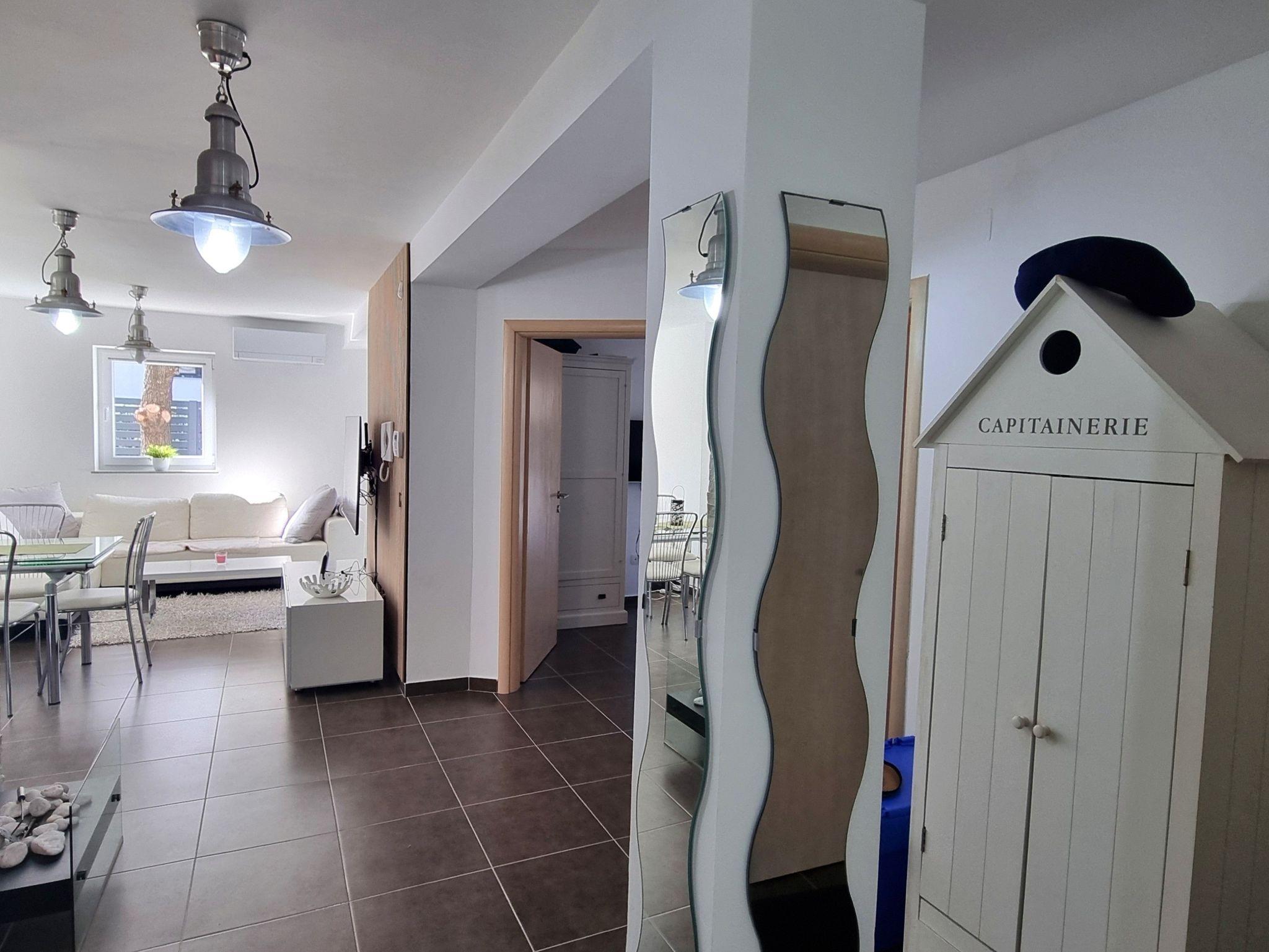 Ferienwohnung bietet Platz für 8 Gäste. Die Betten sind in Schlafzimmern, die es 3 gibt, und in Wohnzimmer, innerhalb einer Gesamtfläche von 100m2, angeordnet. Die Gäste haben eine eigene Terrasse zur Verfügung, auf der sie in warmen Sommernächten genießen können. IM PREIS INBEGRIFFEN: Kurtaxe, Endreinigung, Klimatisierung, Parkplatz, Internet. VERBINDLICHE ZUSÄTZLICHE KOSTEN: Aufzahlung für Kurzaufenthalte (prozentualer Zuschlag pro Nächtigungsanzahl: 30% - 1, 20% - 2, 10% - 3). Die Verfügbarkeit zusätzlicher Dienstleistungen in Ihrem reservierten Termin und die Preise derselben (falls nicht aufgeführt) müssen im Voraus überprüft werden. Zusätzliche Dienstleistungen die in der Zahlungsaufforderung nicht aufgeführt sind werden direkt beim Vermieter bezahlt, angenommen der Gast nutzt auch diese.