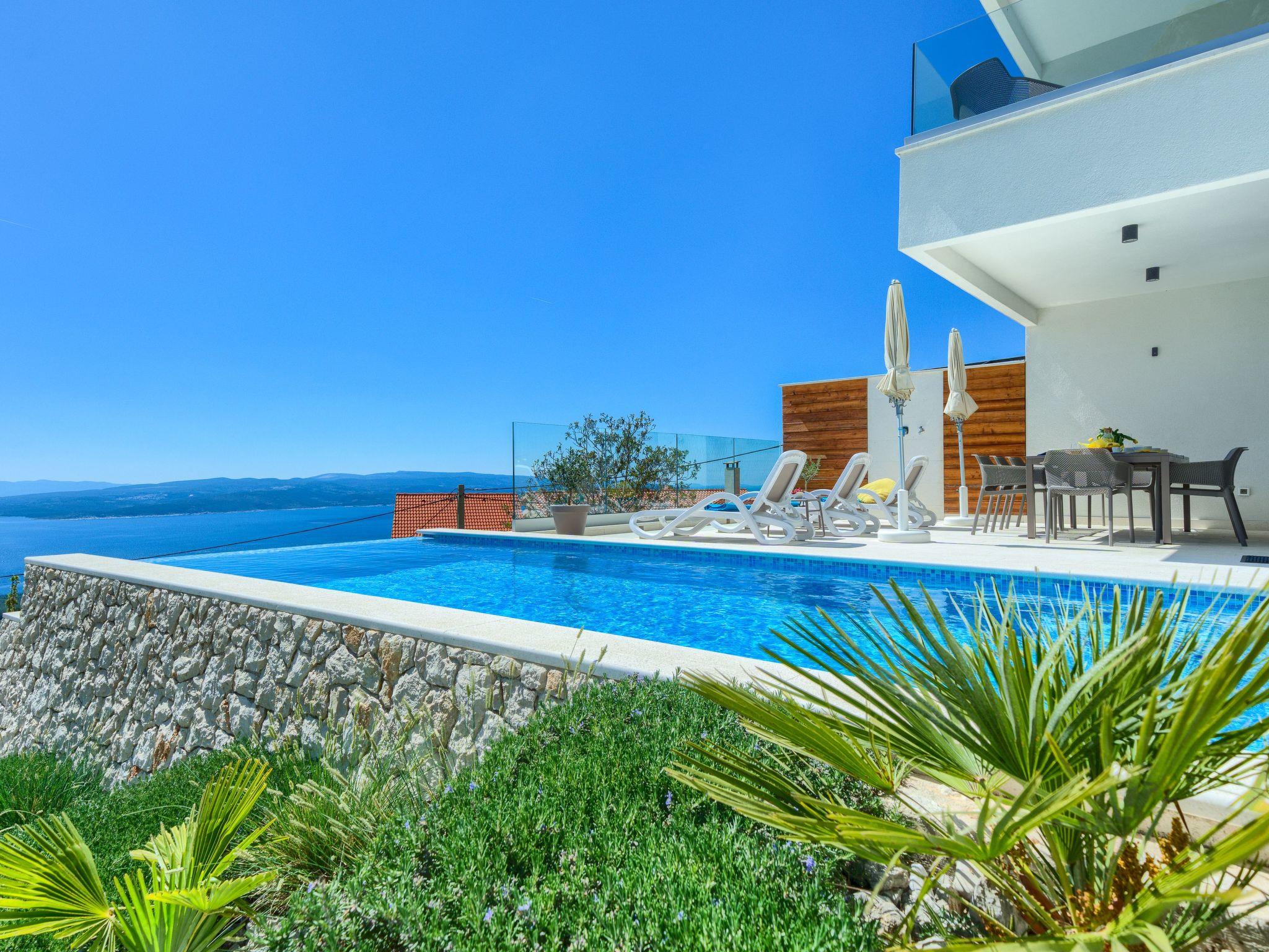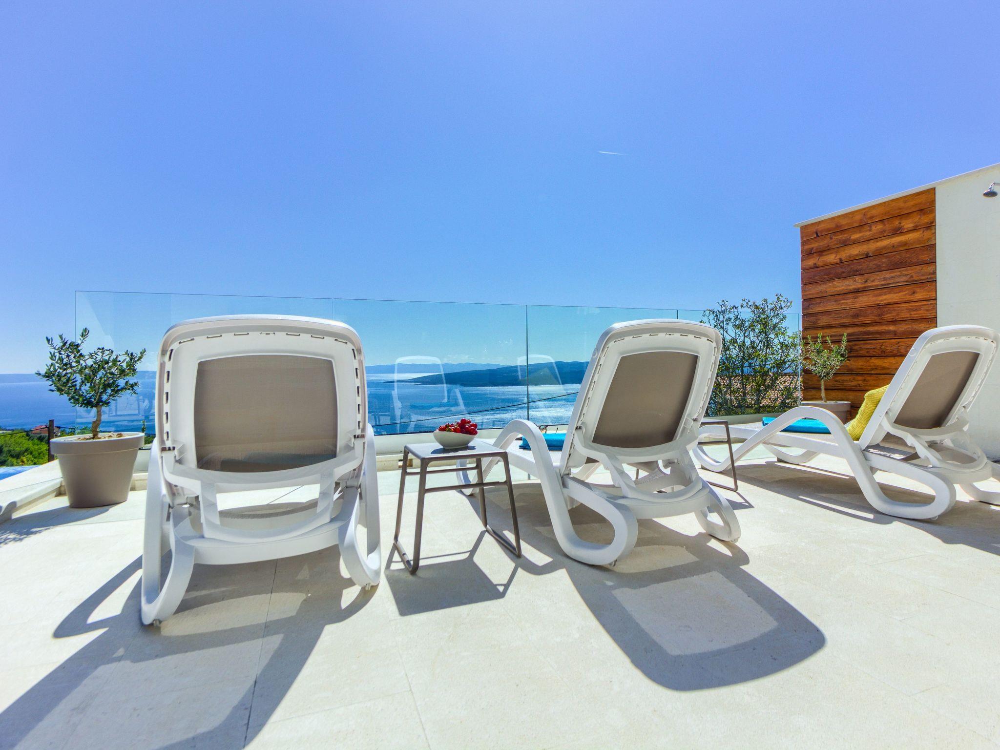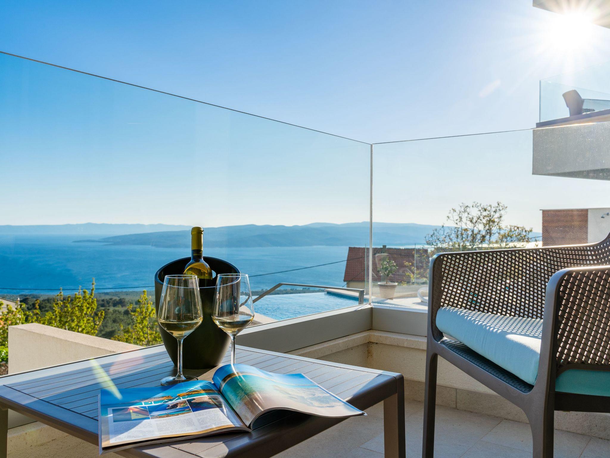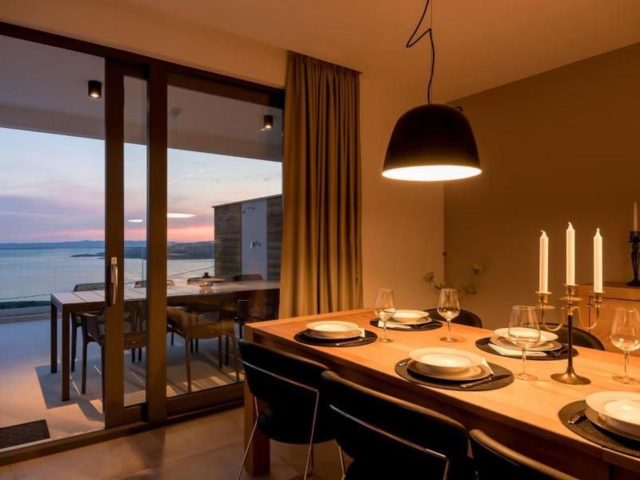 Der Außenbereich lässt keine Wünsche offen: Eine Hauptterrasse mit beheiztem Infinity-Pool, Sonnenliegen, Sonnenschirmen, Außendusche und einem Esstisch für acht Personen bietet den perfekten Rahmen, um in die wahre mediterrane Atmosphäre einzutauchen. Genießen Sie die atemberaubenden Sonnenuntergänge im Jacuzzi oder entspannen Sie in der Sauna, während Sie die spektakuläre Aussicht auf die Inseln Brac und Hvar bewundern.