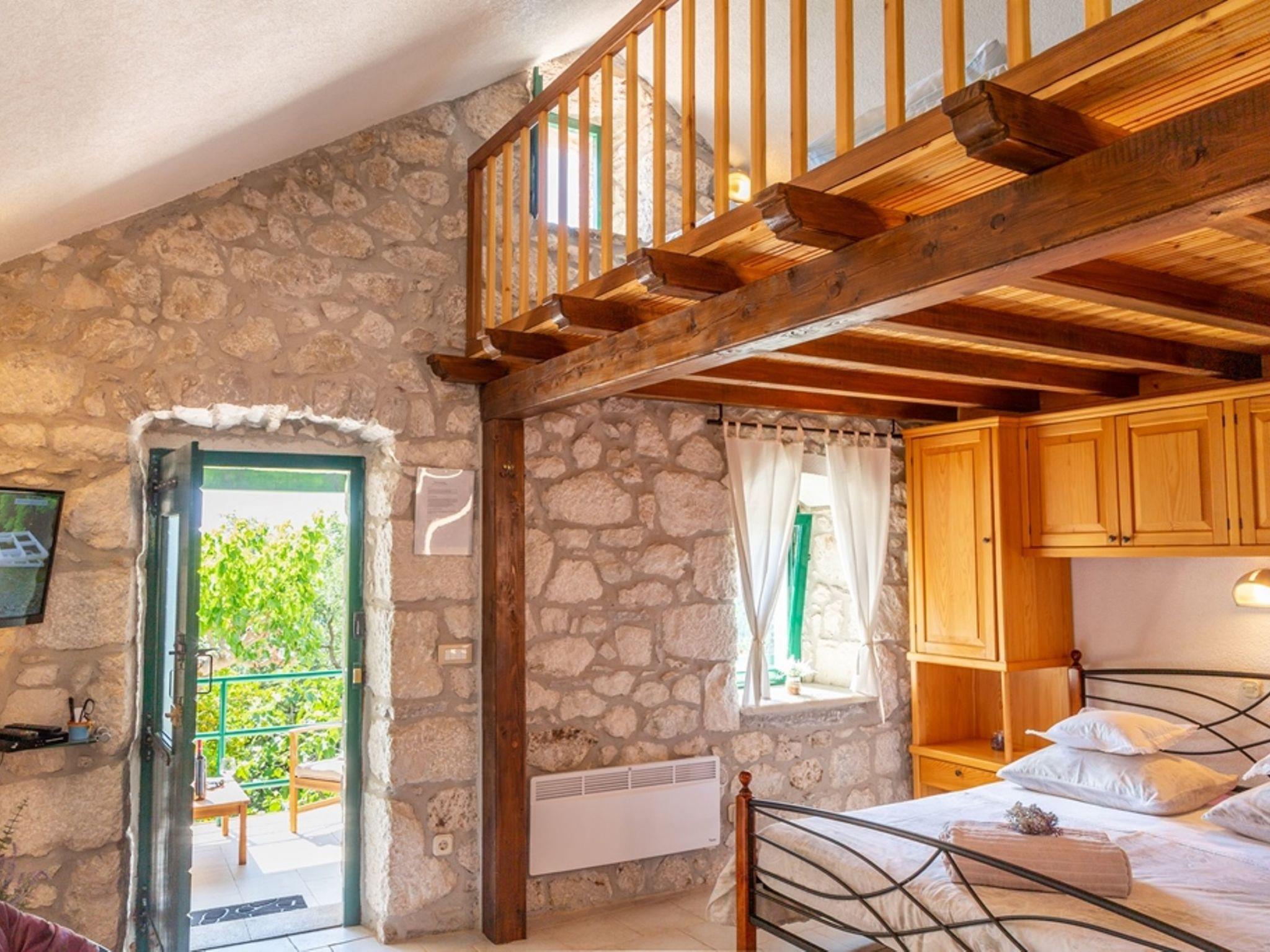 Einzigartiges Ferienhaus ist einer der schönsten Urlaubsorte der Welt und lädt Abenteuer- und Naturliebhaber zu einem Urlaub voller Sightseeing, gastronomischer Erlebnisse, Segeltörns zu den Nachbarinseln mit Privatbooten oder leichten Wanderungen und Buggy-Abenteuererlebnissen ein.Authentisches Steinhaus Nikola befindet sich im malerischen Dorf Bast, auf 400 m Meereshöhe, oberhalb des Dorfes Baska Voda. Das Haus blickt auf eine 200-jährige Geschichte zurück und wurde 2014 komplett renoviert. Es bietet einen atemberaubenden Meerblick und viel Privatsphäre. Die Unterkunft ist sehr sauber und komfortabel eingerichtet. Der Pool ist eine tolle Erfrischung an den heißen Tagen..wird jeden Morgen gereinigt. Das Haus liegt 3 km vom Strand entfernt, umgeben von anderen alten Steinhäusern, Bergen und wunderschöner Natur, während sich der schöne Blick auf die dalmatinischen Inseln, die Küste und das Meer erstreckt.Das Haus hat zwei Etagen und ist sehr schön eingerichtet.Im Erdgeschoss befindet sich die Taverne, in Dalmatien als Konoba bekannt, mit einem Grillplatz, einer Küche und einem Esstisch. Im ersten Stock gibt es ein Schlafzimmer mit einem Doppelbett, eine Sitzecke, eine kleine Küche mit Kühlschrank, Mikrowelle und Kaffeemaschine und ein Badezimmer mit Dusche und Waschmaschine. In dem Zimmer auf der Galerie gibt es ein Zusatzbett für 2 Kinder bis 15 Jahre. Vor dem Haus befindet sich die Terrasse mit einer Veranda-Schaukel, Esstisch und Außenpool (beheizt) mit Dusche und Liegestühlen. Der Parkplatz ist 150 m vom Haus entfernt.