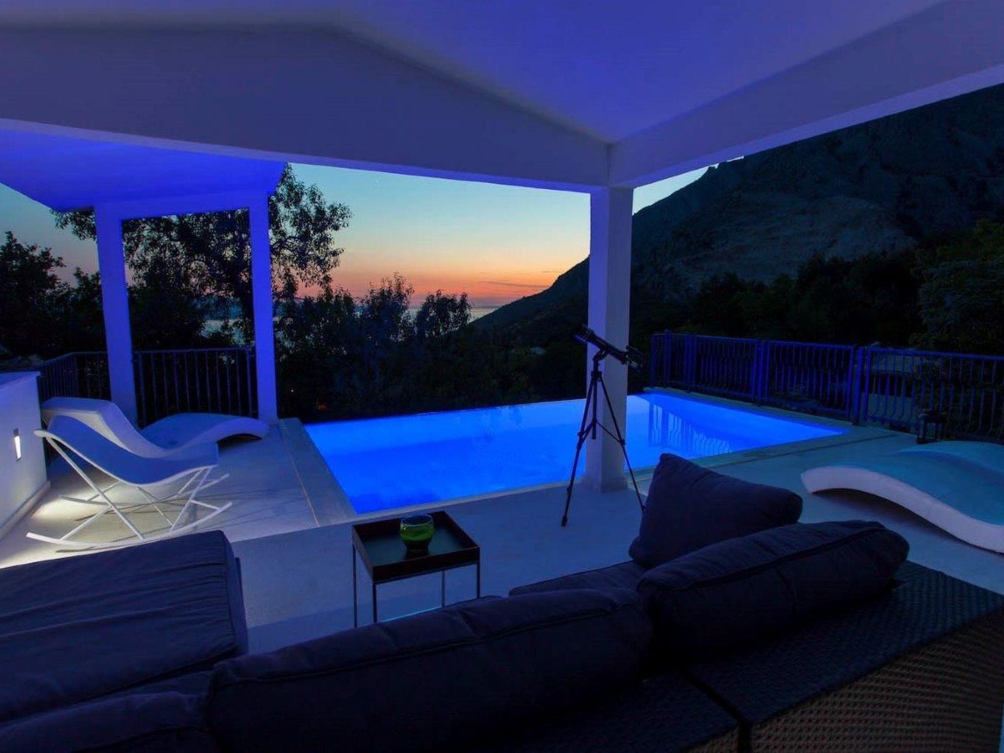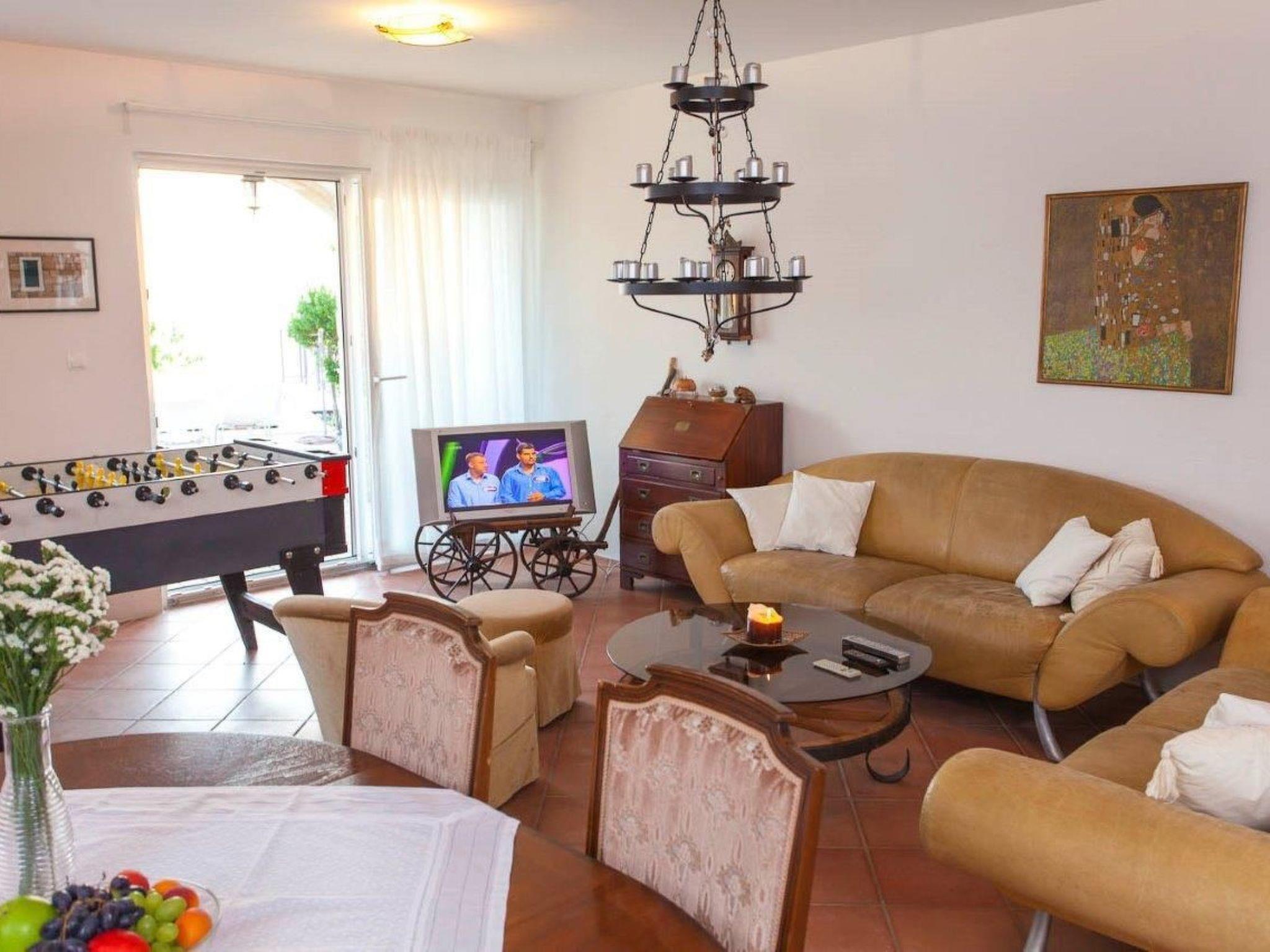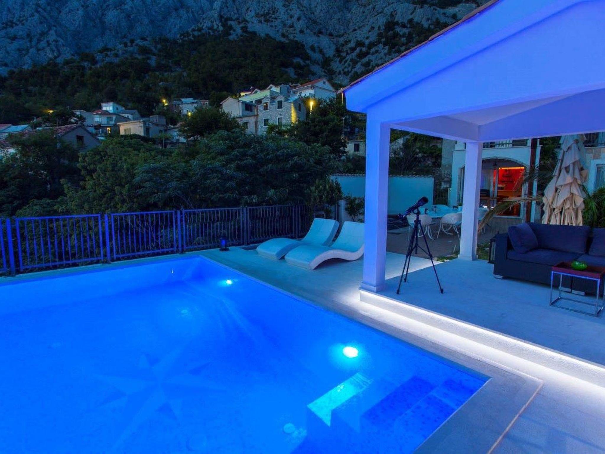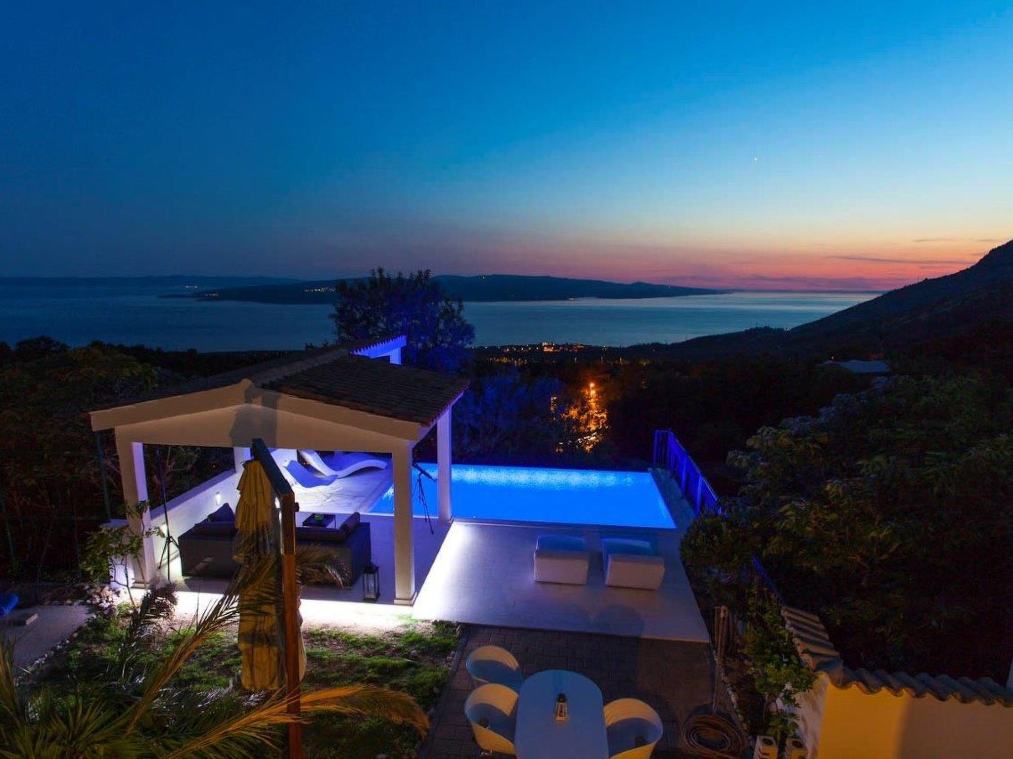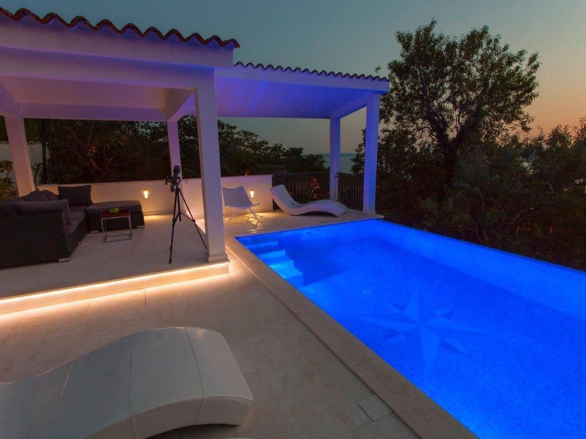 Im weitläufigen Außenbereich der Villa finden Sie eine Welt der Erholung und Entspannung. Tauchen Sie ein in die Freuden eines beheizten Swimmingpools, der mit seiner Gegenstromanlage sowohl zum belebenden Schwimmen als auch zum entspannenden Eintauchen einlädt. Oder genießen Sie die Sonne auf der großzügigen Liegewiese. Die Villa bietet mehrere Plätze, um im Freien zu speisen oder sich im Schatten mit einem Buch zu entspannen. Der neu errichtete Grillplatz lädt zu geselligen Abenden im Freien ein, bei denen Sie das dalmatinische Lebensgefühl unter den Sternen genießen können.
