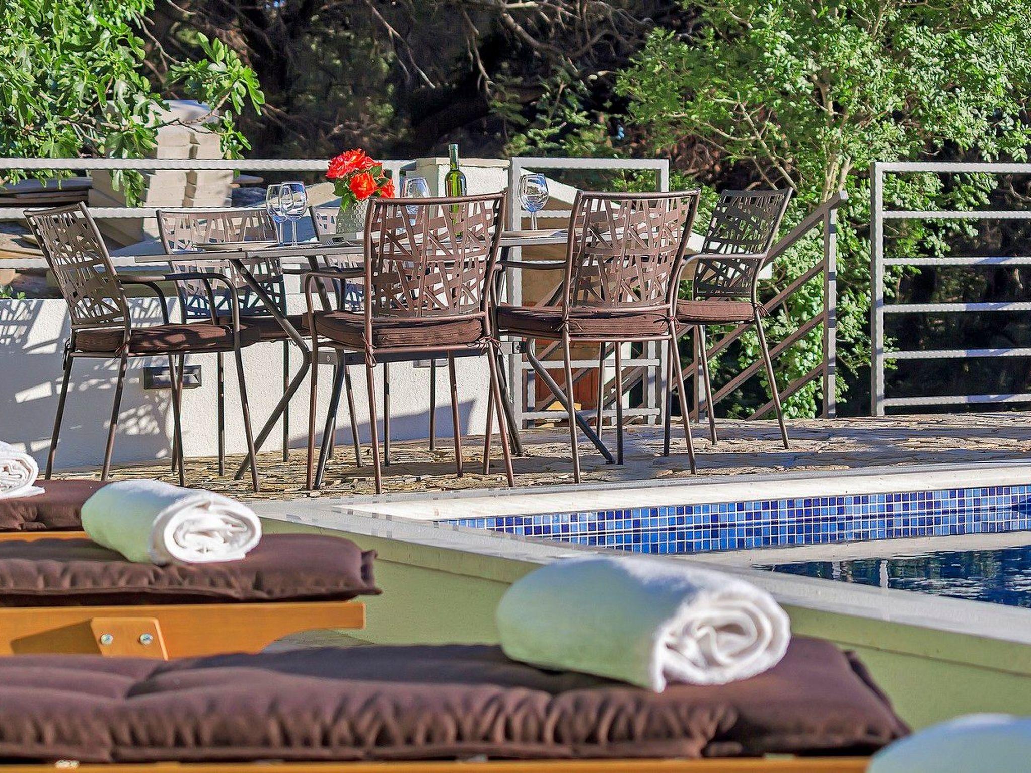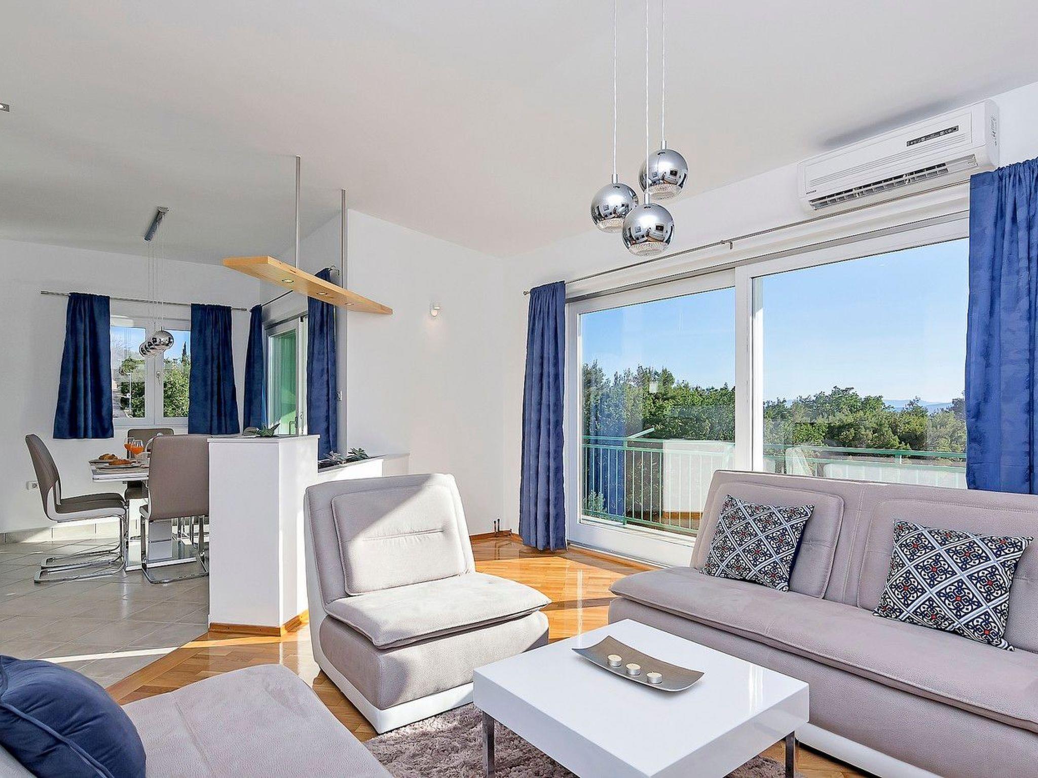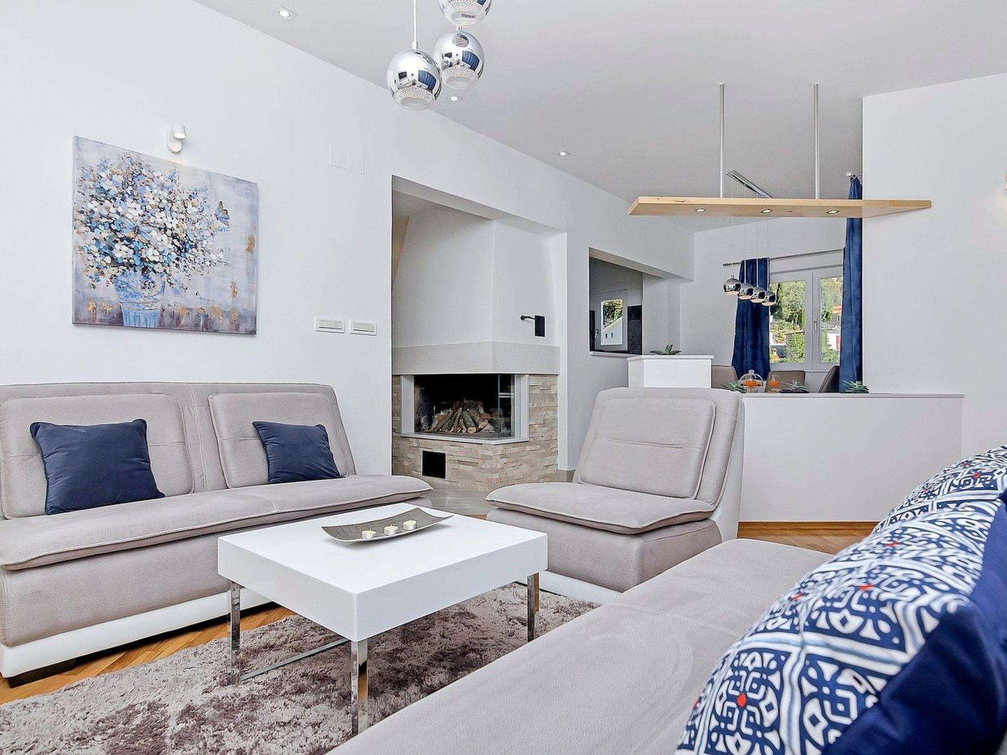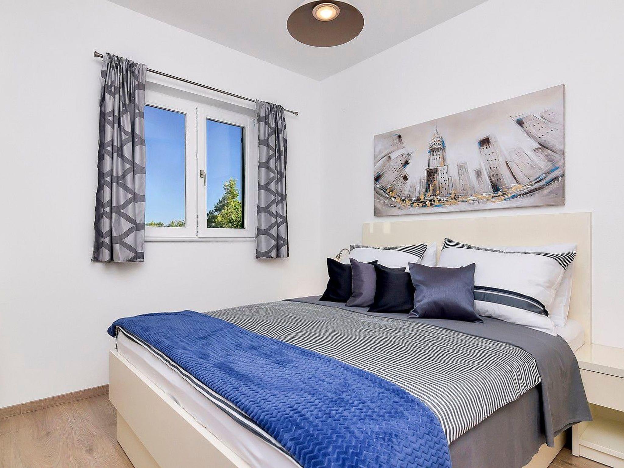 Es stehen Ihnen insgesamt drei Schlafzimmer mit Doppelbett zur Verfügung. Das Ferienhaus verfügt über drei Etagen, zwei davon werden vermietet, die Erste Etage ist geschlossen und wird werder bewohnt noch vermietet. Auf der zweiten Etage befindet sich eine komplette Wohnung mit zwei Schlafzimmern, beide mit Doppelbett und eigenem Badezimmer ausgestattet. Das geräumige Wohnzimmer mit Kamin, offene Küche und Balkon mit schönem Meerblick. Alle Räume sind klimatisiert, WLAN, TV/SAT mit Deutschen Programmen. Im Erdgeschoß, neben dem Pool, befindet sich das Dritte Schlafzimmer mit Doppelbett und Badezimmer. Die Terrasse mit beheiztem Pool, Sonnenliegen, Aussendusche lädt zum entspannen ein. Das Ferienhaus Sergio ist deal für Familien Mit Kindern für Urlaub in Dalmatien.