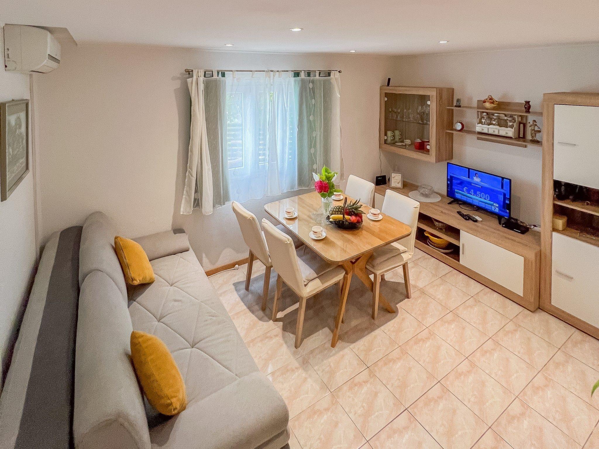 Entdecken Sie dieses einladende Ferienhaus in Bast, gelegen an der malerischen Makarska Riviera, das perfekt für eine Familie oder eine kleine Gruppe von bis zu 4 Personen ausgerichtet ist. Freuen Sie sich auf die idyllische Lage oberhalb der Küste mit atemberaubendem Blick auf das Meer, umgeben von der ruhigen und beeindruckenden Natur am Fuße des Berges Biokovo. Dieses freistehende Domizil ist eine Oase der Ruhe, ideal für alle, die dem Alltag entfliehen und in die Schönheiten Dalmatiens eintauchen möchten.
