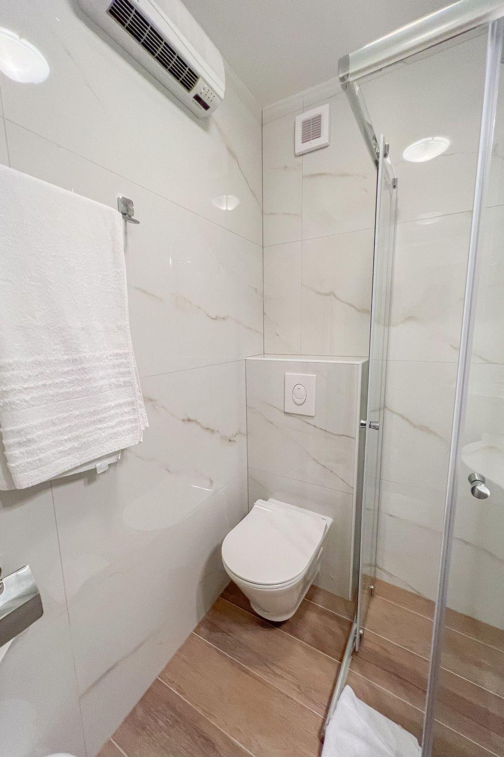 Das ebenerdige Ferienhaus empfängt Sie mit einem funktionellen und einladenden Inneren, das darauf abgestimmt ist, Ihren Aufenthalt so angenehm wie möglich zu gestalten. Mit zwei Schlafzimmern, darunter ein gemütliches Zimmer mit einem Doppelbett und ausreichend Stauraum sowie ein Wohnzimmer, das zusätzlich ein Schlafsofa für zwei Personen bereitstellt, findet hier jede Person ihren Platz zum Entspannen. Die klimatisierte Atmosphäre sorgt dabei jederzeit für angenehme Temperaturen.