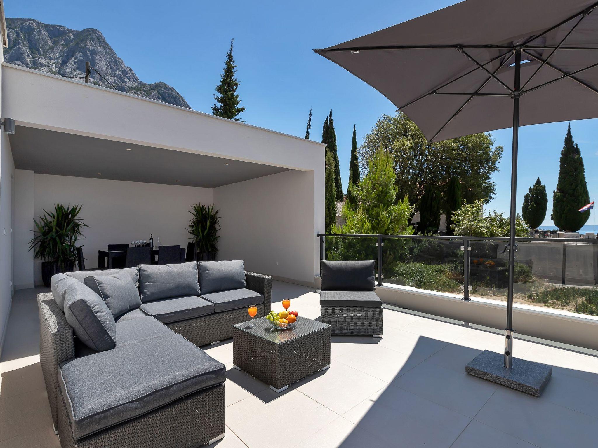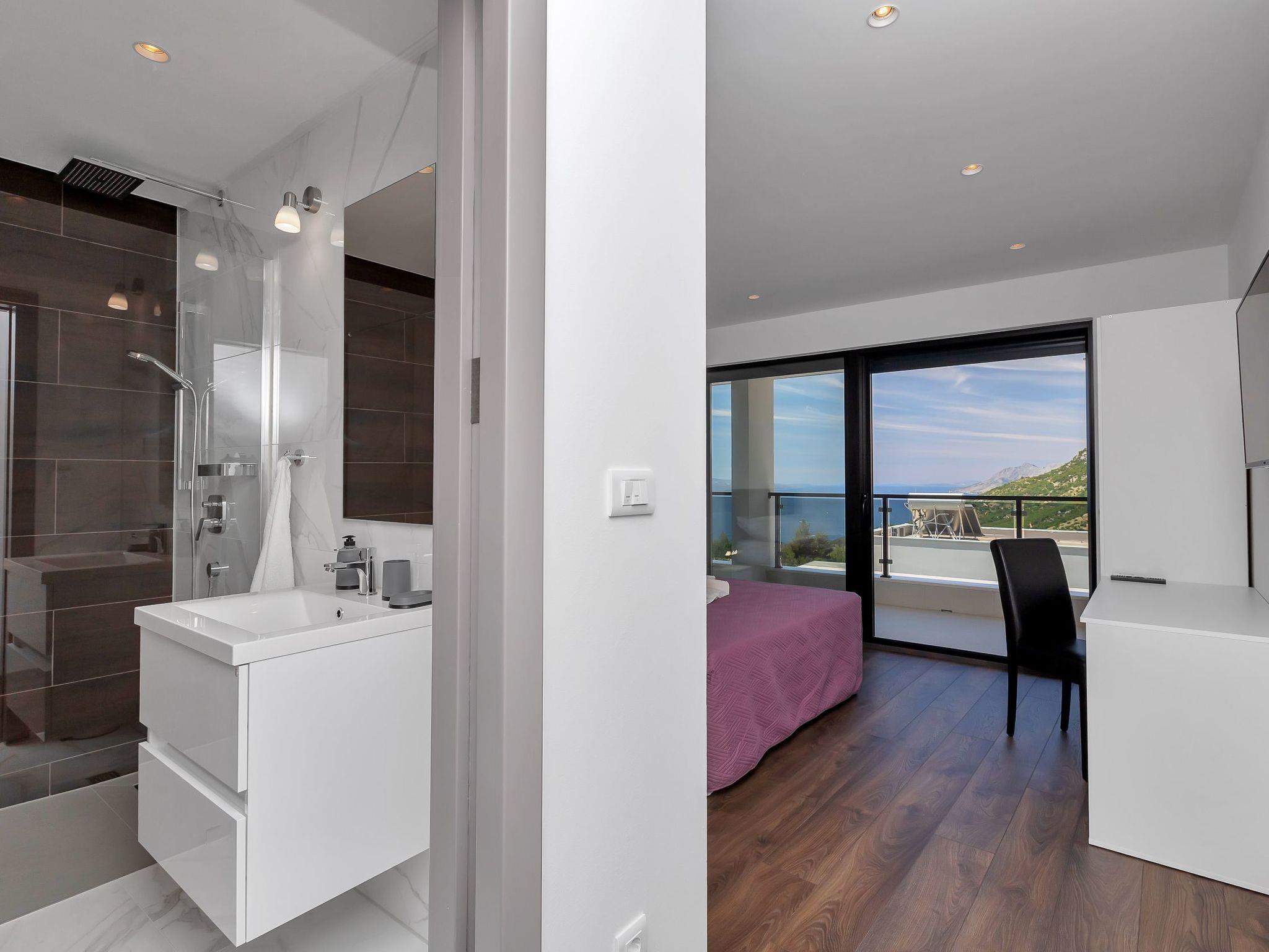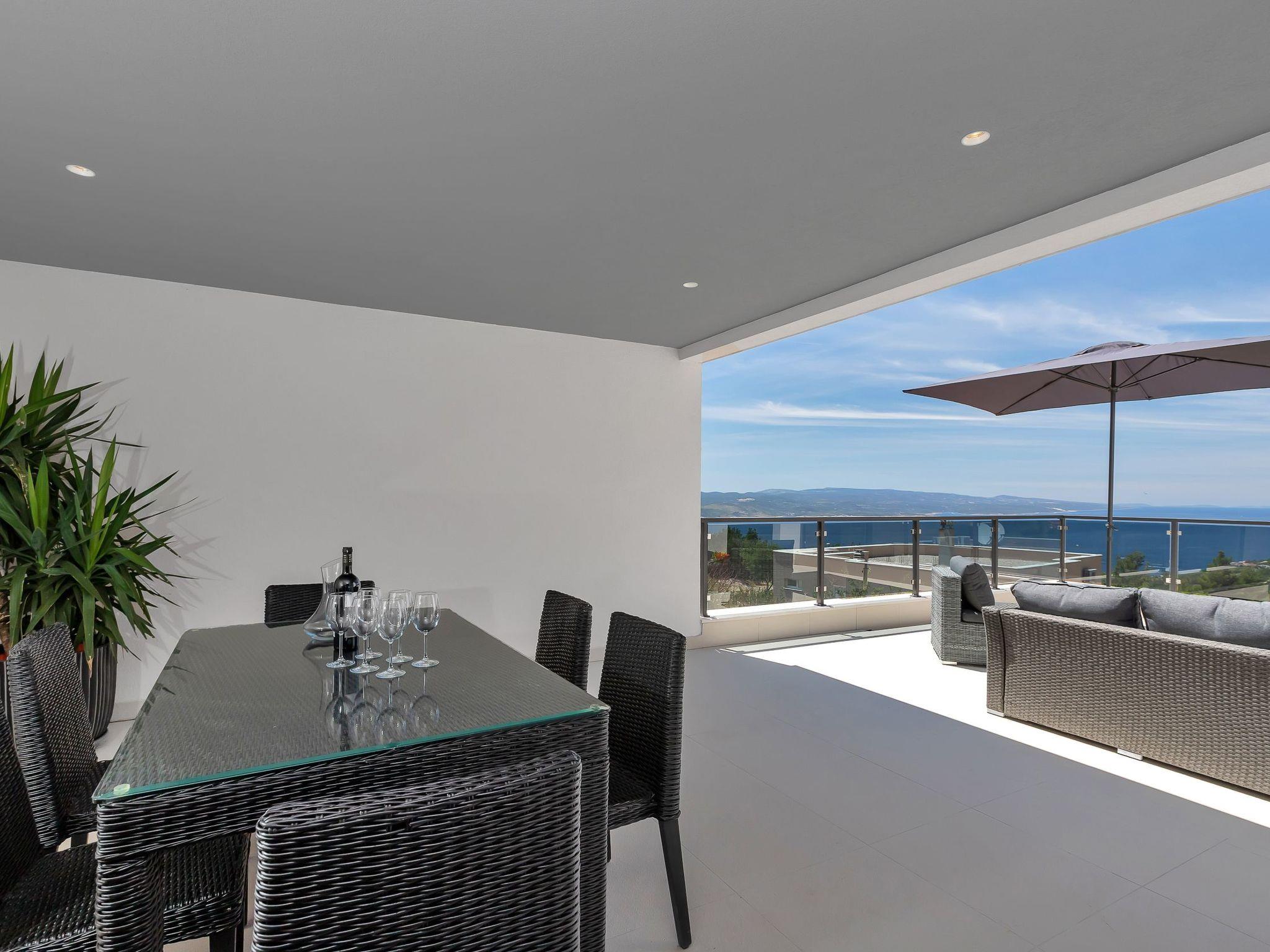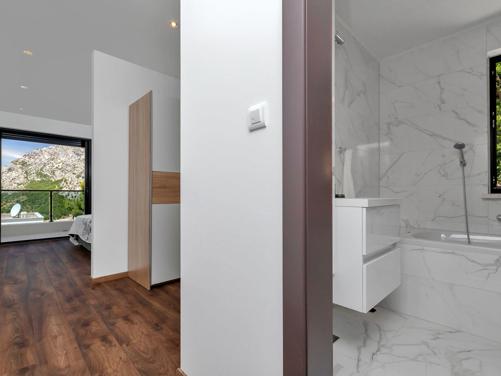 Die Villa E ist ein brandneues, modernes Ferienhaus, das sich in ruhiger Lage im malerischen Ort Bast, oberhalb der Küste von Baška Voda, befindet. Auf zwei Etagen bietet das Haus alles, was Sie für einen entspannten und luxuriösen Urlaub benötigen.