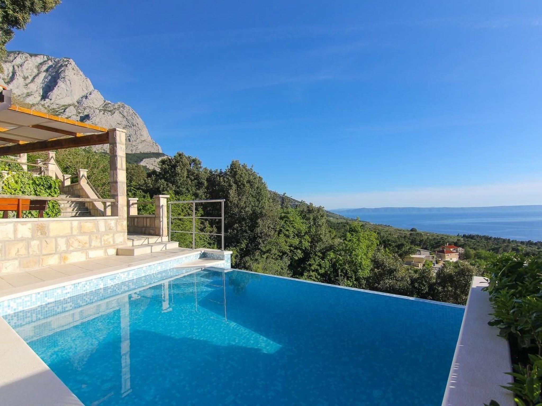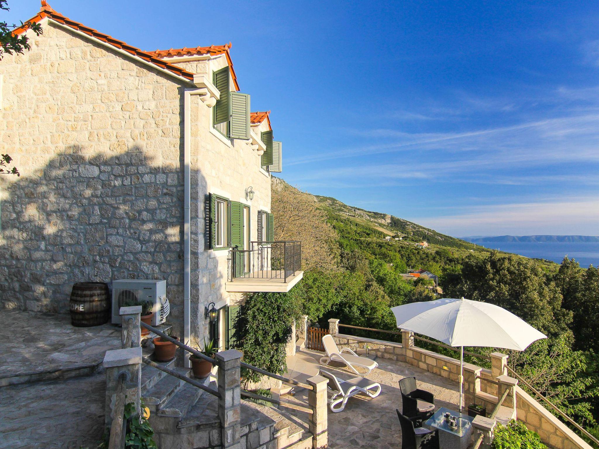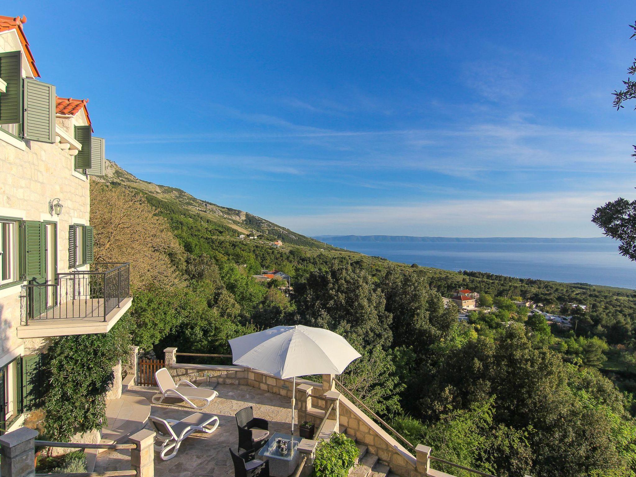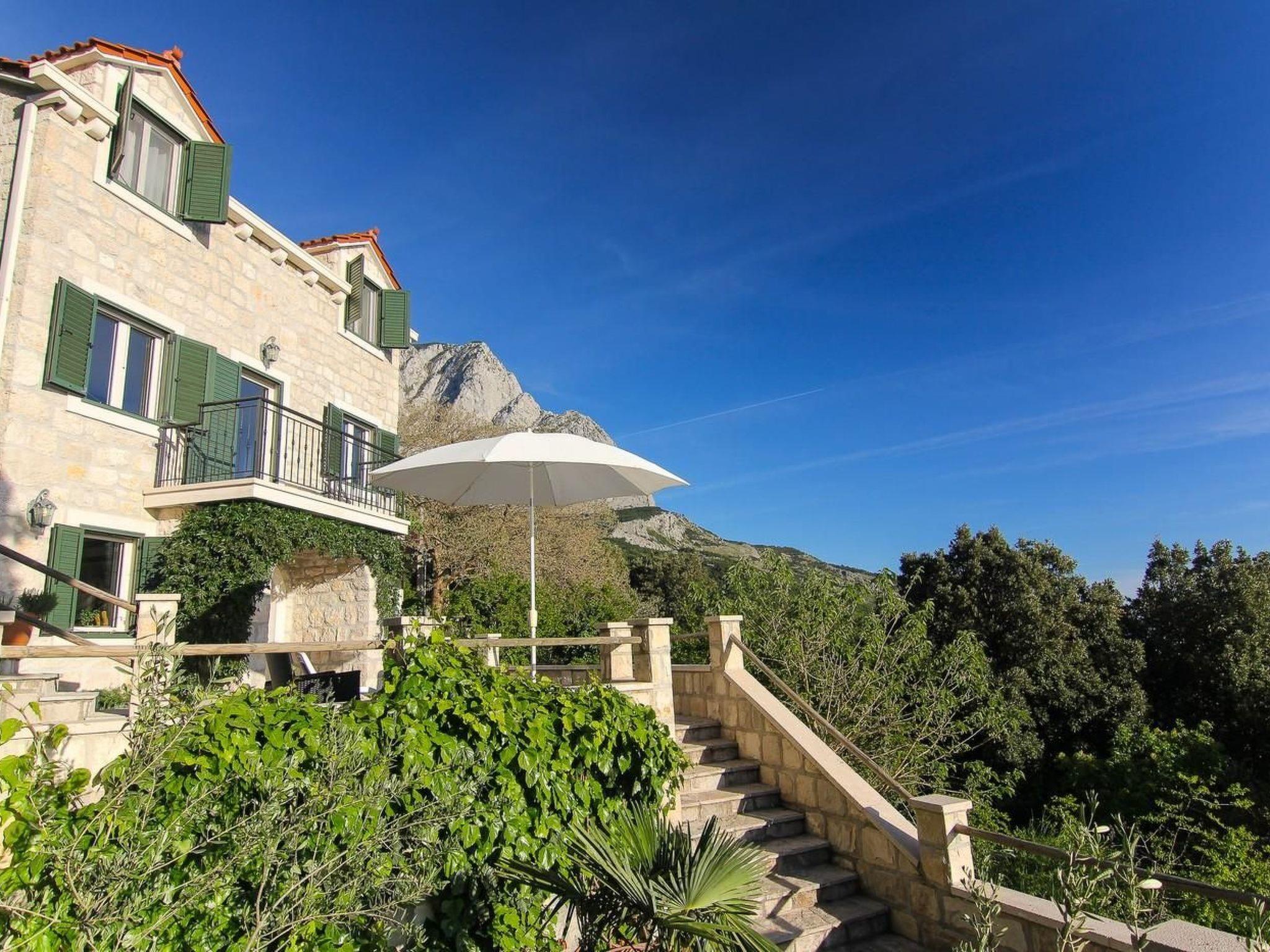 Dieses Ferienhaus mit Pool liegt oberhalb von Baška Voda, am Weiler Bast und wurde 2012 vollkommen renoviert.