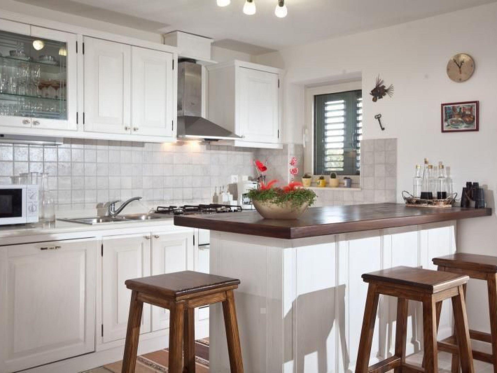 Von der Küche aus erreicht man die Terrasse mit Pool. Zwei Parkplätze stehen 70 Meter vor dem Haus zur Verfügung.