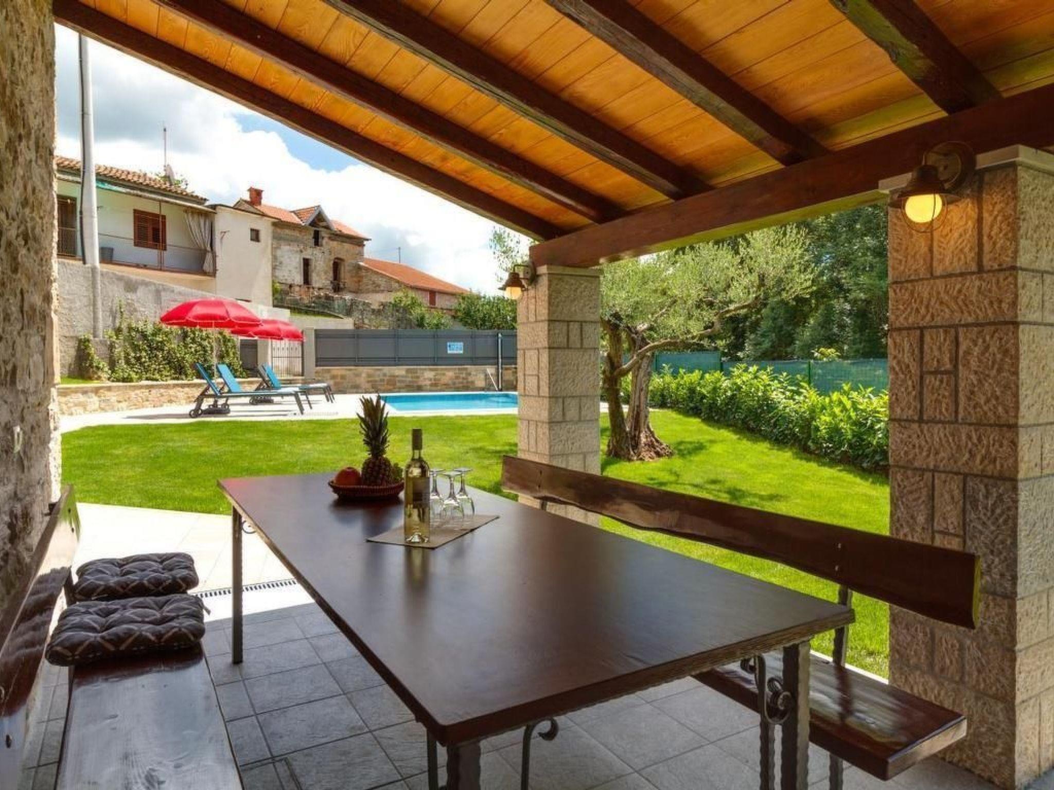 Das Äußere der Villa Zoro ist ebenso beeindruckend wie ihr Inneres, mit einem großen Garten, der einen 48 m² großen Swimmingpool einschließt. Die Gäste können den Außenpool exklusiv nutzen, mit dem Grill und den Gartenmöbeln im Freien speisen oder einfach die Ruhe unter der istrischen Sonne genießen. Der Garten mit seinen Olivenbäumen und den traditionellen istrischen Steinen ist eine friedliche Oase, die zum Entspannen oder für Unterhaltungen einlädt.
