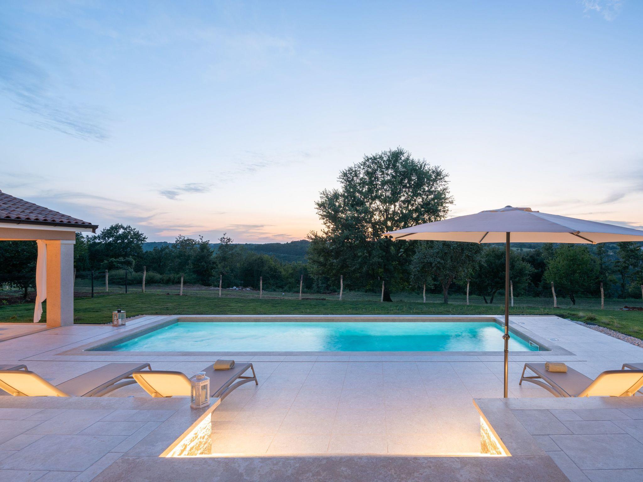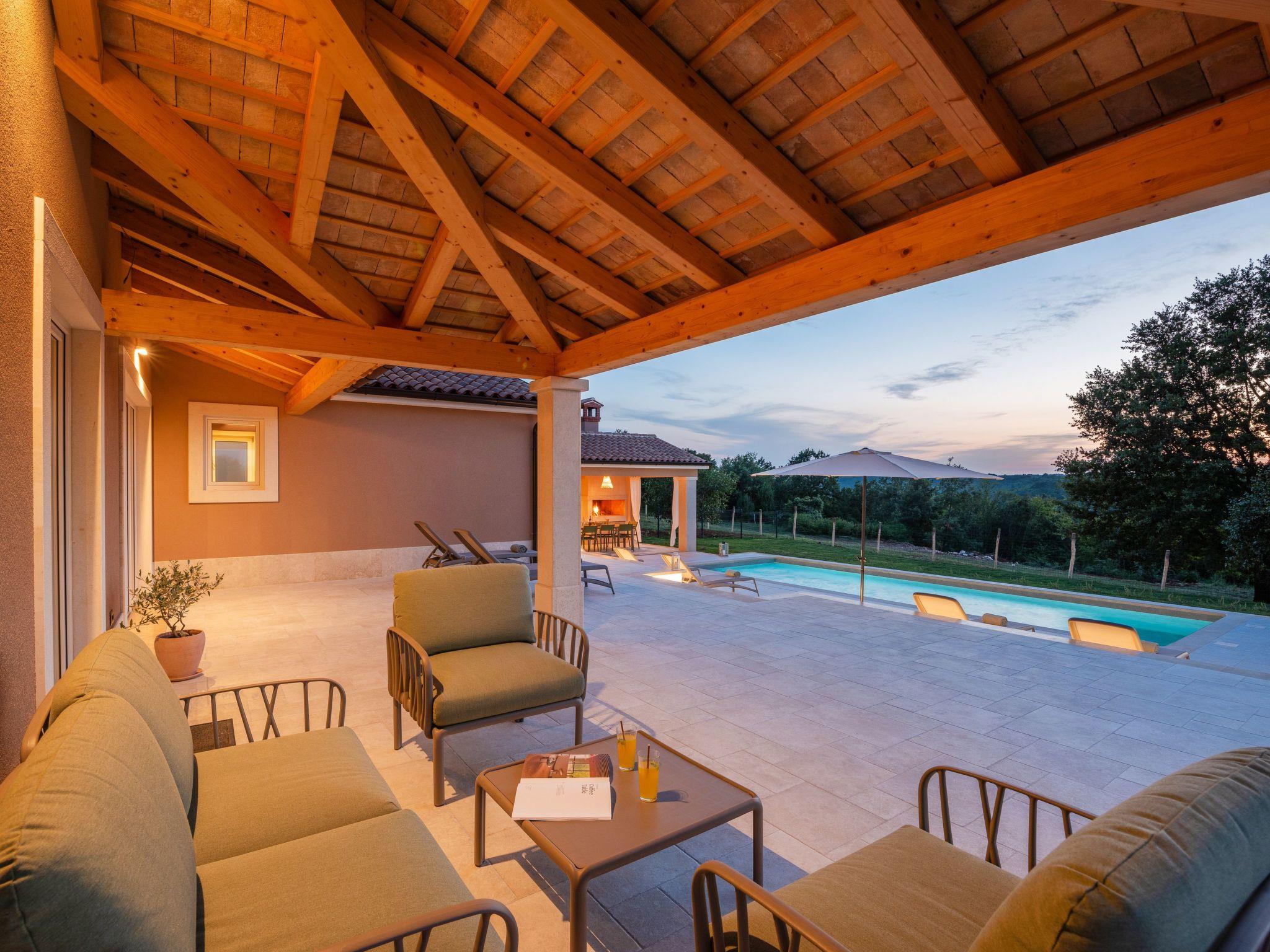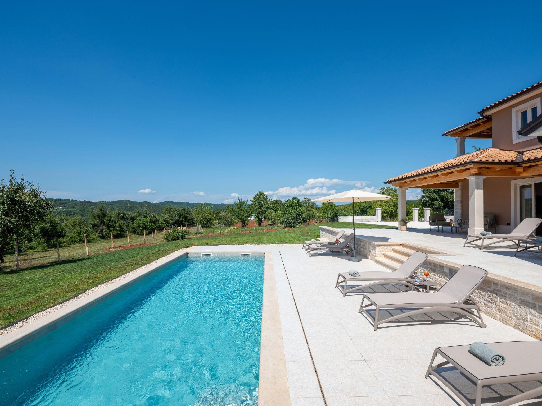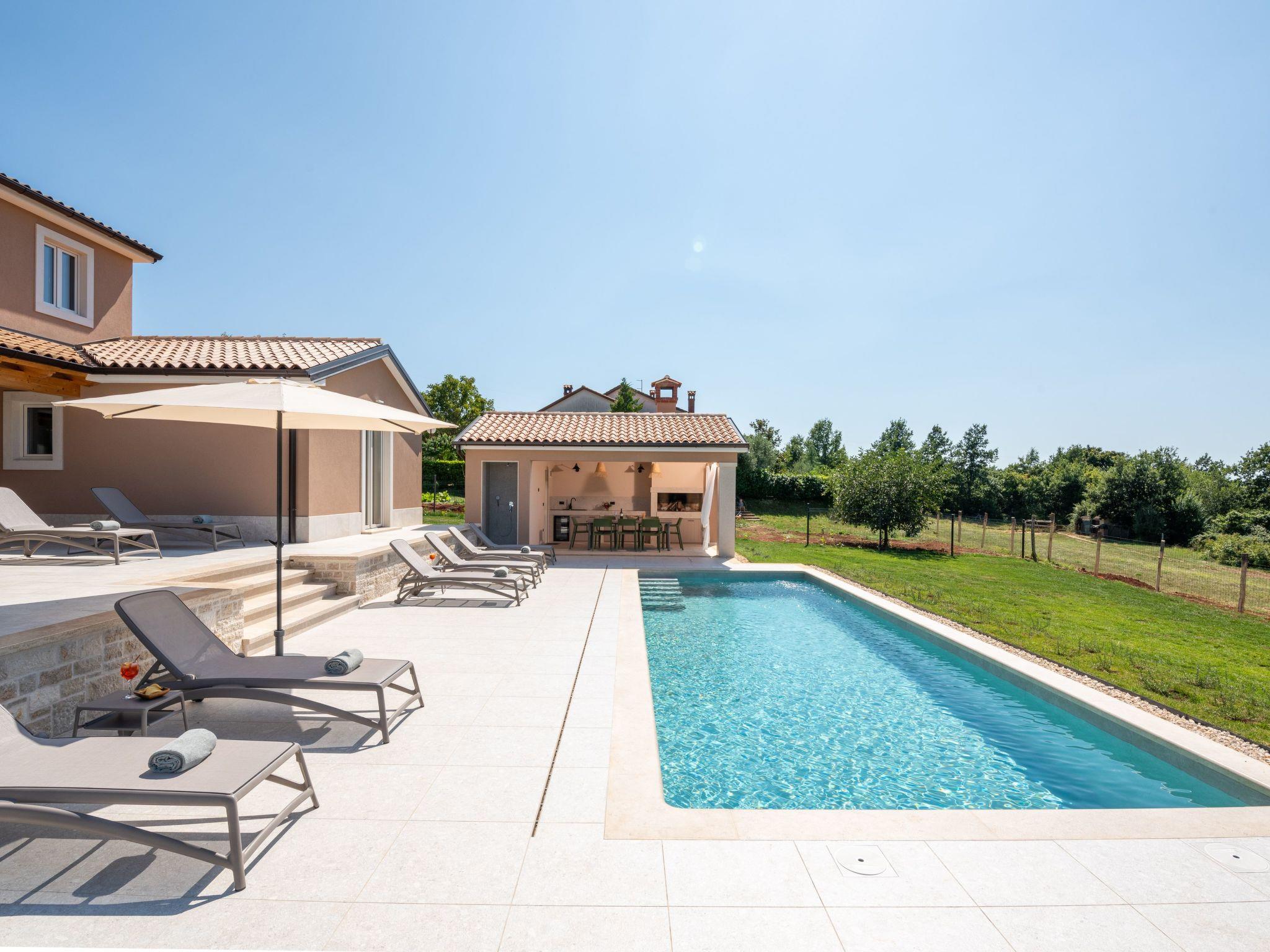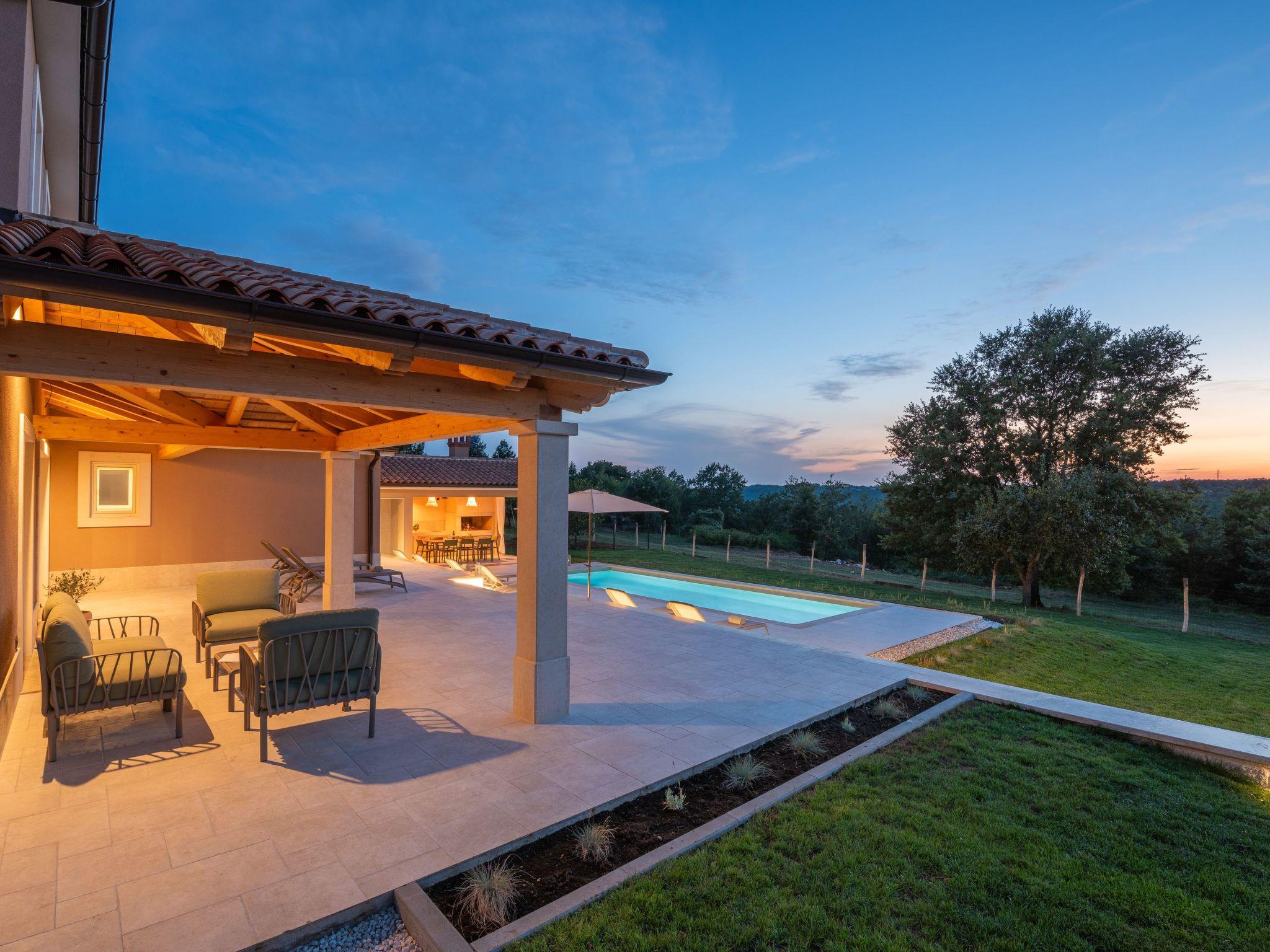Villa Sentiero ist ein neu erbautes, modernes Ferienhaus auf einem Hügel mit wunderschönem Panoramablick auf das grüne Landesinnere Istriens, nicht weit von Pazin und nur 25 Autominuten von Porec und wunderschönen Stränden entfernt. Auf dem eigenen, komplett eingezäunten Garten von 1400 m2 mit gepflegtem Rasen stehen den Gästen der Villa ein Außenpool, Sommerküche mit Holzkohlegrill und Dusche/WC, Liegestühle, sowie Gartenmöbeln für Mahlzeiten im Freien. Für die Kleinsten gibt es Tischtennis und Tischfußball, außerdem gibt es in unmittelbarer Nähe des Hauses einen Kinderspielplatz. Im Hof ??stehen mehrere überdachte Parkplätze zur Verfügung.