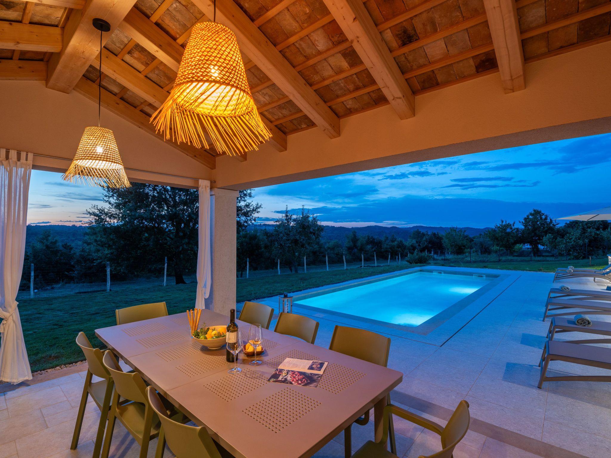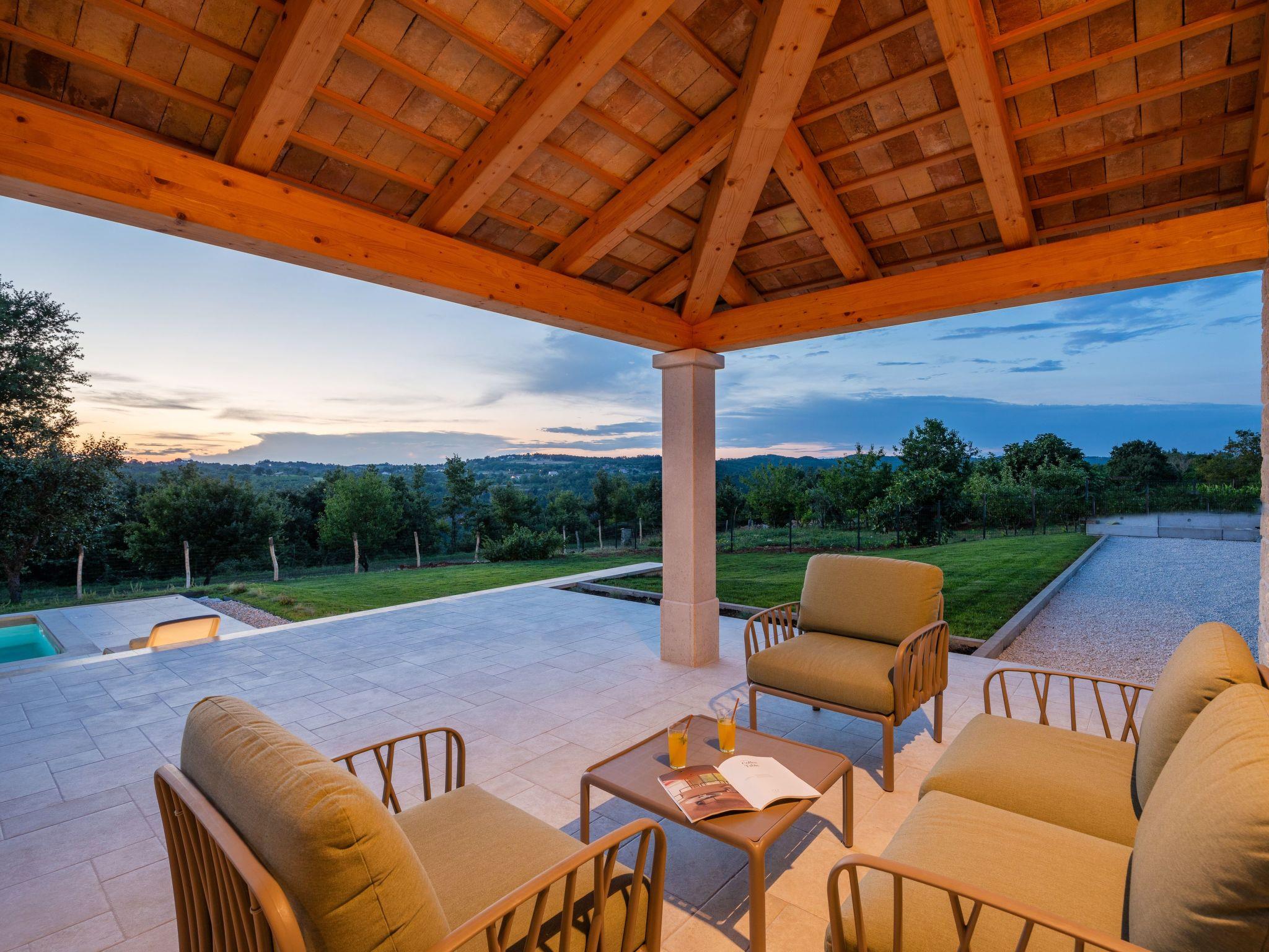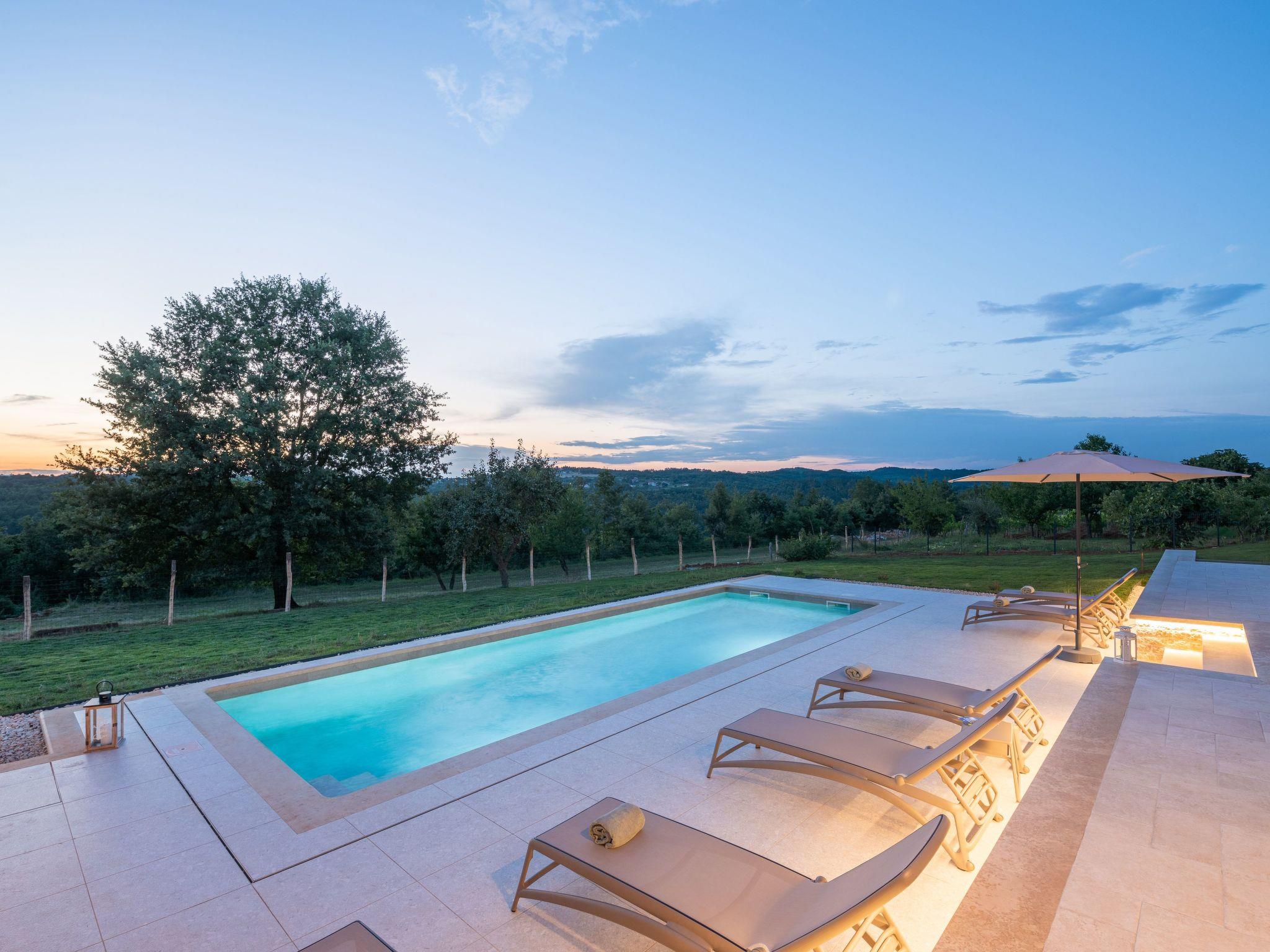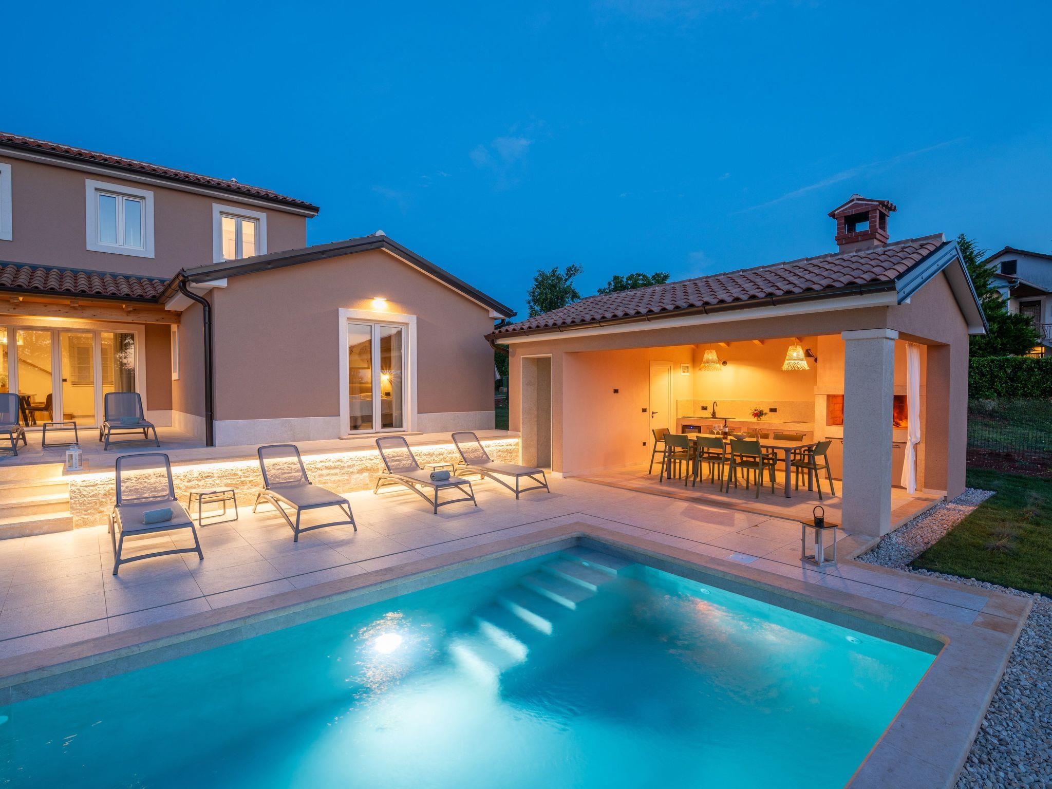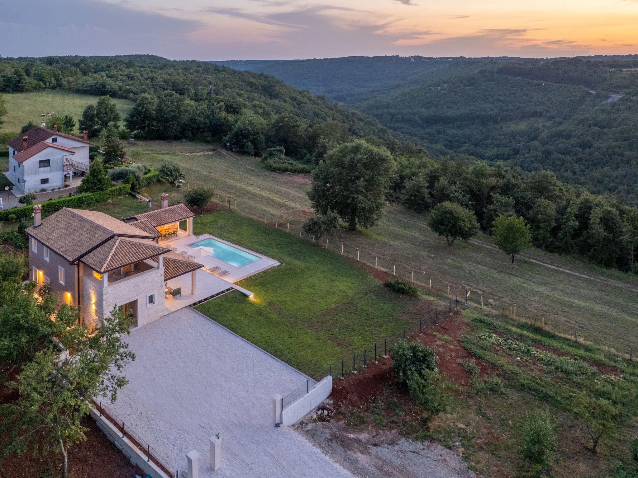 Villa Sentiero ist ein neu erbautes, modernes Ferienhaus auf einem Hügel mit wunderschönem Panoramablick auf das grüne Landesinnere Istriens, nicht weit von Pazin und nur 25 Autominuten von Porec und wunderschönen Stränden entfernt. Auf dem eigenen, komplett eingezäunten Garten von 1400 m2 mit gepflegtem Rasen stehen den Gästen der Villa ein Außenpool, Sommerküche mit Holzkohlegrill und Dusche/WC, Liegestühle, sowie Gartenmöbeln für Mahlzeiten im Freien. Für die Kleinsten gibt es Tischtennis und Tischfußball, außerdem gibt es in unmittelbarer Nähe des Hauses einen Kinderspielplatz. Im Hof ??stehen mehrere überdachte Parkplätze zur Verfügung.