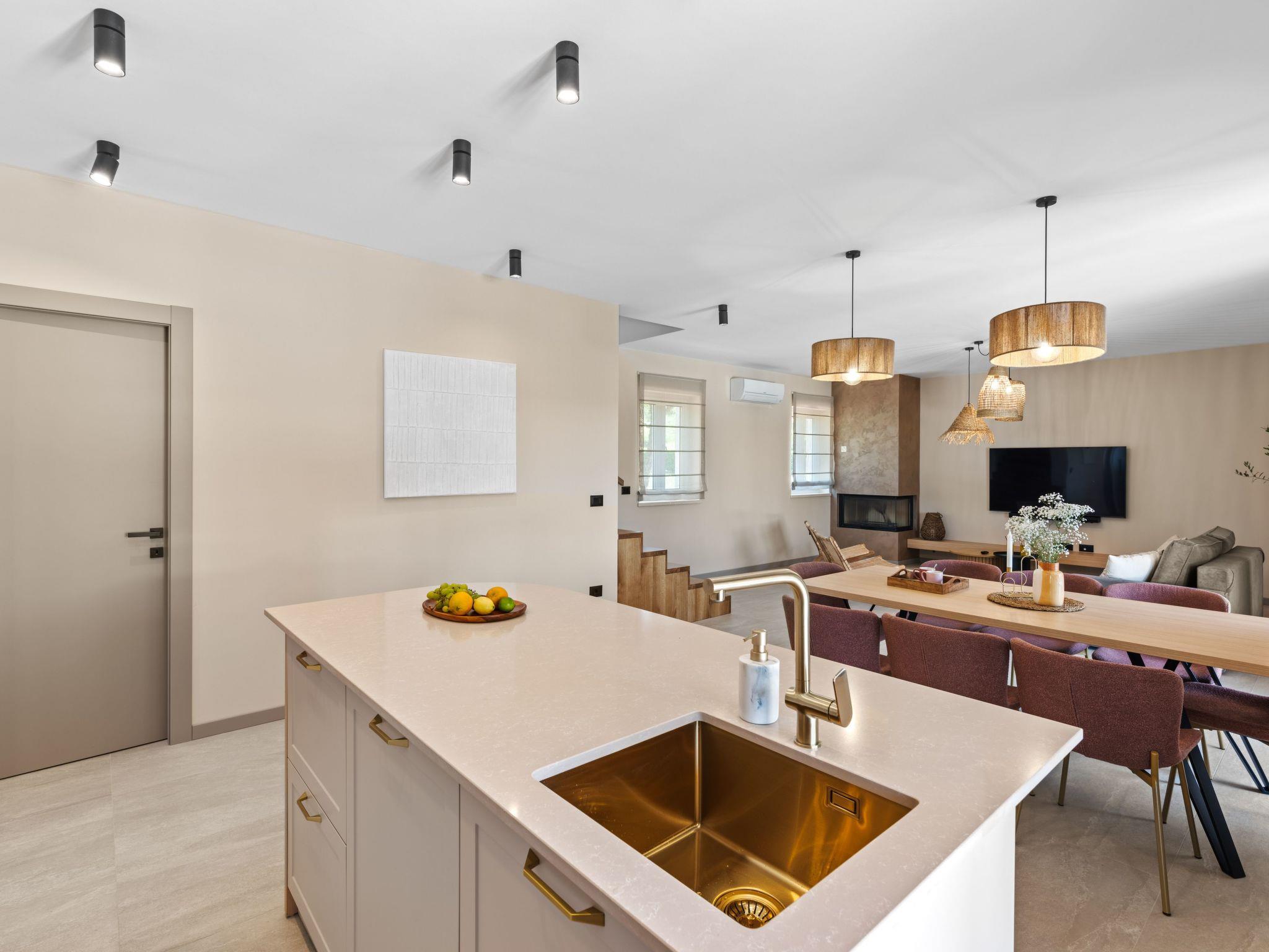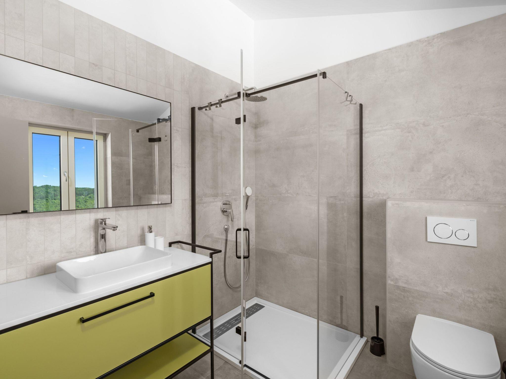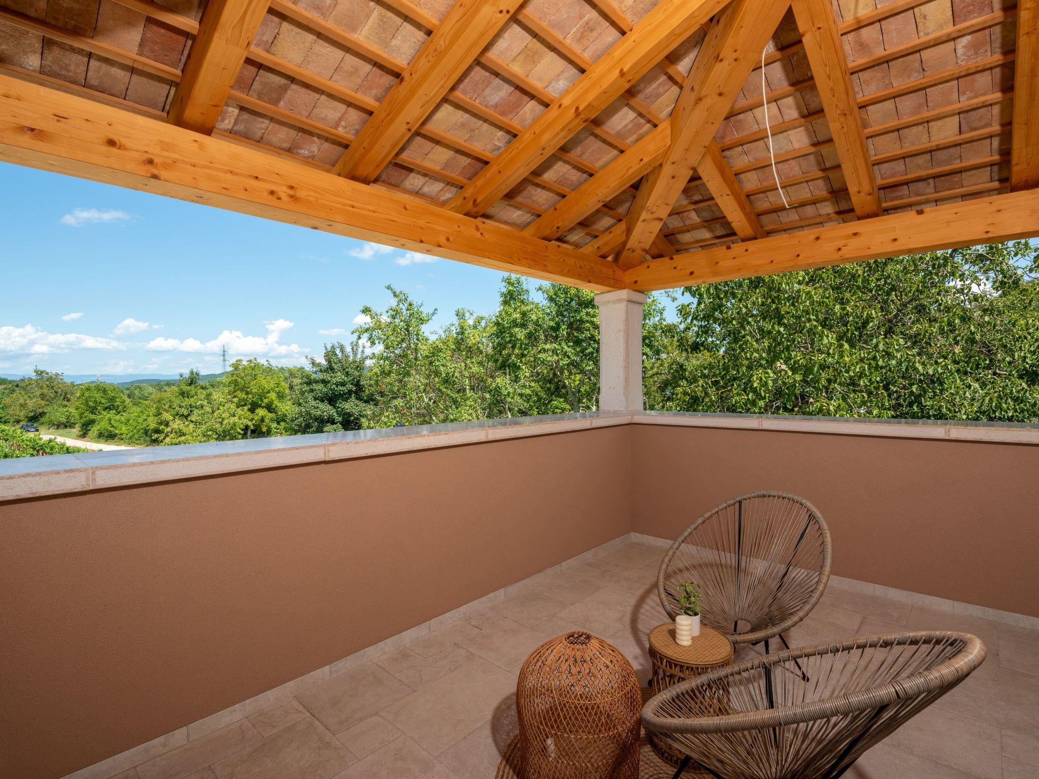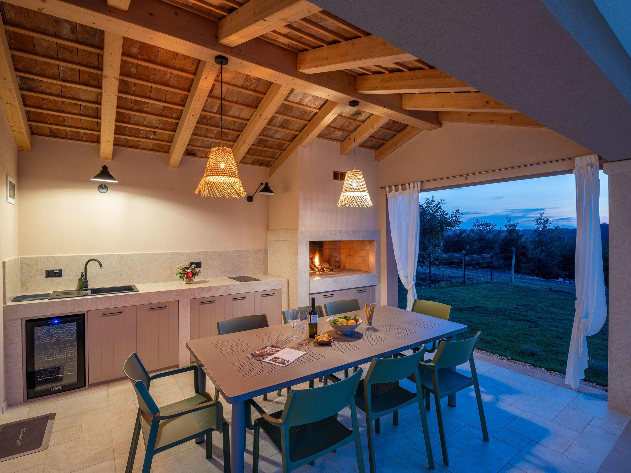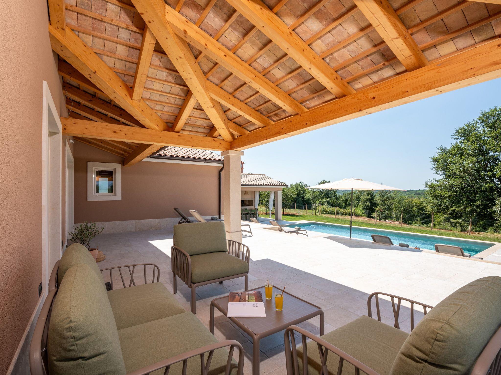 Villa Sentiero ist ein neu erbautes, modernes Ferienhaus auf einem Hügel mit wunderschönem Panoramablick auf das grüne Landesinnere Istriens, nicht weit von Pazin und nur 25 Autominuten von Porec und wunderschönen Stränden entfernt. Auf dem eigenen, komplett eingezäunten Garten von 1400 m2 mit gepflegtem Rasen stehen den Gästen der Villa ein Außenpool, Sommerküche mit Holzkohlegrill und Dusche/WC, Liegestühle, sowie Gartenmöbeln für Mahlzeiten im Freien. Für die Kleinsten gibt es Tischtennis und Tischfußball, außerdem gibt es in unmittelbarer Nähe des Hauses einen Kinderspielplatz. Im Hof ??stehen mehrere überdachte Parkplätze zur Verfügung.