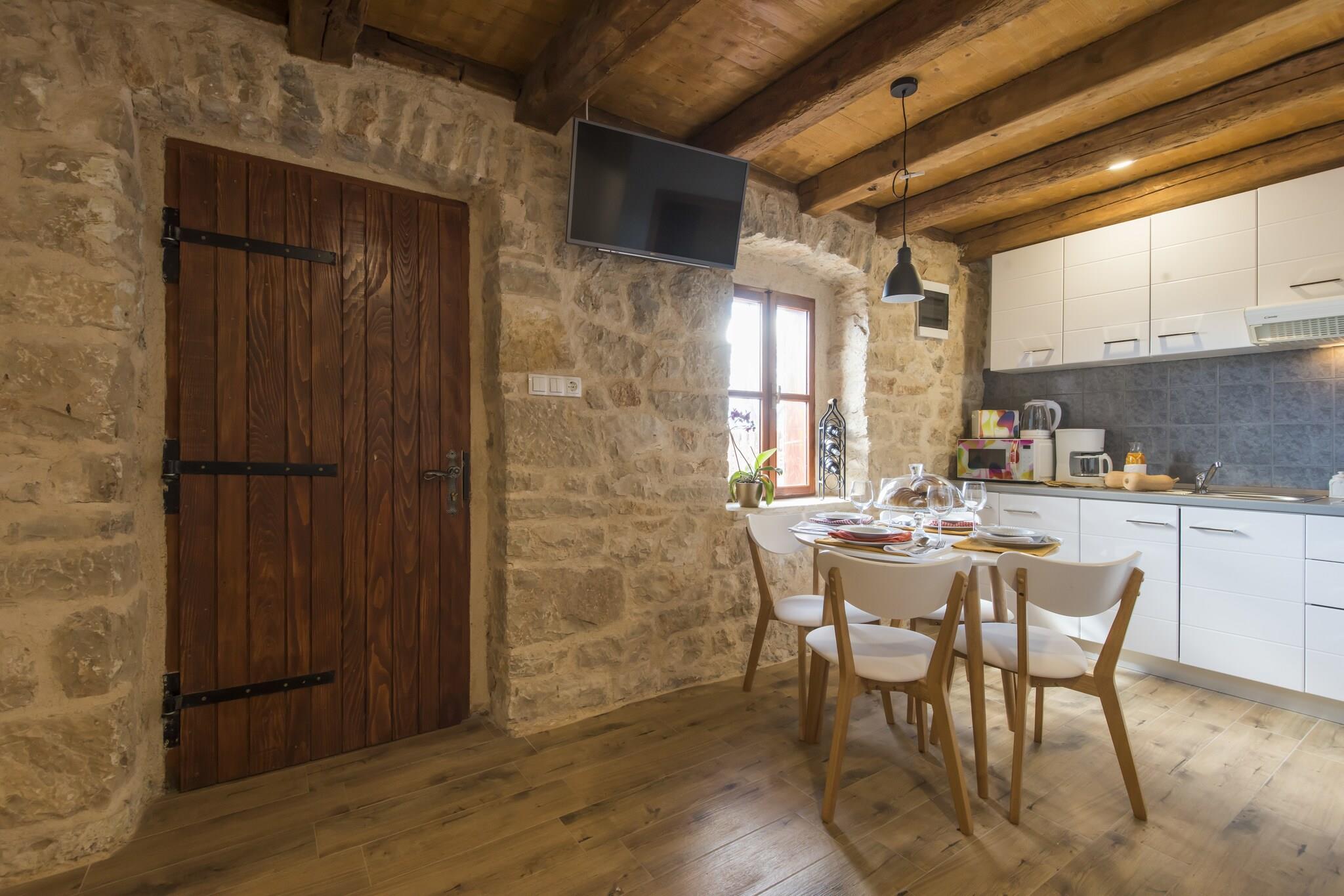 Ihr Ferienhaus liegt in einem kleinen Dorf namens Sopot. Es ist von intakter Natur umgeben und bietet einen stressfreien Urlaub, weit weg von den Touristenmassen und doch nicht weit entfernt von der Küste. Mit dem Auto benötigen Sie nur 15 Minuten zur Adria. Das Haus ist frisch renoviert und von der traditionellen dalmatinischen Architektur inspiriert. Es bietet einen herzlichen Empfang für bis zu 5 Personen. In Ihrer Unterkunft gibt es eine schöne Stein-Taverne, in der Sie Mahlzeiten für Ihre Freunde und Familie zubereiten können. Von der Taverne haben Sie direkten Zugang zu einem umzäunten Hof mit Ihrem eigenen Pool. Zwei Schlafzimmer mit En-Suite-Badezimmern befinden sich im Obergeschoss. Des Weiteren bietet das Haus eine vollständig ausgestattete Küche, einen hellen Wohn-/Essbereich und eine Terrasse mit Gartenmöbeln. Alle Zimmer des Hauses sind klimatisiert; Parkplätze werden den Gästen zur Verfügung gestellt und natürlich ist das WiFi kostenlos. Sie können ein Fahrrad mieten und frische organische Nahrungsmittel kaufen, die der Eigentümer auf seinem Anwesen anbaut. Der Naturpark Vrana Lake ist nur 7 km entfernt. Er eignet sich für Fahrradtouren, Angeln und die Vogelbeobachtung. Der Nationalpark von Krka mit den Wasserfällen, Kroatiens wichtigstes Kletterzentrum Paklenica und die Altstadt von Zadar sind mit dem Auto nur 45 Minuten entfernt. Von dort aus werden Tagesausflüge zu den anderen Nationalparks, wie zum Beispiel Plitvice und Kornati organisiert.