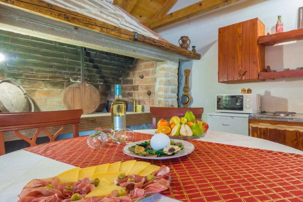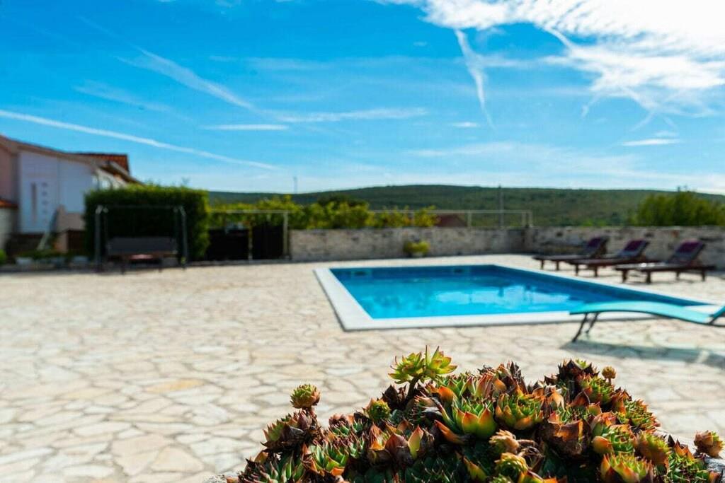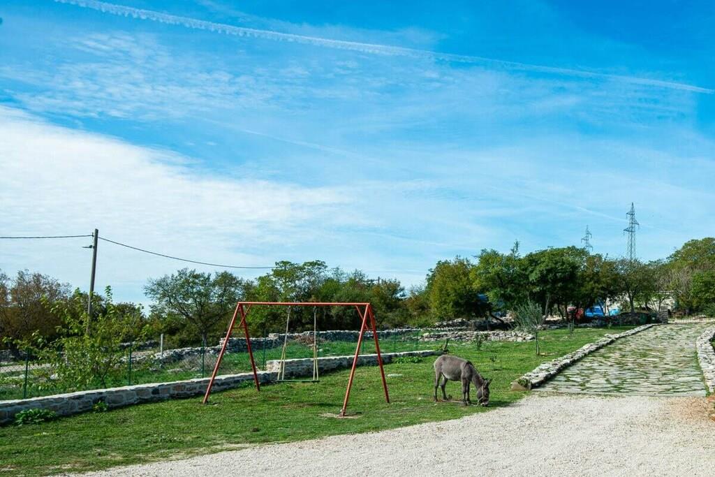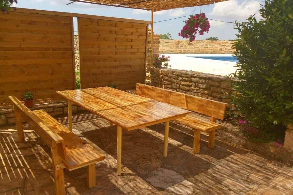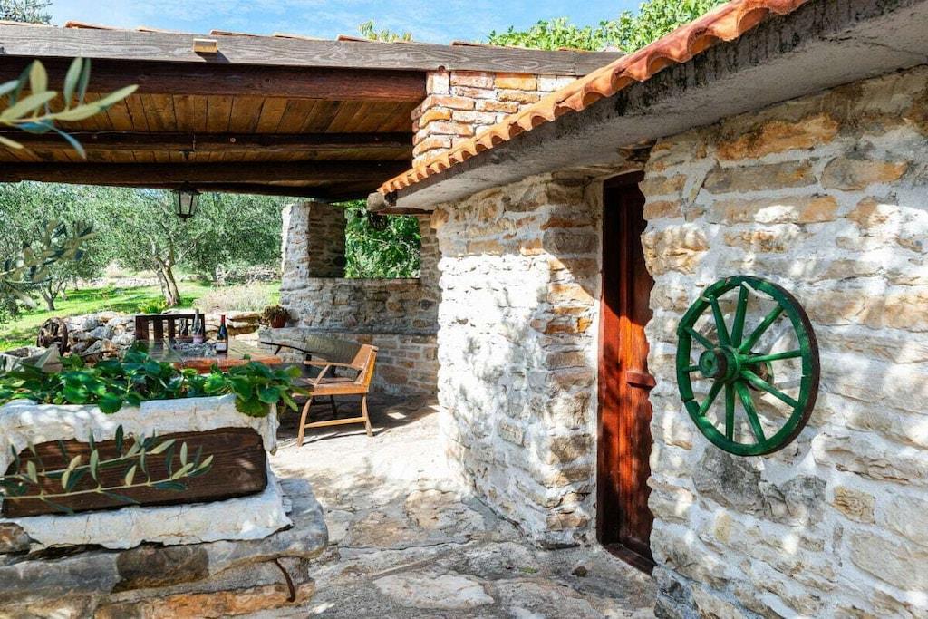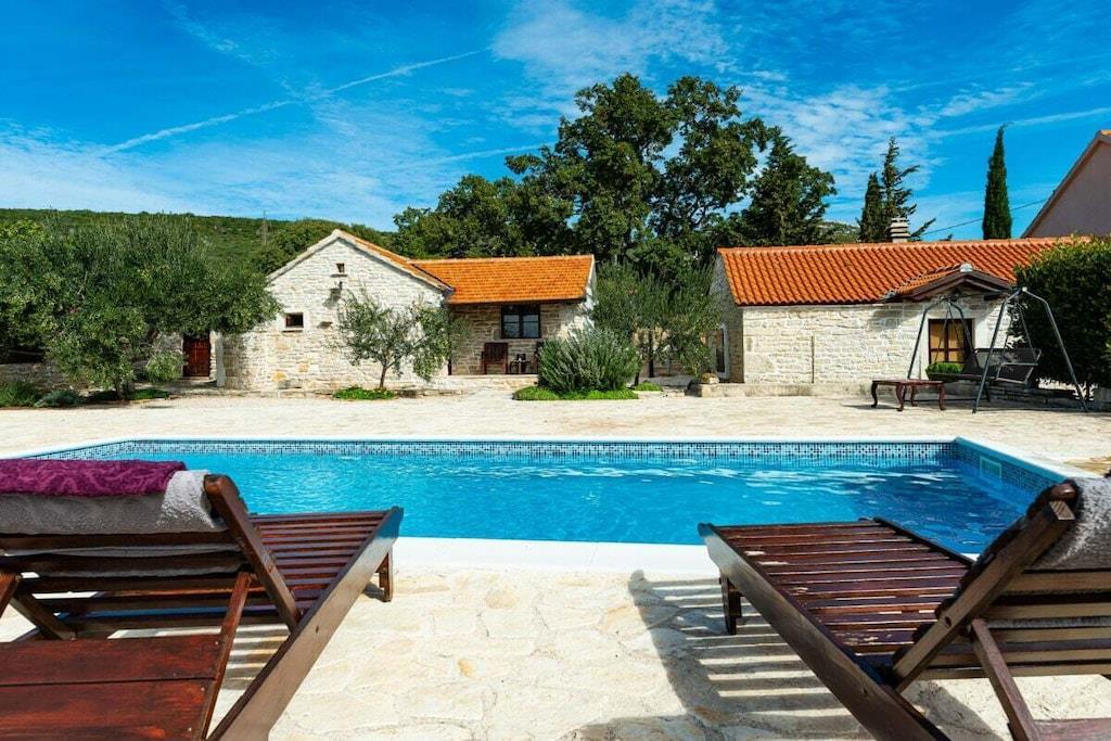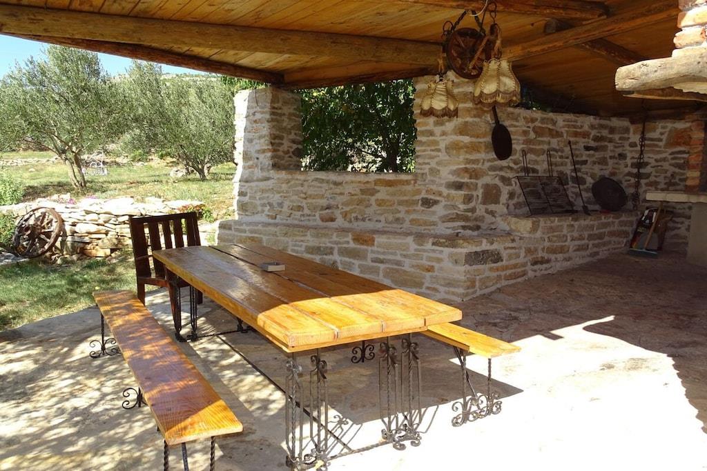 Den Gästen stehen gerade renovierte zwei Steinhäuser im dalmatinischen Stil mit einem großen Garten und einem schönen Pool zur Verfügung. Beide Häuser sind zusammen 90m2 groß und bestehen aus 2 Schlafzimmern, Wohnzimmer, Esszimmer, Küche und 2 Bädern. Ein ideales Hotel für einen perfekten Urlaub in der wunderschönen Natur des dalmatinischen Hinterlandes. Sie werden von der Gastfreundschaft des Gastgebers mit Obst, Eiern und Gemüse aus eigenem Anbau begeistert sein, die die Gäste gerne anbieten. Tolles Grundstück von 1600 m2, mit Spielplatz, 32m2 saisonalem Pool, Sonnenliegen, großem Grill mit Gartenmöbeln, umgeben von typisch dalmatinischer Trockenmauer, Olivenbäumen und einem Biogarten ... alles zur Verfügung der Gäste.