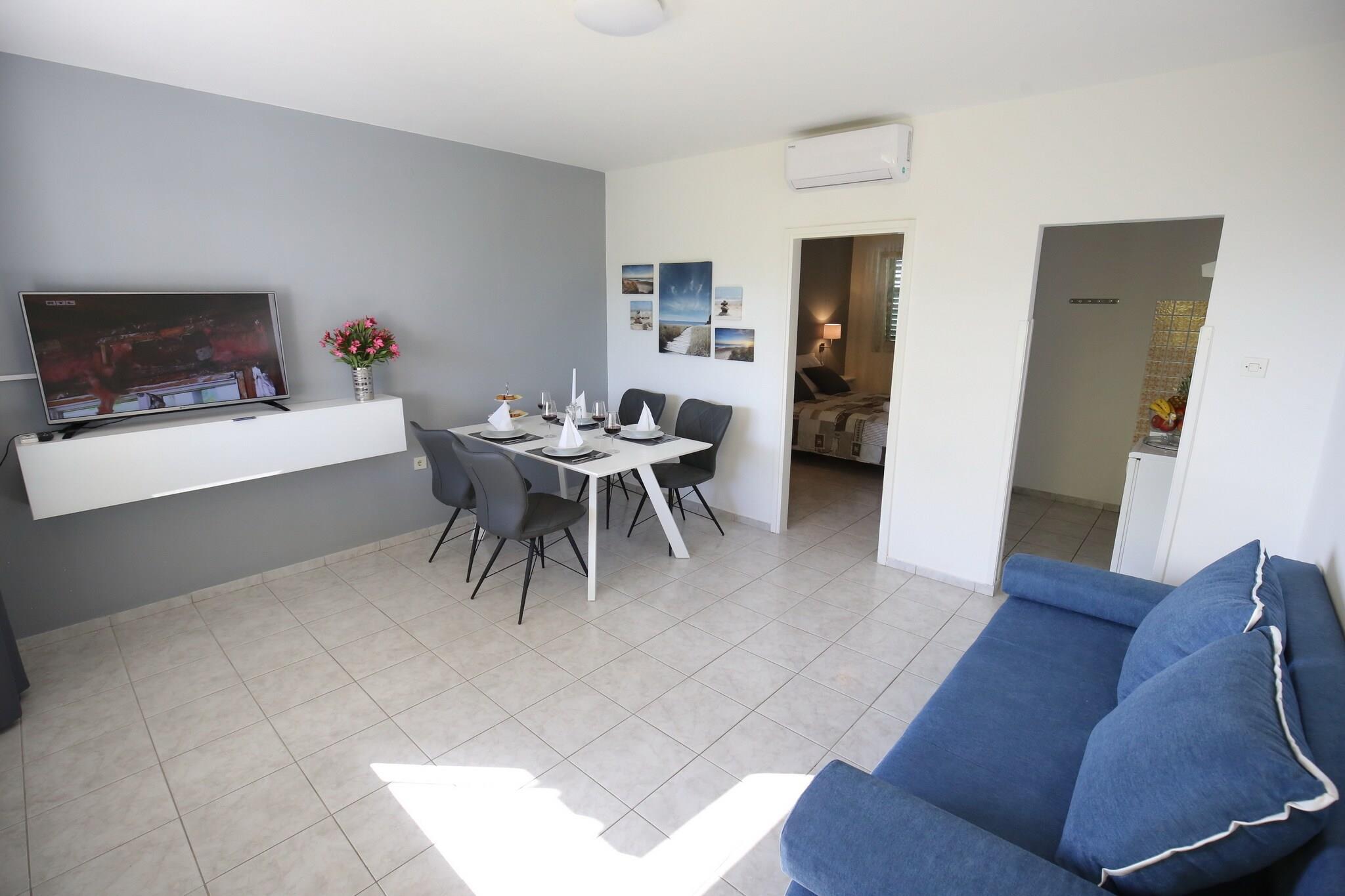 Versteckt in Bibinje gelegen, bietet dieses haustierfreundliche Ferienhaus für vier Gäste einen ruhigen Rückzugsort nur 400 Meter vom Meer entfernt. Der eingezäunte, angelegte Garten lädt zum Entspannen ein, während der Gemeinschaftspool zum Entspannen einlädt. Da das Zentrum von Bibinje nur 500 Meter entfernt ist, können Gäste lokale Geschäfte, kulturelle Sehenswürdigkeiten und das pulsierende Küstenleben erkunden. Das Haus verfügt über einen gemütlichen Wohn- und Essbereich mit Flachbild-Sat-TV, eine voll ausgestattete Küche mit modernen Geräten und ein komfortables Schlafzimmer mit Doppelbett. Die überdachte Terrasse lädt zum Entspannen ein, während der Grillplatz für ein gemütliches Beisammensein im Freien sorgt. Sonnenliegen, ein Fußballtor und ein Lounge-Set machen dieses Haus zum idealen Ort für Entspannung und Spaß. Besuchen Sie in der Nähe den „Gruß an die Sonne“, eine faszinierende solarbetriebene Installation, die die Nacht erleuchtet, oder erkunden Sie den Fünf-Brunnen-Platz, ein historisches Wahrzeichen von Zadar. Die Konoba Piazzetta serviert authentische dalmatinische Küche, während die Ribar Jere frische Meeresfrüchte in charmantem Ambiente serviert. Egal, ob Sie Abenteuer oder Ruhe suchen, dieser Rückzugsort an der Küste ist der perfekte Zufluchtsort.