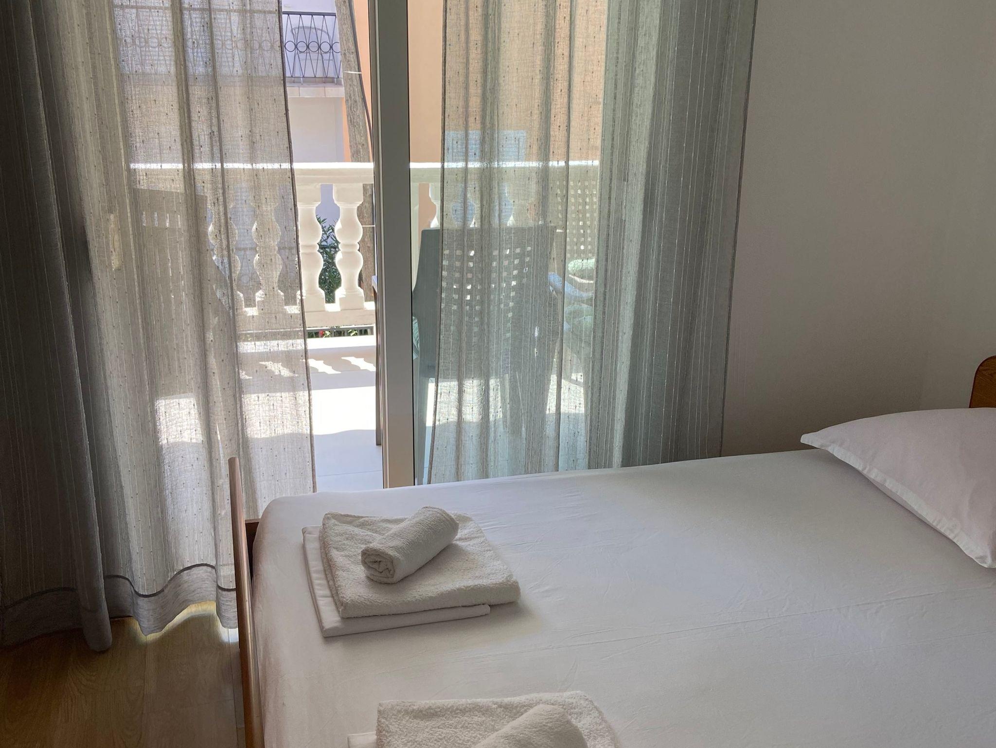 Ferienwohnung bietet Platz für 8 Gäste. Die Betten sind in Schlafzimmern, die es 4 gibt, innerhalb einer Gesamtfläche von 89m2, angeordnet. Die Gäste haben einen eigenen Balkon zur Verfügung, auf der sie in warmen Sommernächten genießen können. IM PREIS INBEGRIFFEN: Kurtaxe, Endreinigung, Klimatisierung, Parkplatz, Internet. VERBINDLICHE ZUSÄTZLICHE KOSTEN: Aufzahlung für Kurzaufenthalte (prozentualer Zuschlag pro Nächtigungsanzahl: 30% - 1, 20% - 2, 10% - 3). UNVERBINDLICHE ZUSÄTZLICHE KOSTEN: Zusatzbett (10,00 € pro Nacht). Die Verfügbarkeit zusätzlicher Dienstleistungen in Ihrem reservierten Termin und die Preise derselben (falls nicht aufgeführt) müssen im Voraus überprüft werden. Zusätzliche Dienstleistungen die in der Zahlungsaufforderung nicht aufgeführt sind werden direkt beim Vermieter bezahlt, angenommen der Gast nutzt auch diese.