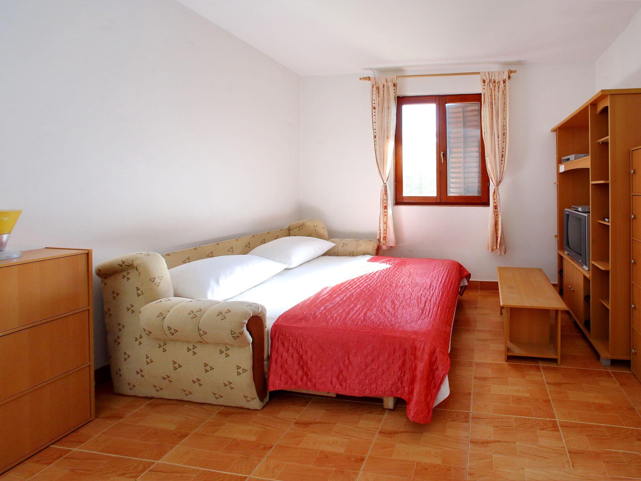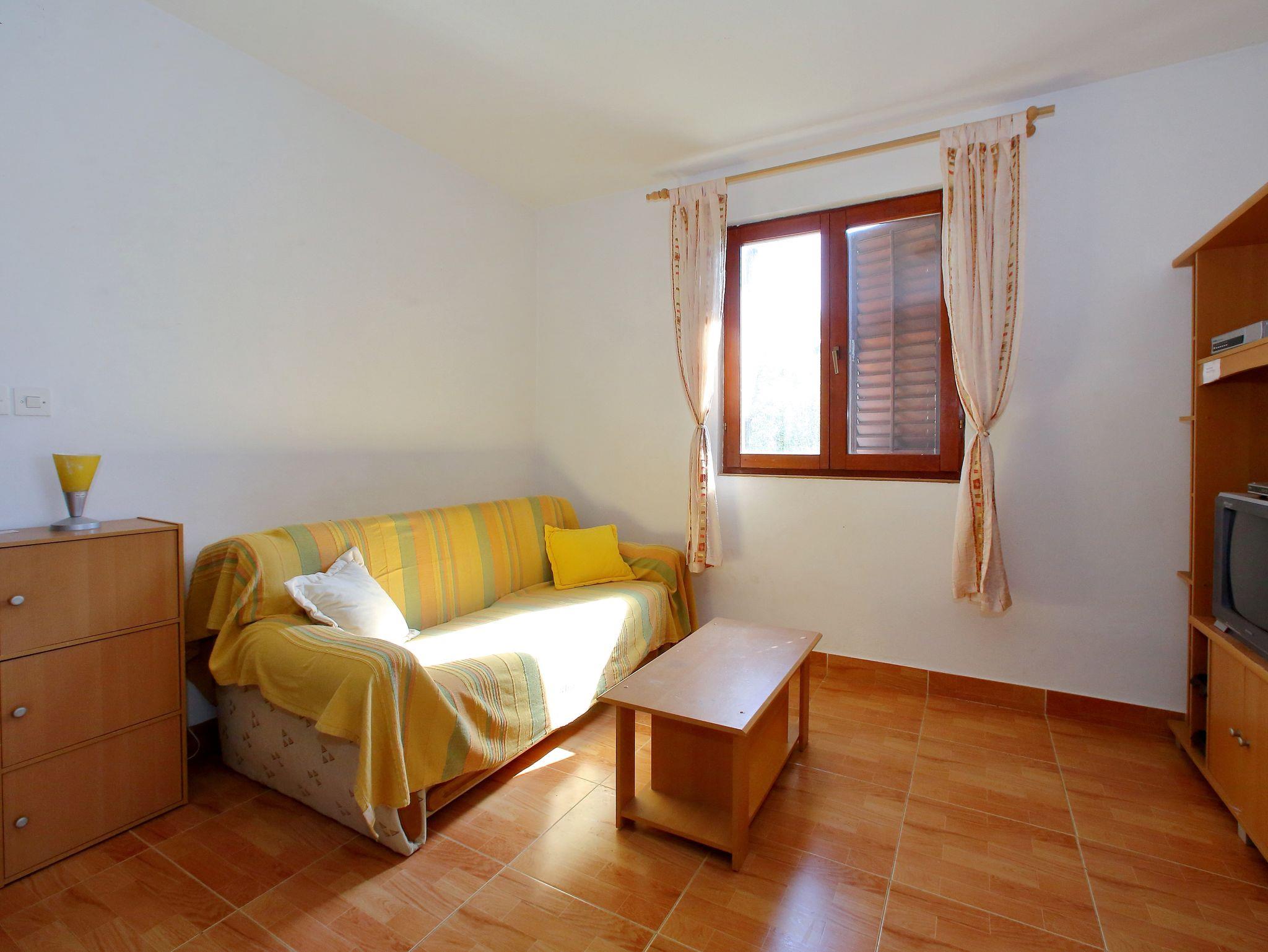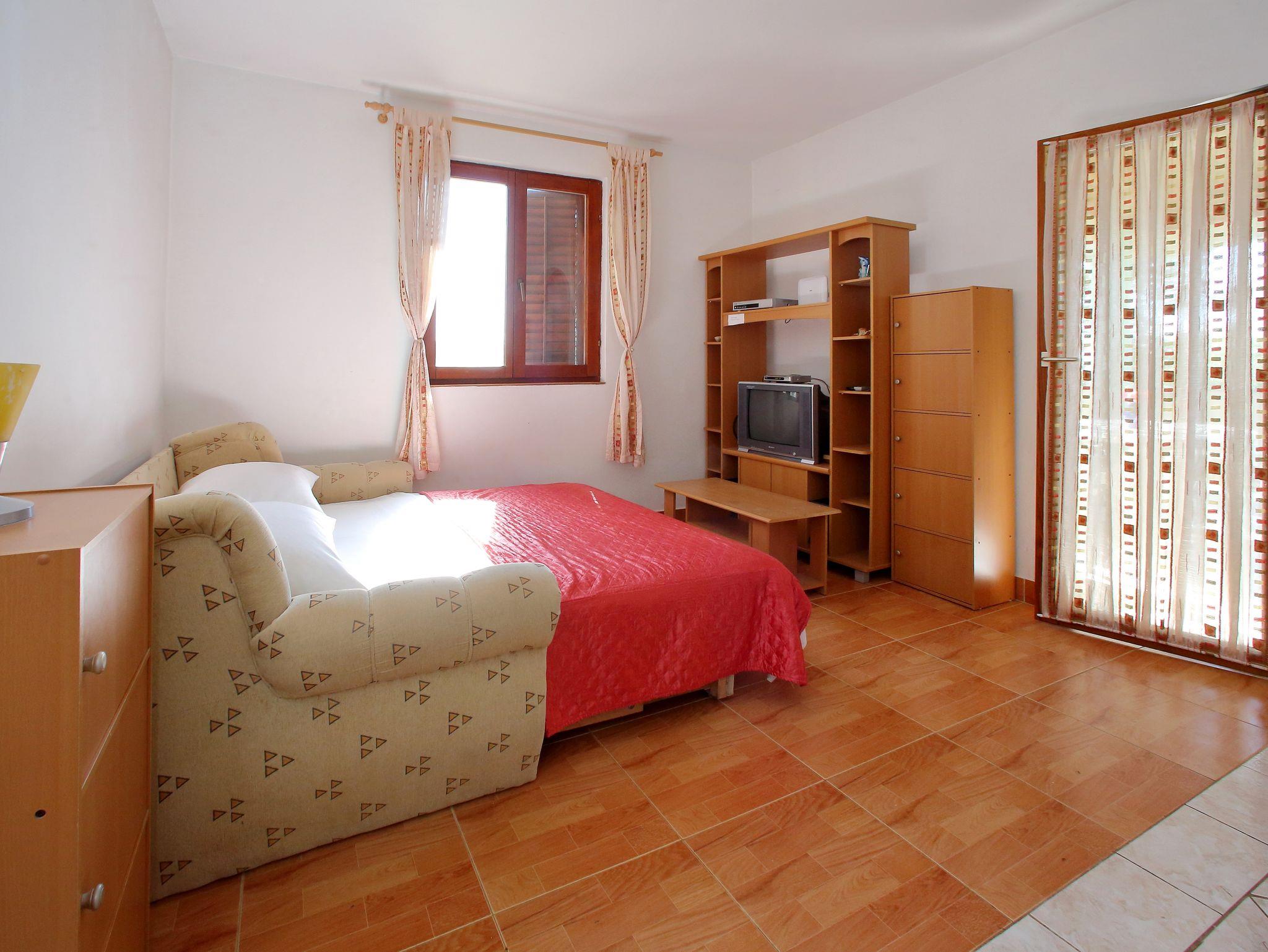 Ferienwohnung bietet Platz für 4 Gäste. Die Betten sind in Schlafzimmern, die es 1 gibt, und in Wohnzimmer, innerhalb einer Gesamtfläche von 44m2, angeordnet. Die Gäste haben eine eigene Terrasse zur Verfügung, auf der sie in warmen Sommernächten genießen können. Das Apartment bietet Meerblick. Es ist erlaubt, Speisen auf dem Gemeinschafts-Grill vorzubereiten. In der Unterkunftseinheit besteht die Möglichkeit des Mitbringens von Haustieren gegen Aufpreis. IM PREIS INBEGRIFFEN: Kurtaxe, Endreinigung, Parkplatz, Internet, tragbarer Grill. VERBINDLICHE ZUSÄTZLICHE KOSTEN: Aufzahlung für Kurzaufenthalte (prozentualer Zuschlag pro Nächtigungsanzahl: 30% - 1, 20% - 2, 10% - 3). UNVERBINDLICHE ZUSÄTZLICHE KOSTEN: Klimatisierung (5,00 € pro Nacht), Haustiere (5,00 € pro Nacht), Zusatzbett (5,00 € pro Nacht). Die Verfügbarkeit zusätzlicher Dienstleistungen in Ihrem reservierten Termin und die Preise derselben (falls nicht aufgeführt) müssen im Voraus überprüft werden. Zusätzliche Dienstleistungen die in der Zahlungsaufforderung nicht aufgeführt sind werden direkt beim Vermieter bezahlt, angenommen der Gast nutzt auch diese.