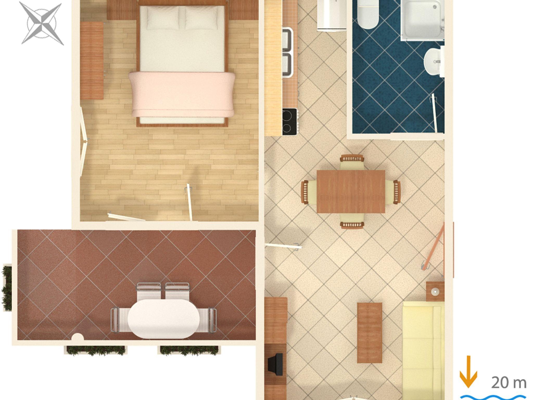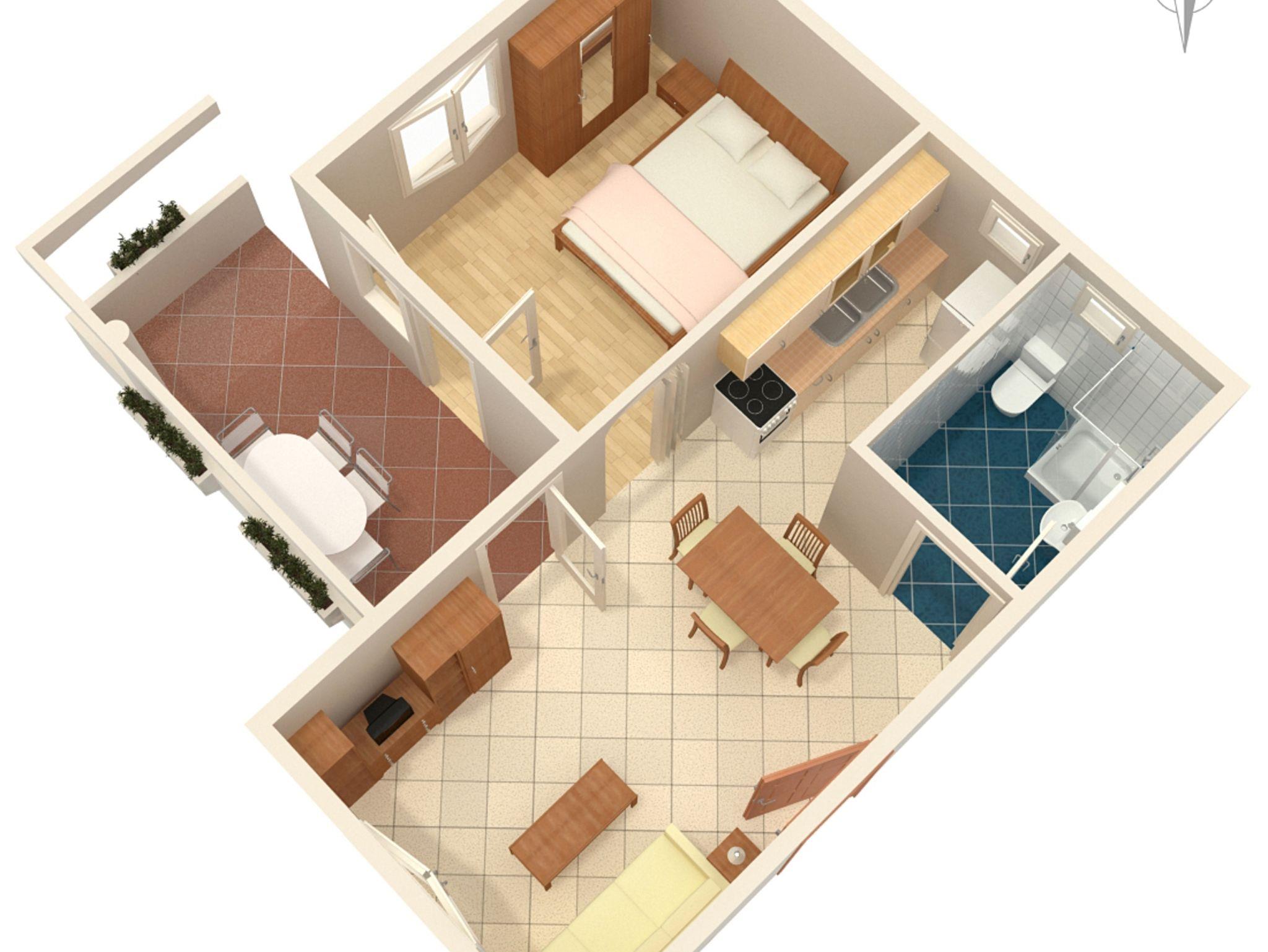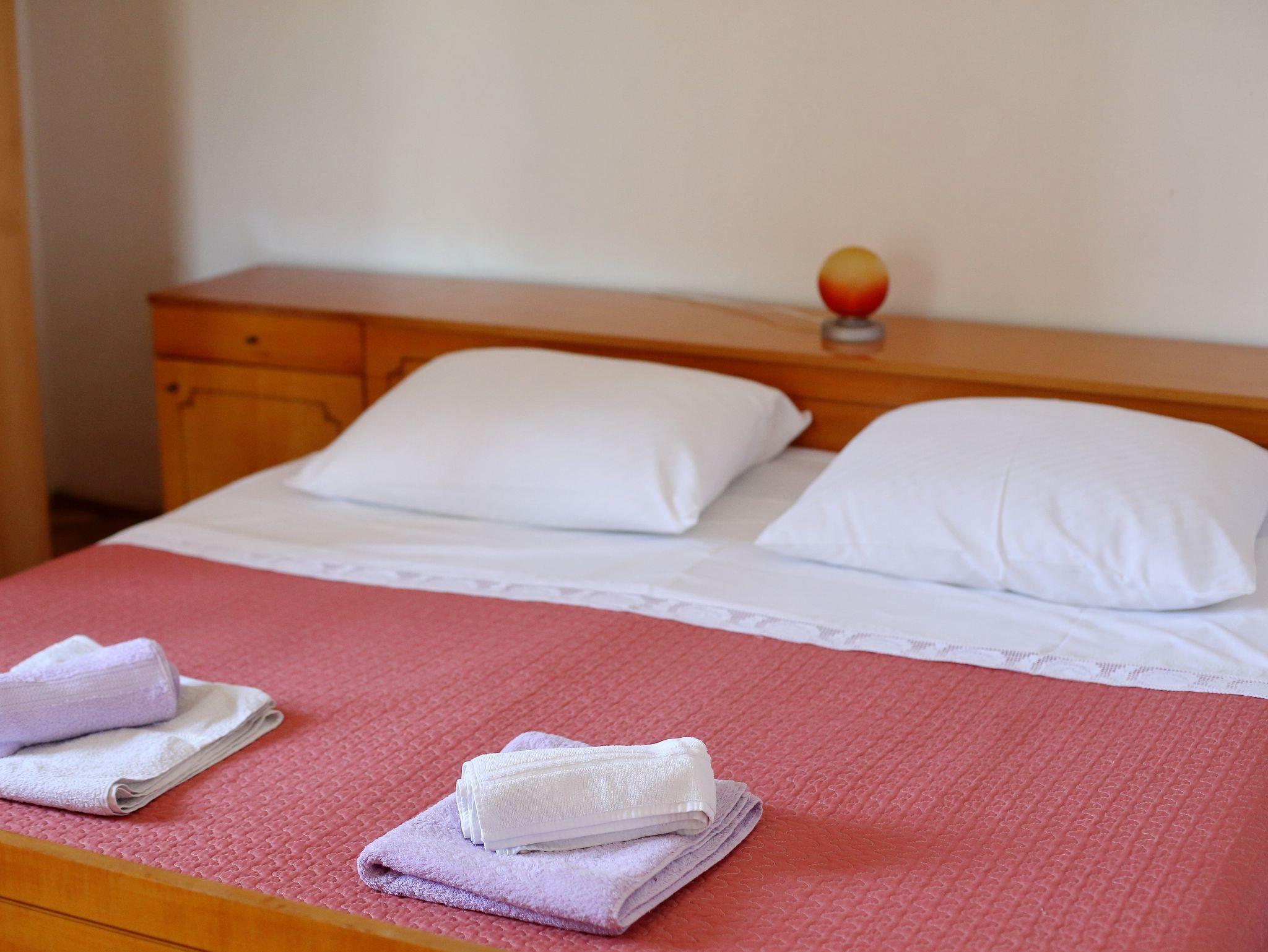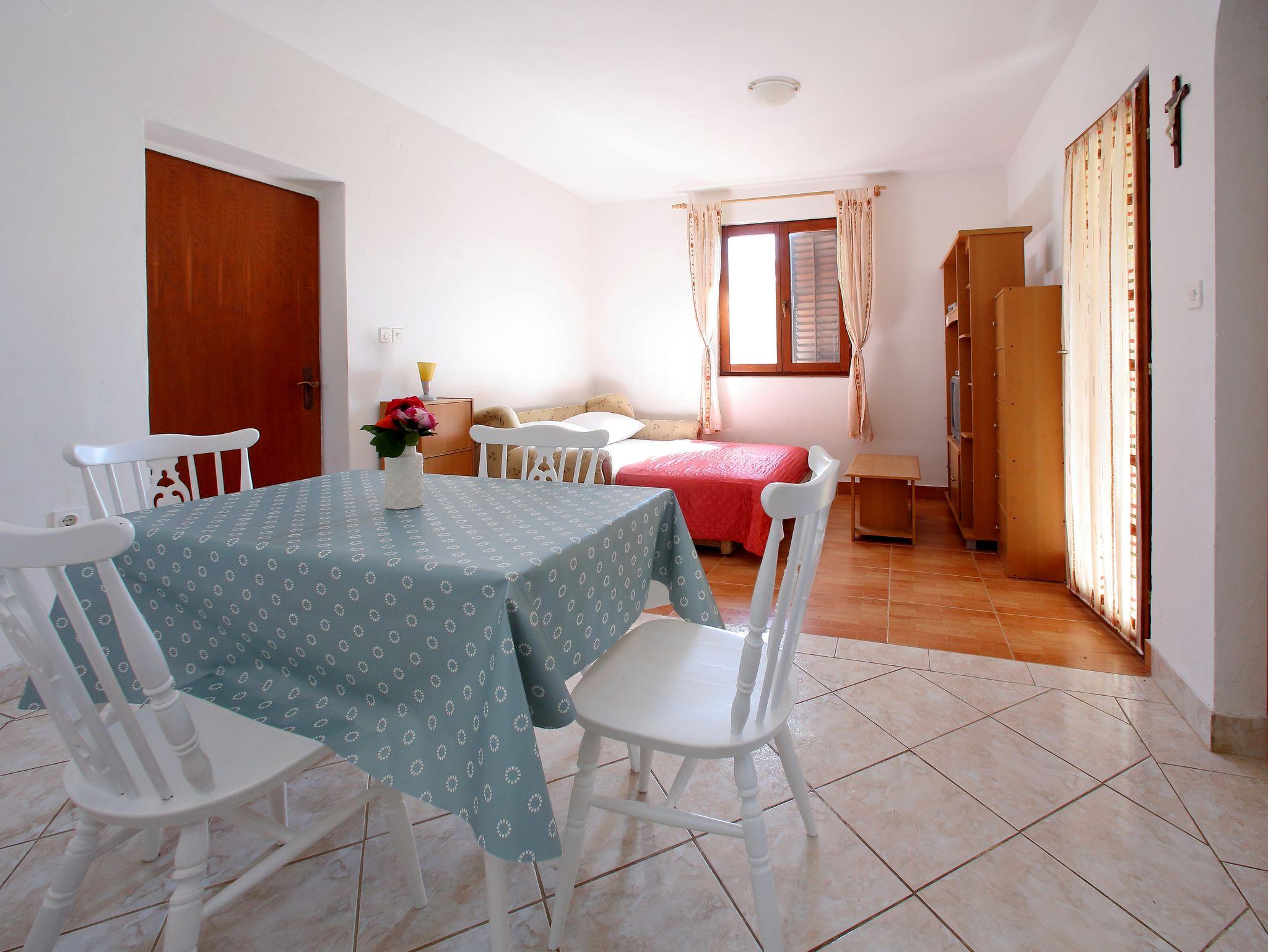 Ferienwohnung bietet Platz für 4 Gäste. Die Betten sind in Schlafzimmern, die es 1 gibt, und in Wohnzimmer, innerhalb einer Gesamtfläche von 44m2, angeordnet. Die Gäste haben eine eigene Terrasse zur Verfügung, auf der sie in warmen Sommernächten genießen können. Das Apartment bietet Meerblick. Es ist erlaubt, Speisen auf dem Gemeinschafts-Grill vorzubereiten. In der Unterkunftseinheit besteht die Möglichkeit des Mitbringens von Haustieren gegen Aufpreis. IM PREIS INBEGRIFFEN: Kurtaxe, Endreinigung, Parkplatz, Internet, tragbarer Grill. VERBINDLICHE ZUSÄTZLICHE KOSTEN: Aufzahlung für Kurzaufenthalte (prozentualer Zuschlag pro Nächtigungsanzahl: 30% - 1, 20% - 2, 10% - 3). UNVERBINDLICHE ZUSÄTZLICHE KOSTEN: Klimatisierung (5,00 € pro Nacht), Haustiere (5,00 € pro Nacht), Zusatzbett (5,00 € pro Nacht). Die Verfügbarkeit zusätzlicher Dienstleistungen in Ihrem reservierten Termin und die Preise derselben (falls nicht aufgeführt) müssen im Voraus überprüft werden. Zusätzliche Dienstleistungen die in der Zahlungsaufforderung nicht aufgeführt sind werden direkt beim Vermieter bezahlt, angenommen der Gast nutzt auch diese.