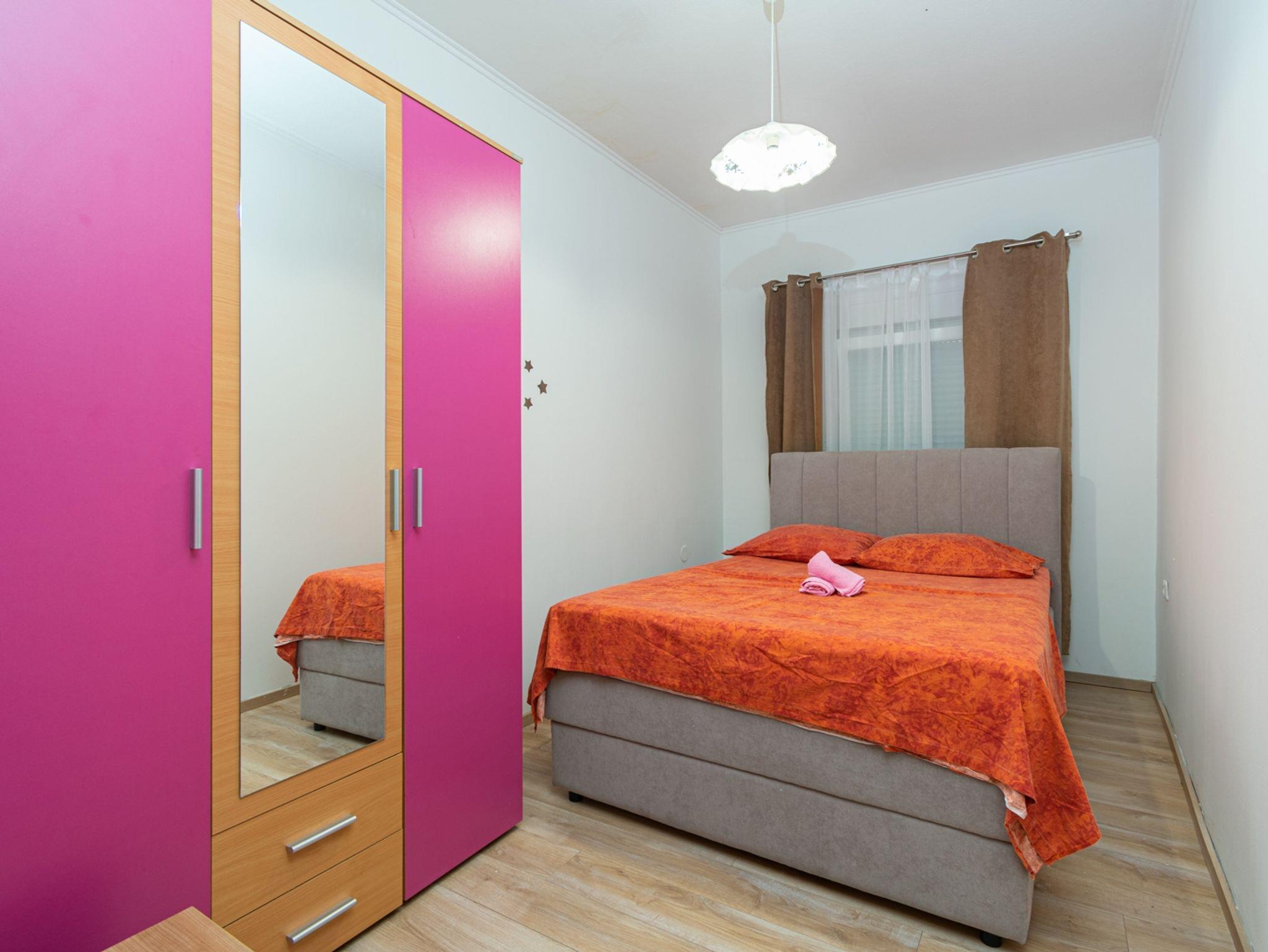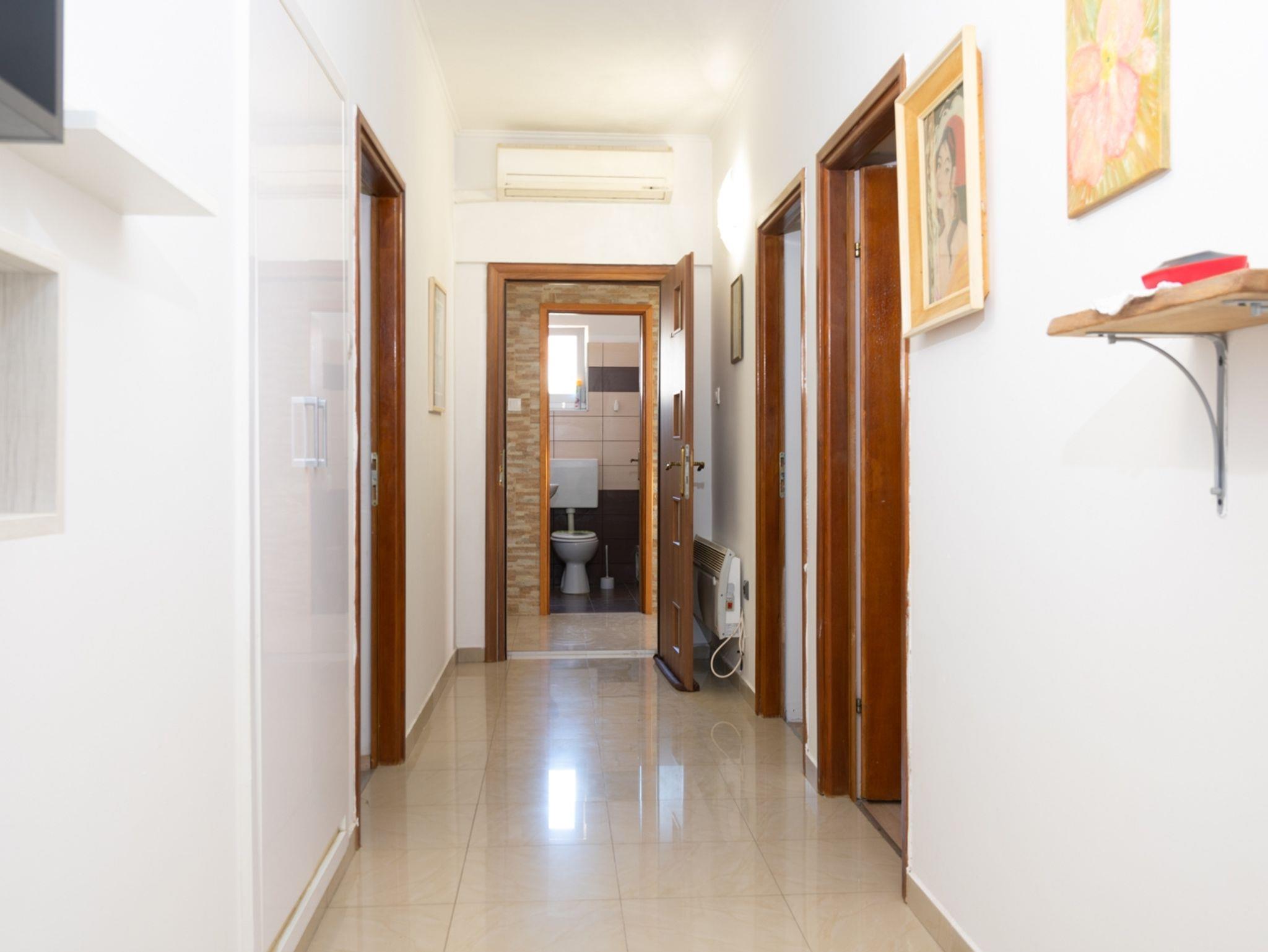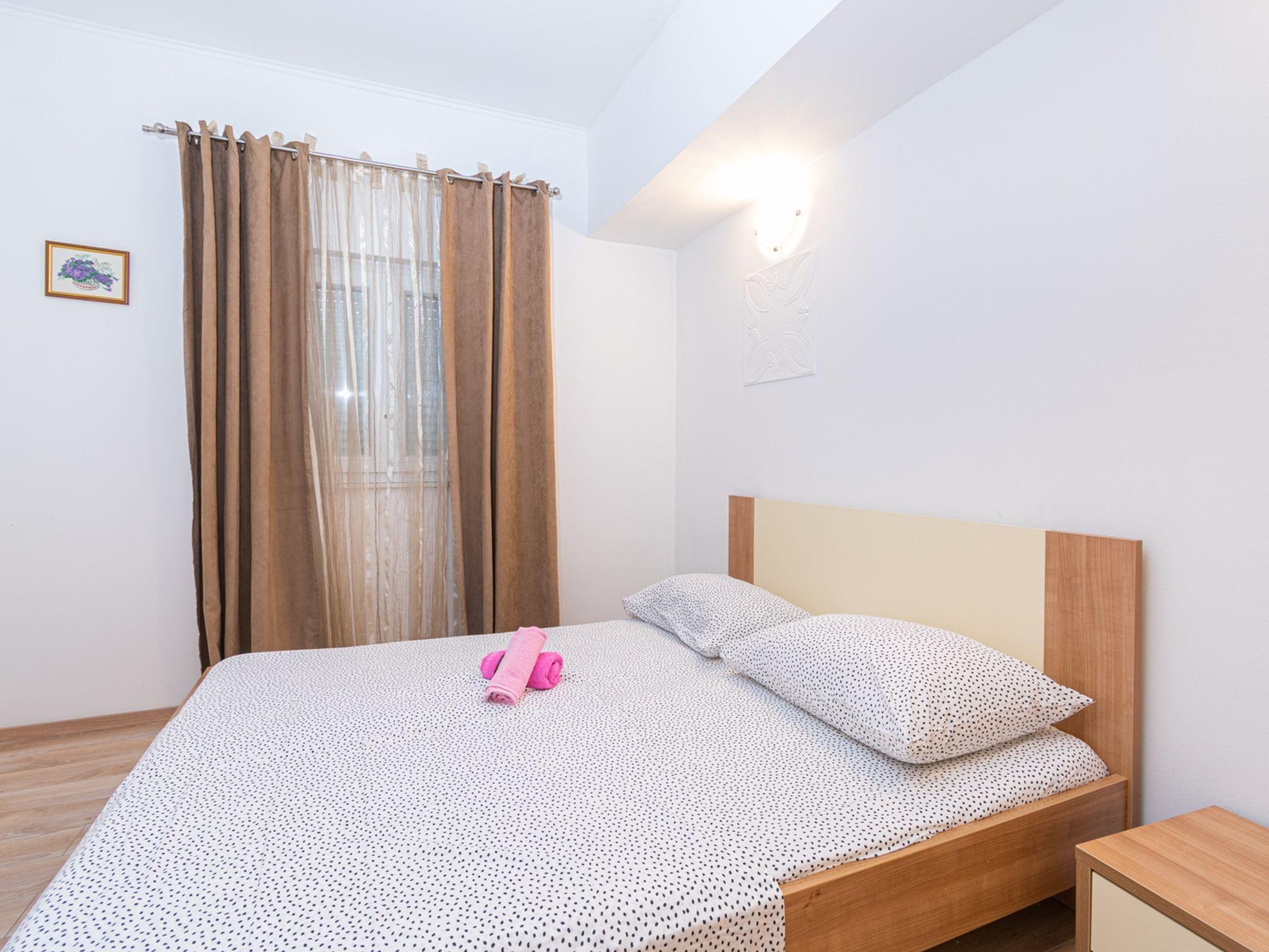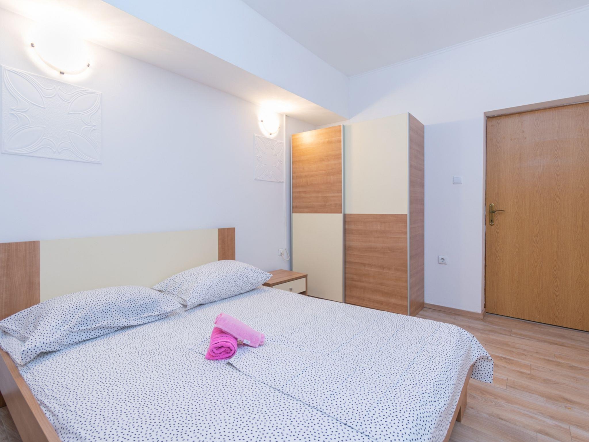 Ferienwohnung bietet Platz für 7 Gäste. Die Betten sind in Schlafzimmern, die es 3 gibt, und in Wohnzimmer, innerhalb einer Gesamtfläche von 91m2, angeordnet. Die Gäste haben eine eigene Terrasse zur Verfügung, auf der sie in warmen Sommernächten genießen können. Das Apartment bietet Meerblick. Es ist erlaubt, Speisen auf dem Gemeinschafts-Grill vorzubereiten. IM PREIS INBEGRIFFEN: Kurtaxe, Endreinigung, Klimatisierung, Parkplatz, Internet, Bügeleisen, Bügelbrett, Föhn. VERBINDLICHE ZUSÄTZLICHE KOSTEN: Aufzahlung für Kurzaufenthalte (prozentualer Zuschlag pro Nächtigungsanzahl: 30% - 1, 20% - 2, 10% - 3). Die Verfügbarkeit zusätzlicher Dienstleistungen in Ihrem reservierten Termin und die Preise derselben (falls nicht aufgeführt) müssen im Voraus überprüft werden. Zusätzliche Dienstleistungen die in der Zahlungsaufforderung nicht aufgeführt sind werden direkt beim Vermieter bezahlt, angenommen der Gast nutzt auch diese. Ermäßigung auf den Grundpreis: Gratistag 14=13 (bei einem Aufenthalt von 14 Tagen oder mehr erhalten Sie einen Gratistag für den Aufenthalt bis 31.12.26).