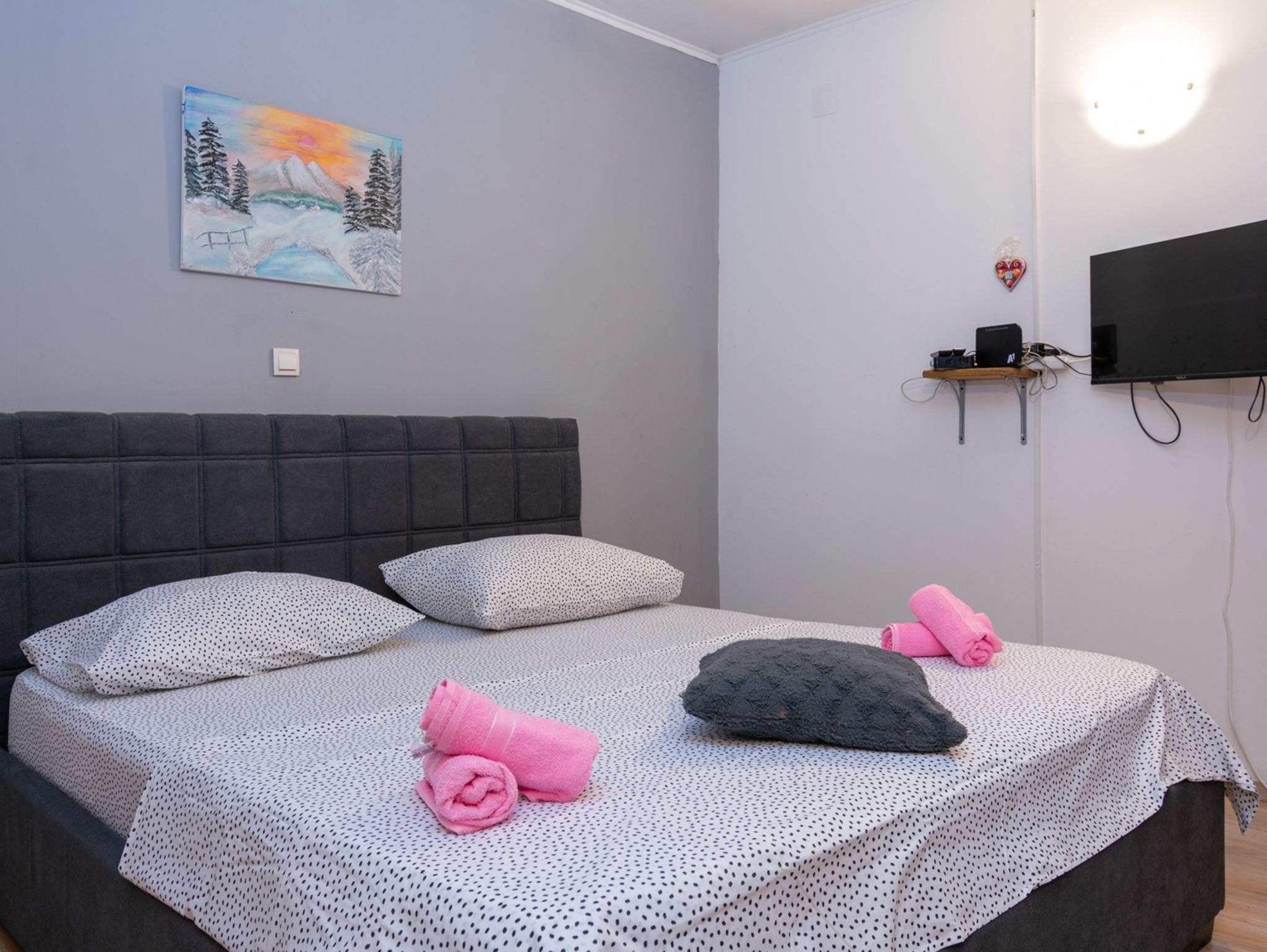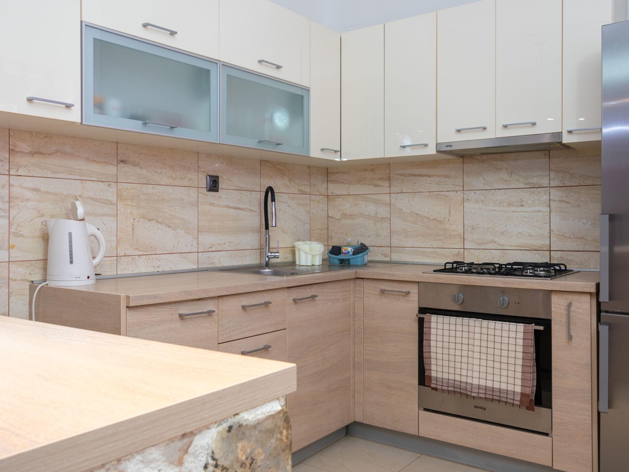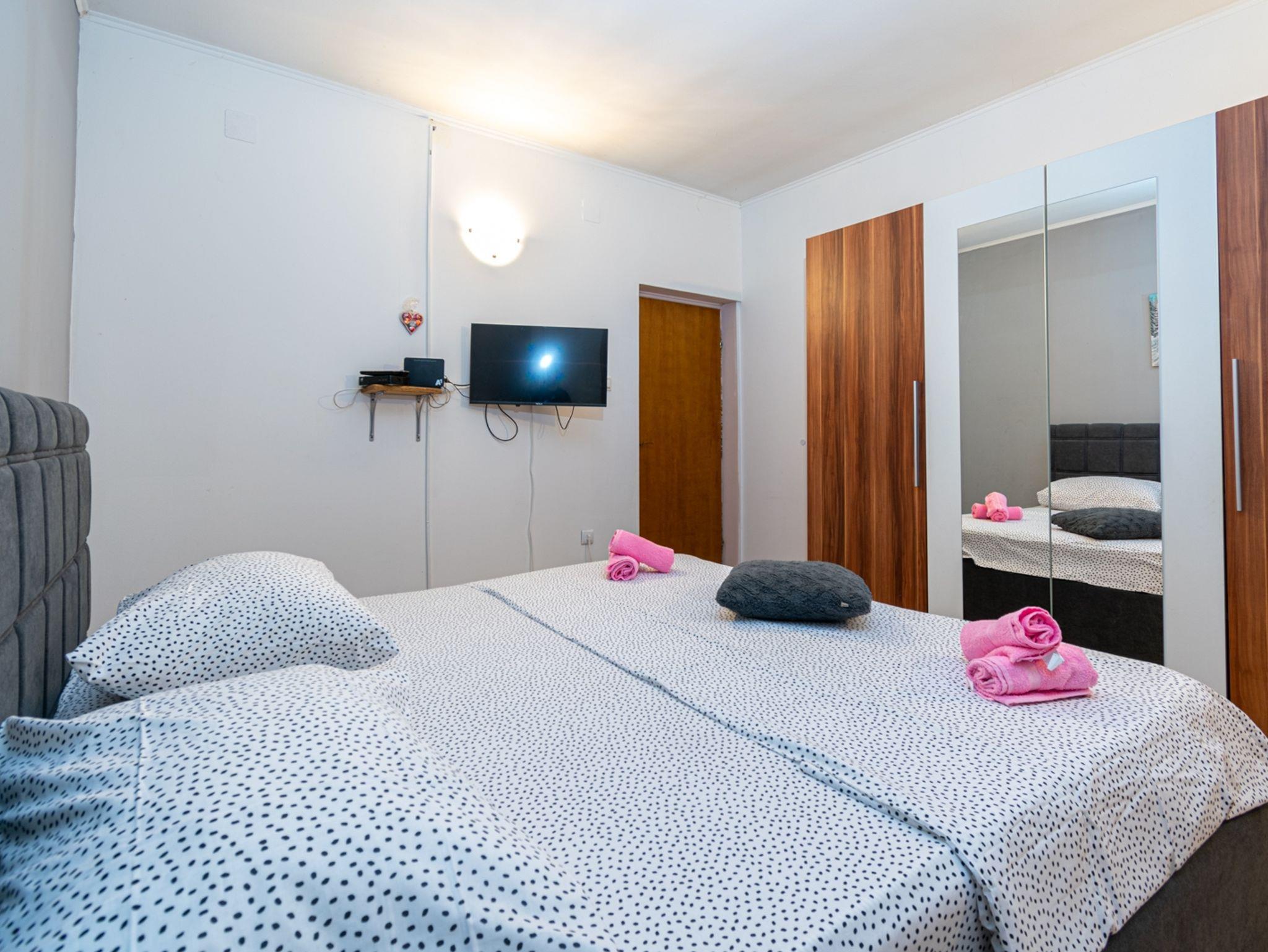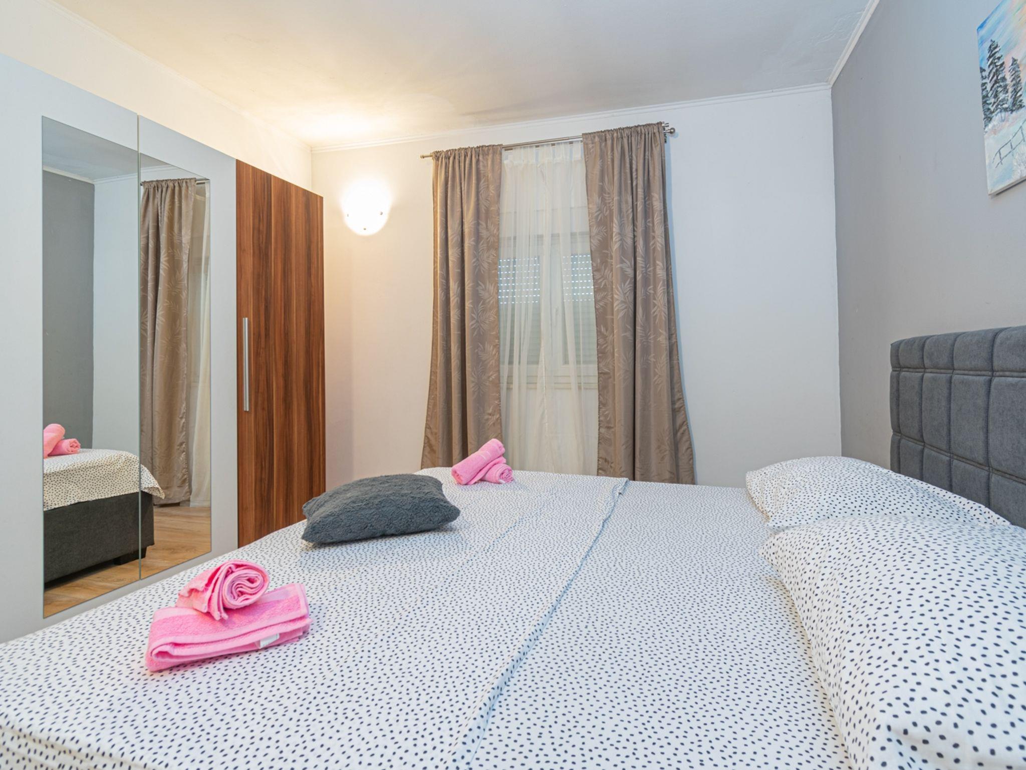 Ferienwohnung bietet Platz für 7 Gäste. Die Betten sind in Schlafzimmern, die es 3 gibt, und in Wohnzimmer, innerhalb einer Gesamtfläche von 91m2, angeordnet. Die Gäste haben eine eigene Terrasse zur Verfügung, auf der sie in warmen Sommernächten genießen können. Das Apartment bietet Meerblick. Es ist erlaubt, Speisen auf dem Gemeinschafts-Grill vorzubereiten. IM PREIS INBEGRIFFEN: Kurtaxe, Endreinigung, Klimatisierung, Parkplatz, Internet, Bügeleisen, Bügelbrett, Föhn. VERBINDLICHE ZUSÄTZLICHE KOSTEN: Aufzahlung für Kurzaufenthalte (prozentualer Zuschlag pro Nächtigungsanzahl: 30% - 1, 20% - 2, 10% - 3). Die Verfügbarkeit zusätzlicher Dienstleistungen in Ihrem reservierten Termin und die Preise derselben (falls nicht aufgeführt) müssen im Voraus überprüft werden. Zusätzliche Dienstleistungen die in der Zahlungsaufforderung nicht aufgeführt sind werden direkt beim Vermieter bezahlt, angenommen der Gast nutzt auch diese. Ermäßigung auf den Grundpreis: Gratistag 14=13 (bei einem Aufenthalt von 14 Tagen oder mehr erhalten Sie einen Gratistag für den Aufenthalt bis 31.12.26).