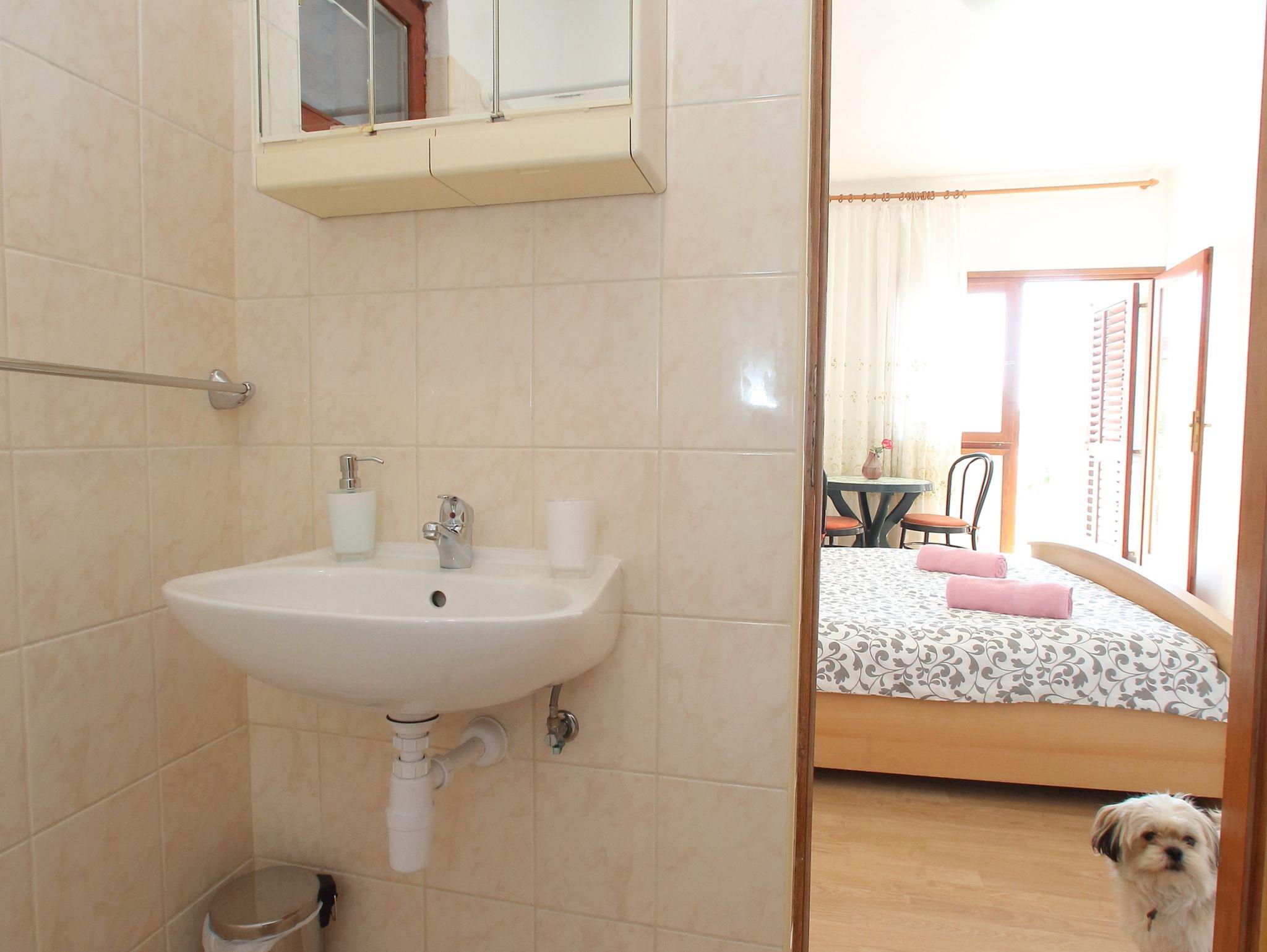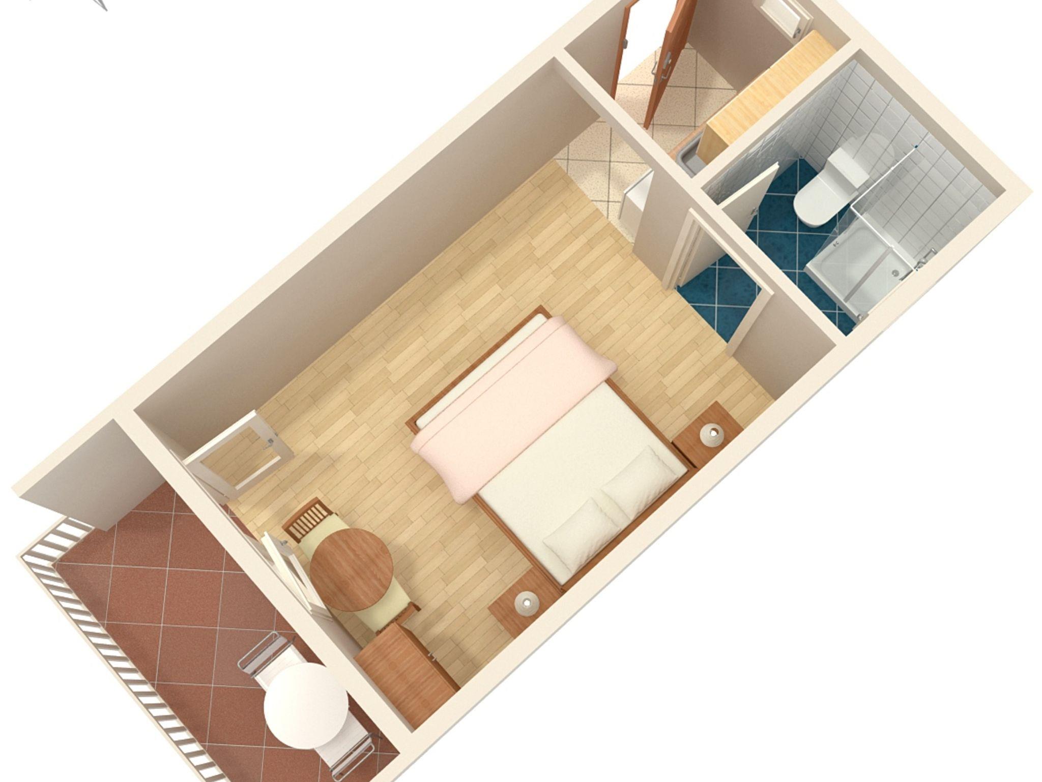 Studio bietet Platz für 2 Gäste. Die Betten sind in Schlafzimmern, die es 1 gibt, innerhalb einer Gesamtfläche von 19m2, angeordnet. Die Gäste haben eine eigene Terrasse zur Verfügung, auf der sie in warmen Sommernächten genießen können. Das Studio-Apartment bietet Meerblick. Es ist erlaubt, Speisen auf dem Gemeinschafts-Grill vorzubereiten. In der Unterkunftseinheit besteht die Möglichkeit des Mitbringens von Haustieren gegen Aufpreis. IM PREIS INBEGRIFFEN: Kurtaxe, Endreinigung, Parkplatz, Internet, tragbarer Grill. VERBINDLICHE ZUSÄTZLICHE KOSTEN: Aufzahlung für Kurzaufenthalte (prozentualer Zuschlag pro Nächtigungsanzahl: 30% - 1, 20% - 2, 10% - 3). UNVERBINDLICHE ZUSÄTZLICHE KOSTEN: Klimatisierung (5,00 € pro Nacht), Haustiere (5,00 € pro Nacht). Die Verfügbarkeit zusätzlicher Dienstleistungen in Ihrem reservierten Termin und die Preise derselben (falls nicht aufgeführt) müssen im Voraus überprüft werden. Zusätzliche Dienstleistungen die in der Zahlungsaufforderung nicht aufgeführt sind werden direkt beim Vermieter bezahlt, angenommen der Gast nutzt auch diese.