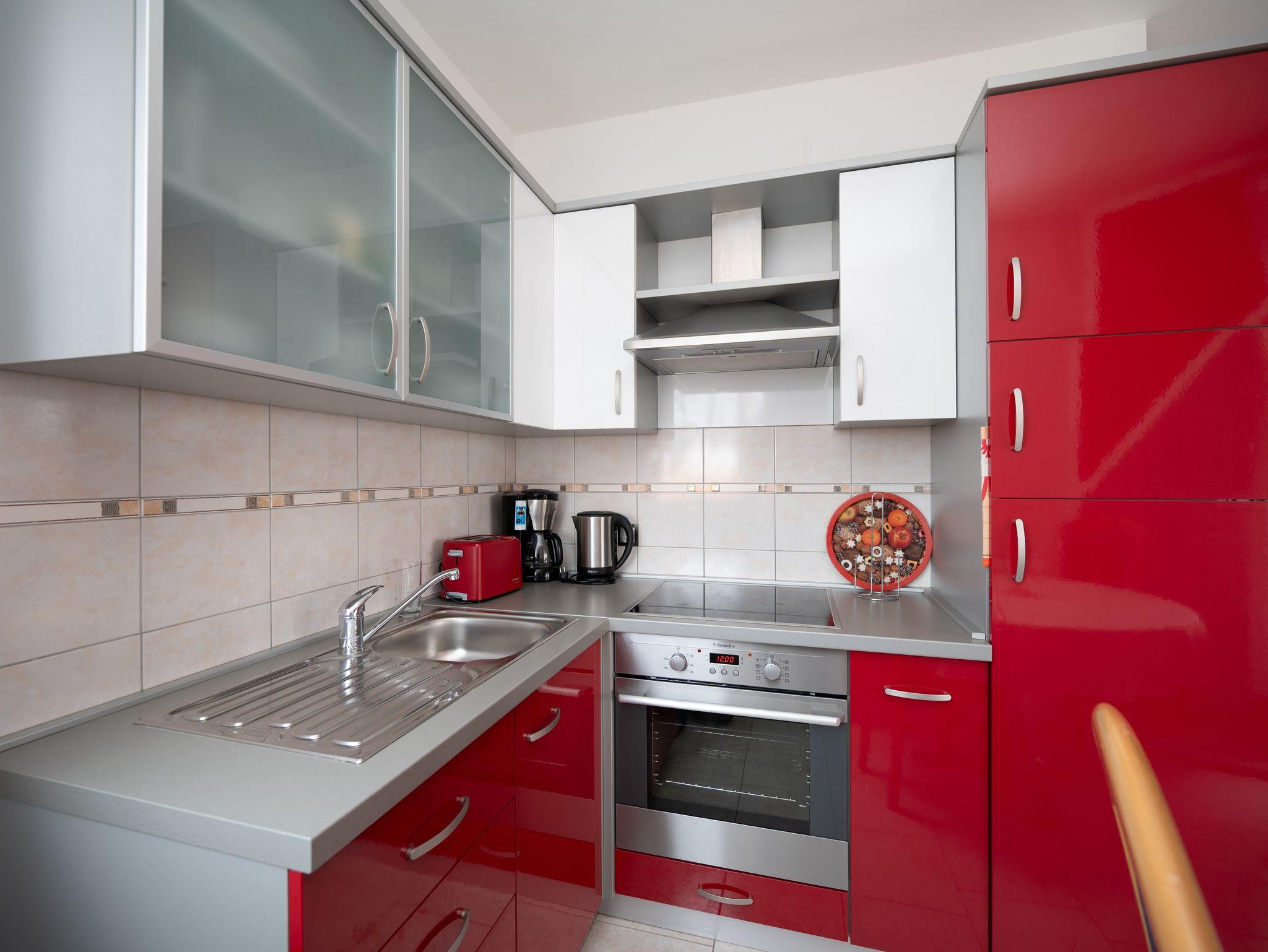 Ferienwohnung bietet Platz für 4 Gäste. Die Betten sind in Schlafzimmern, die es 1 gibt, und in Wohnzimmer, innerhalb einer Gesamtfläche von 34m2, angeordnet. Die Gäste haben eine eigene Terrasse zur Verfügung, auf der sie in warmen Sommernächten genießen können. Es ist erlaubt, Speisen auf dem Gemeinschafts-Grill vorzubereiten. IM PREIS INBEGRIFFEN: Kurtaxe, Endreinigung, Klimatisierung, Parkplatz, Internet, Kinderbett, Zusatzbett, Bügeleisen, Bügelbrett, Föhn, Sonnenschirm. Die Verfügbarkeit zusätzlicher Dienstleistungen in Ihrem reservierten Termin und die Preise derselben (falls nicht aufgeführt) müssen im Voraus überprüft werden. Zusätzliche Dienstleistungen die in der Zahlungsaufforderung nicht aufgeführt sind werden direkt beim Vermieter bezahlt, angenommen der Gast nutzt auch diese.