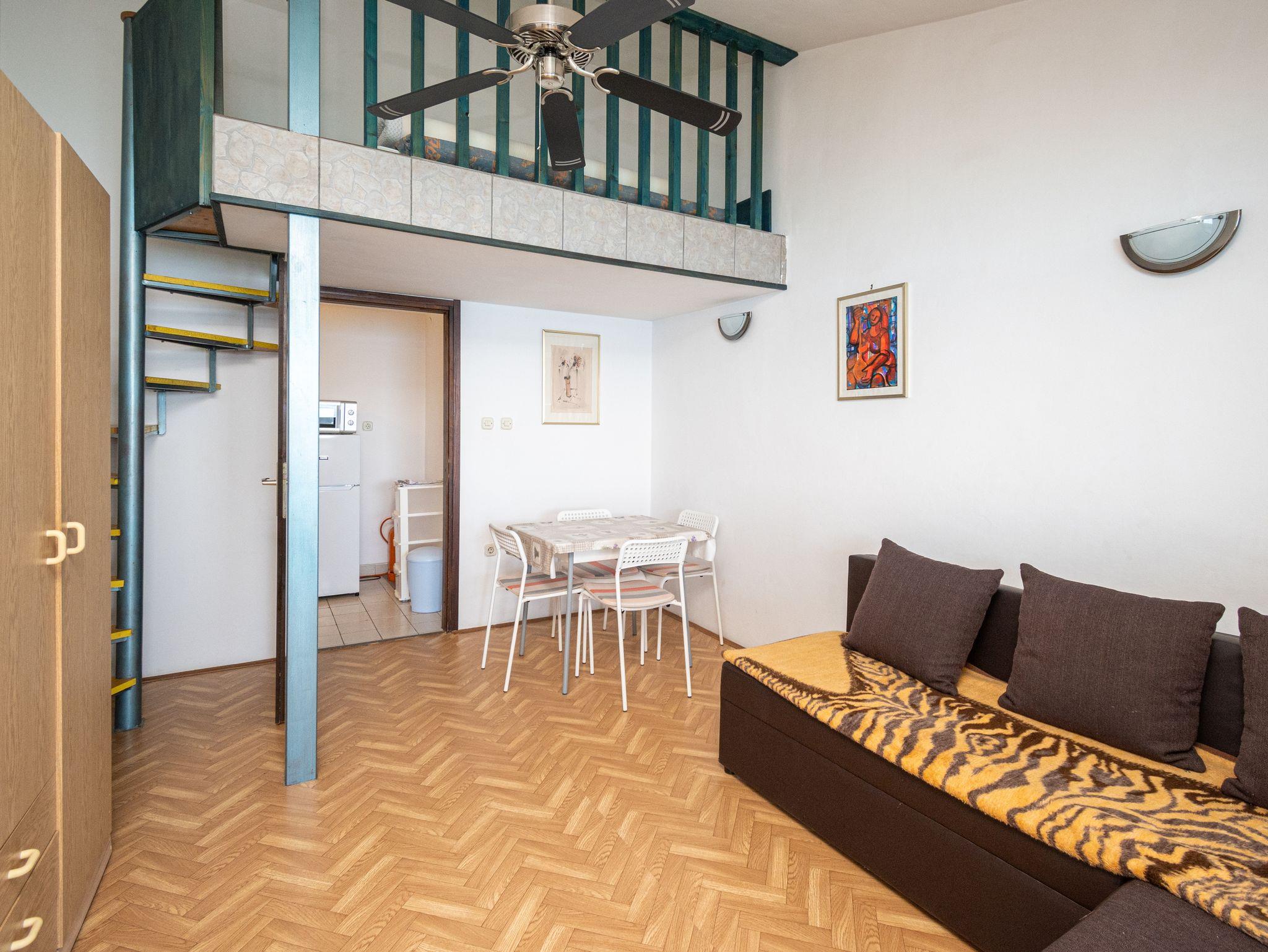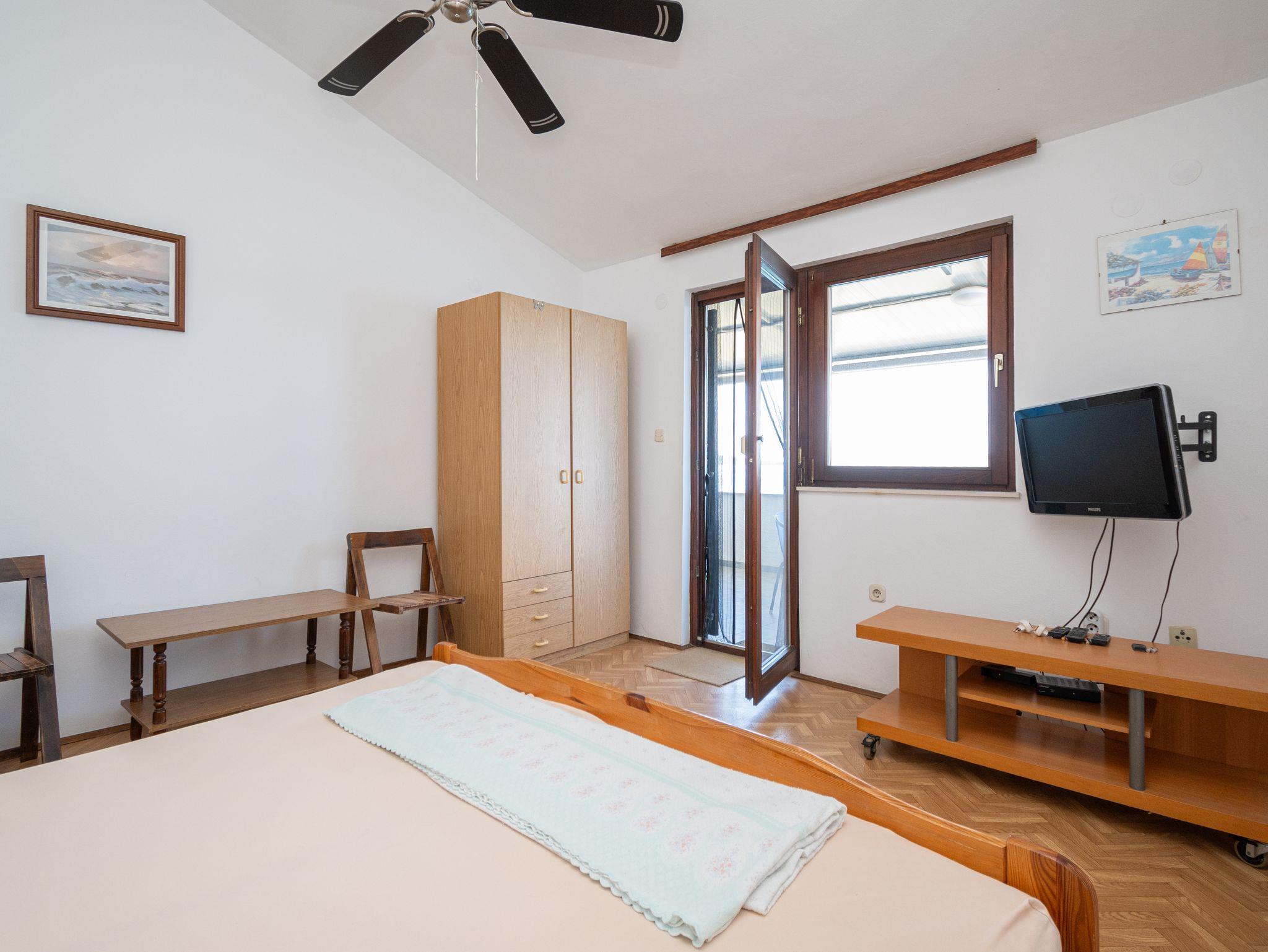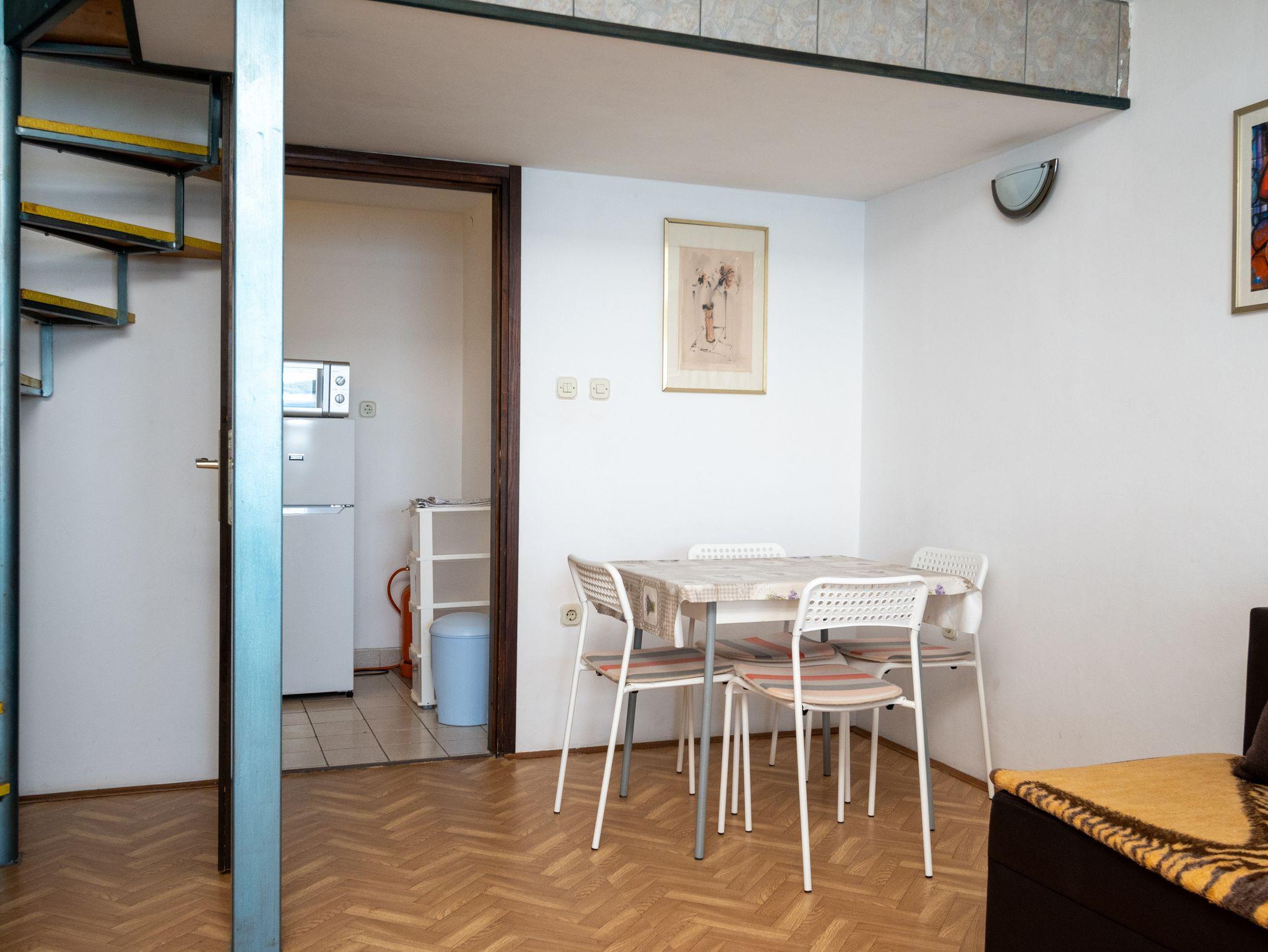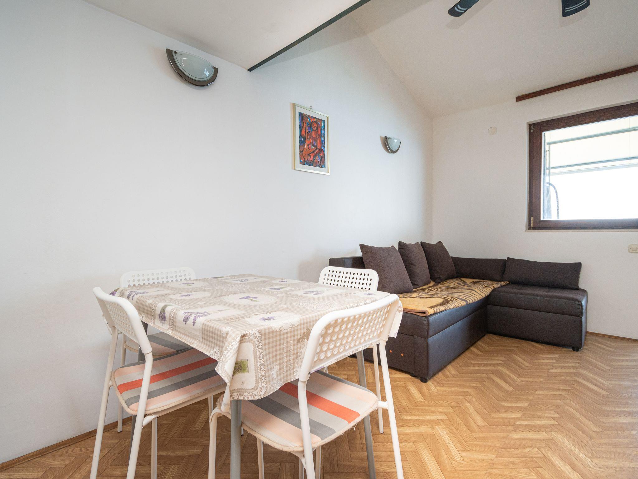 Ferienwohnung bietet Platz für 4 Gäste. Die Betten sind in Schlafzimmern, die es 1 gibt, und in Wohnzimmer, innerhalb einer Gesamtfläche von 42m2, angeordnet. Die Gäste haben eine eigene Terrasse zur Verfügung, auf der sie in warmen Sommernächten genießen können. Das Apartment bietet Meerblick. Es ist erlaubt, Speisen auf dem Gemeinschafts-Grill vorzubereiten. IM PREIS INBEGRIFFEN: Kurtaxe, Endreinigung, Parkplatz, Internet, Kinderbett, Bügeleisen, Bügelbrett, Föhn. UNVERBINDLICHE ZUSÄTZLICHE KOSTEN: Klimatisierung (7,00 € pro Nacht), Wäschewaschen (7,00 € Waschen), Bootsanlegeplatz (8,00 € pro Nacht). Die Verfügbarkeit zusätzlicher Dienstleistungen in Ihrem reservierten Termin und die Preise derselben (falls nicht aufgeführt) müssen im Voraus überprüft werden. Zusätzliche Dienstleistungen die in der Zahlungsaufforderung nicht aufgeführt sind werden direkt beim Vermieter bezahlt, angenommen der Gast nutzt auch diese. Ermäßigung auf den Grundpreis: Gratistag 28=25 (bei einem Aufenthalt von 28 oder mehr Tagen erhalten Sie 3 kostenlose Tage für den Aufenthalt bis 31.12.26).