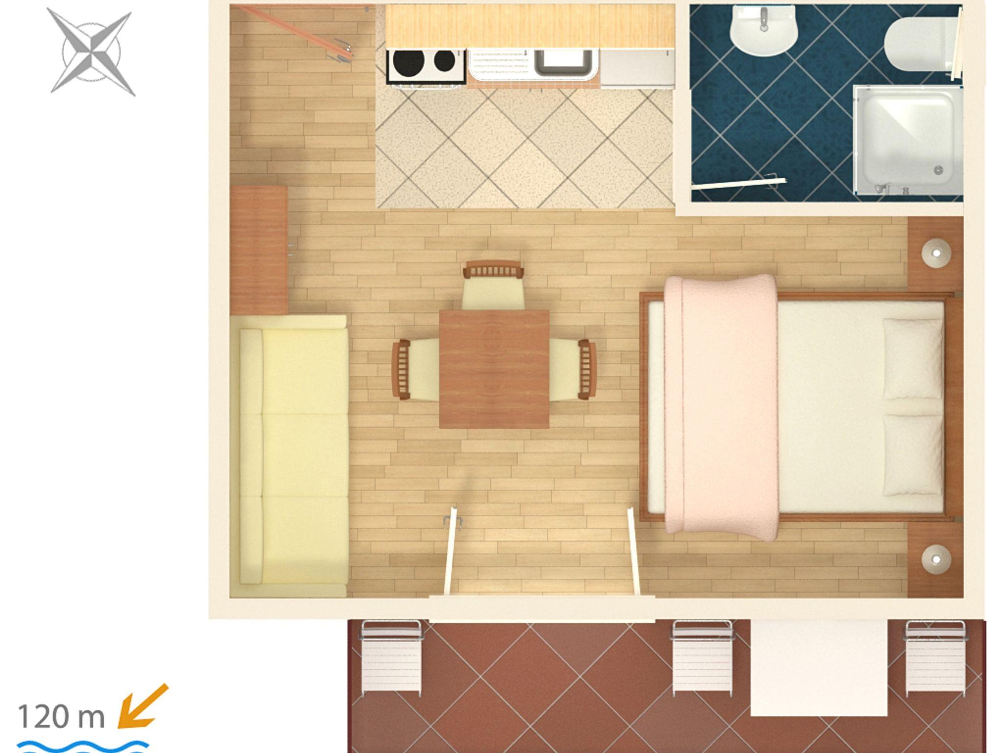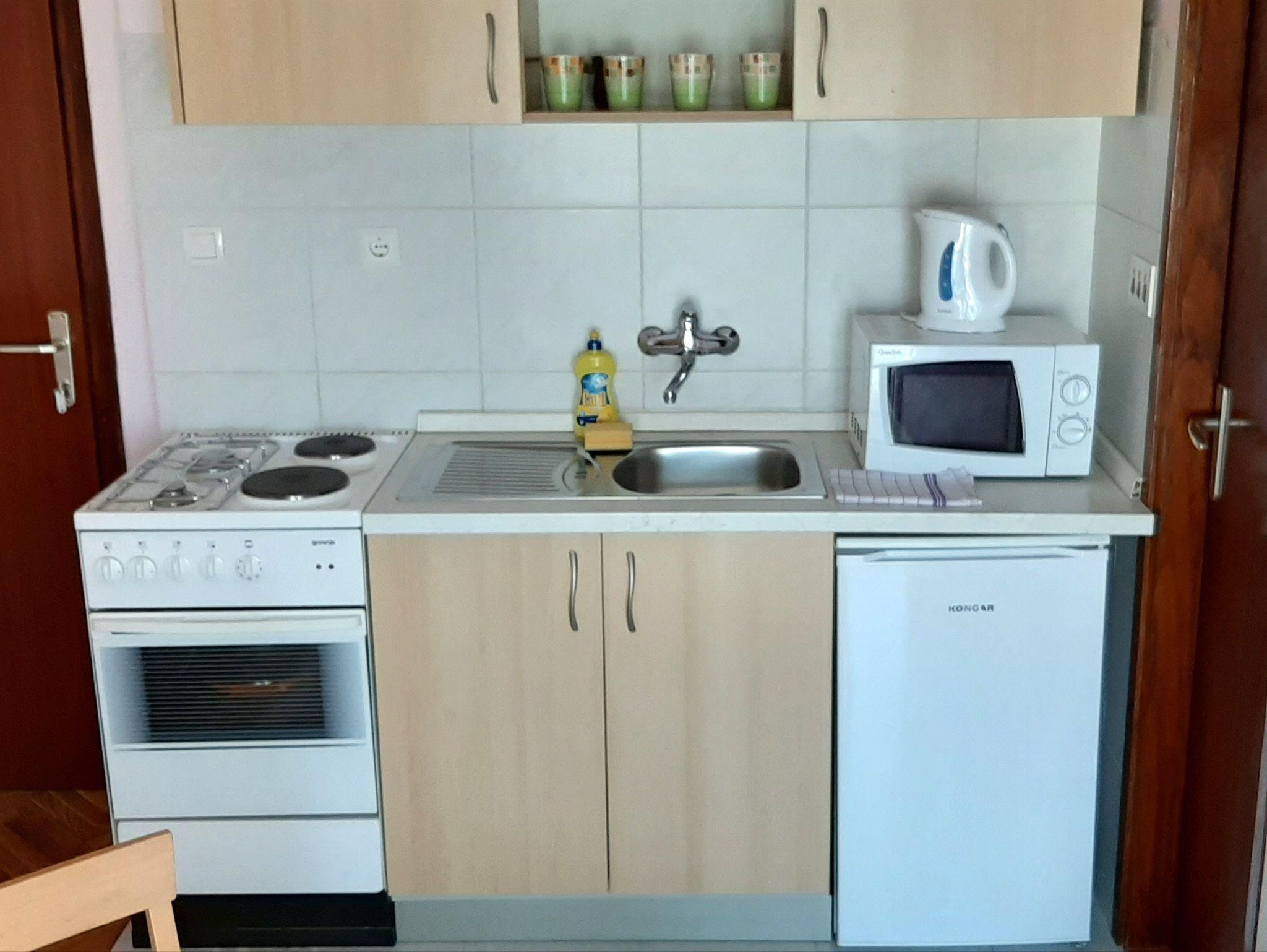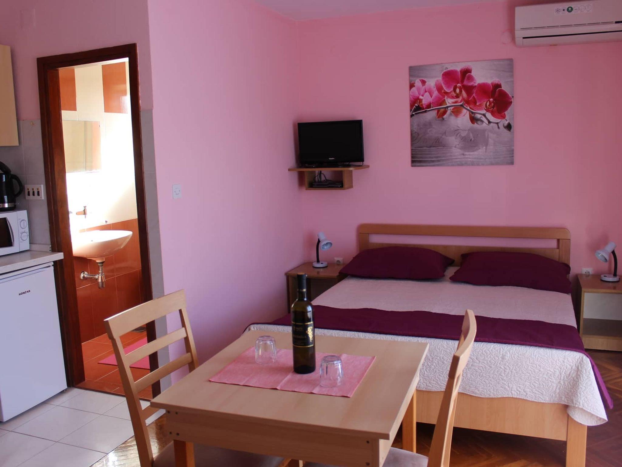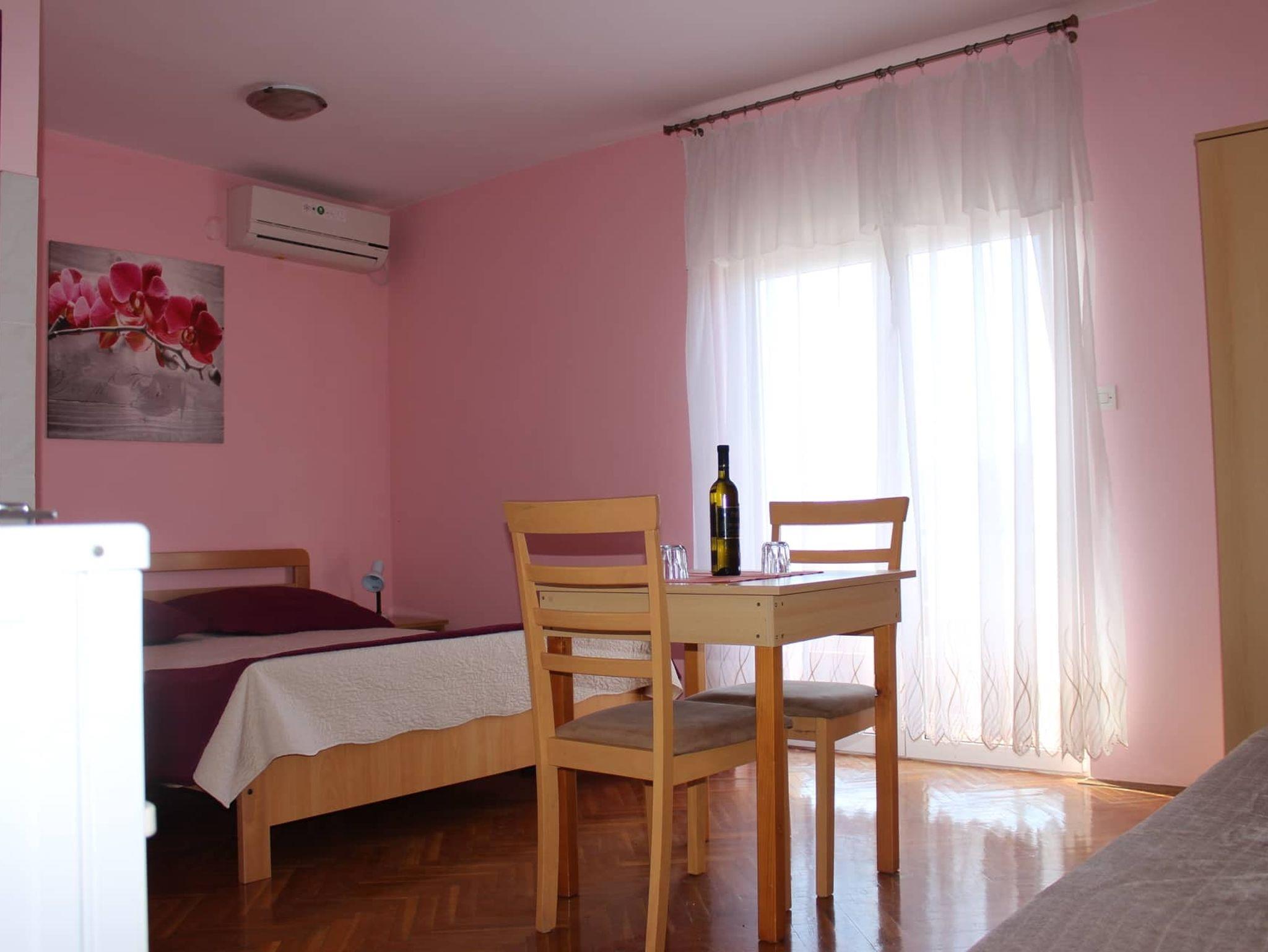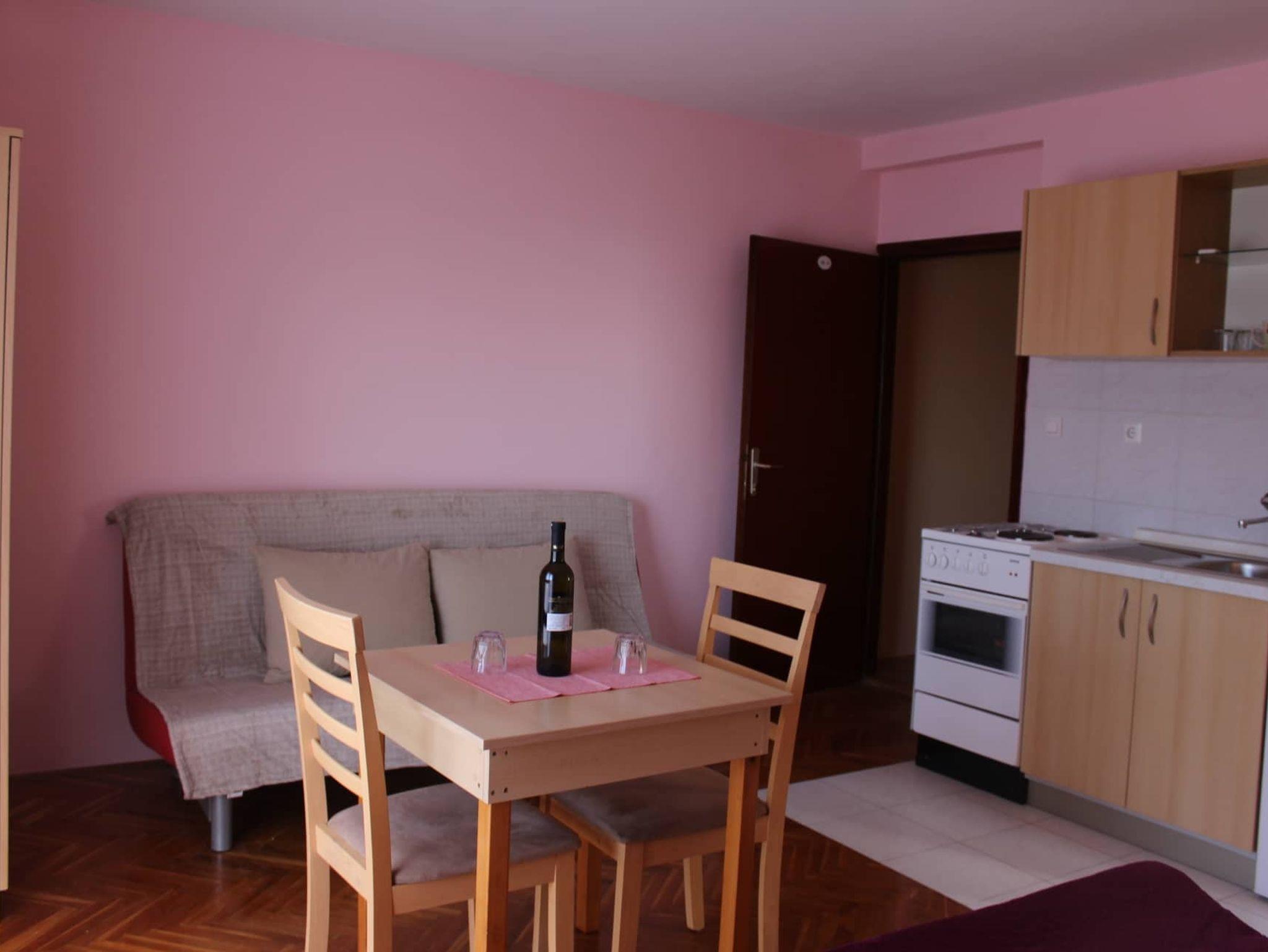 Studio bietet Platz für 3 Gäste. Die Betten sind in Schlafzimmern, die es 1 gibt, und in Esszimmer, innerhalb einer Gesamtfläche von 19m2, angeordnet. Die Gäste haben einen eigenen Balkon zur Verfügung, auf der sie in warmen Sommernächten genießen können. Das Studio-Apartment bietet Meerblick. Es ist erlaubt, Speisen auf dem Gemeinschafts-Grill vorzubereiten. IM PREIS INBEGRIFFEN: Kurtaxe, Endreinigung, Parkplatz, Internet. VERBINDLICHE ZUSÄTZLICHE KOSTEN: Aufzahlung für Kurzaufenthalte (prozentualer Zuschlag pro Nächtigungsanzahl: 30% - 1, 20% - 2, 10% - 3). UNVERBINDLICHE ZUSÄTZLICHE KOSTEN: Klimatisierung (7,00 € pro Nacht). Die Verfügbarkeit zusätzlicher Dienstleistungen in Ihrem reservierten Termin und die Preise derselben (falls nicht aufgeführt) müssen im Voraus überprüft werden. Zusätzliche Dienstleistungen die in der Zahlungsaufforderung nicht aufgeführt sind werden direkt beim Vermieter bezahlt, angenommen der Gast nutzt auch diese.