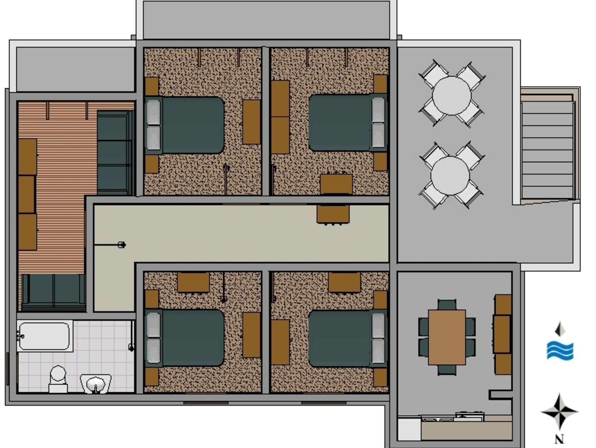 Ferienwohnung bietet Platz für 8 Gäste. Die Betten sind in Schlafzimmern, die es 4 gibt, innerhalb einer Gesamtfläche von 114m2, angeordnet. Die Gäste haben eine eigene Terrasse zur Verfügung, auf der sie in warmen Sommernächten genießen können. Es ist erlaubt, Speisen auf dem Gemeinschafts-Grill vorzubereiten. IM PREIS INBEGRIFFEN: Kurtaxe, Endreinigung, Klimatisierung, Parkplatz, Internet, Wäschewaschen, Bügeleisen, Bügelbrett, Föhn. VERBINDLICHE ZUSÄTZLICHE KOSTEN: Aufzahlung für Kurzaufenthalte (prozentualer Zuschlag pro Nächtigungsanzahl: 30% - 1, 20% - 2, 10% - 3). Die Verfügbarkeit zusätzlicher Dienstleistungen in Ihrem reservierten Termin und die Preise derselben (falls nicht aufgeführt) müssen im Voraus überprüft werden. Zusätzliche Dienstleistungen die in der Zahlungsaufforderung nicht aufgeführt sind werden direkt beim Vermieter bezahlt, angenommen der Gast nutzt auch diese.