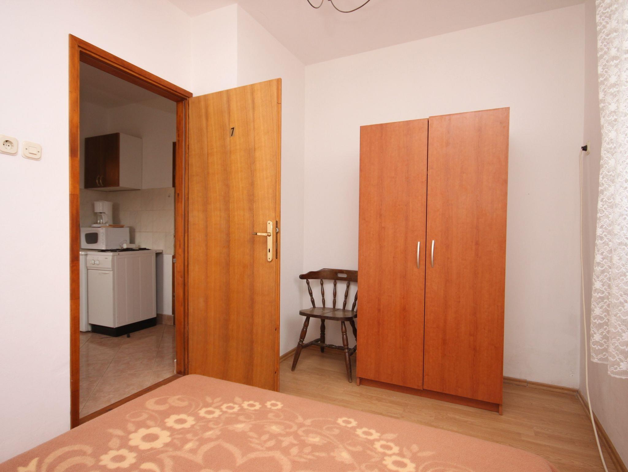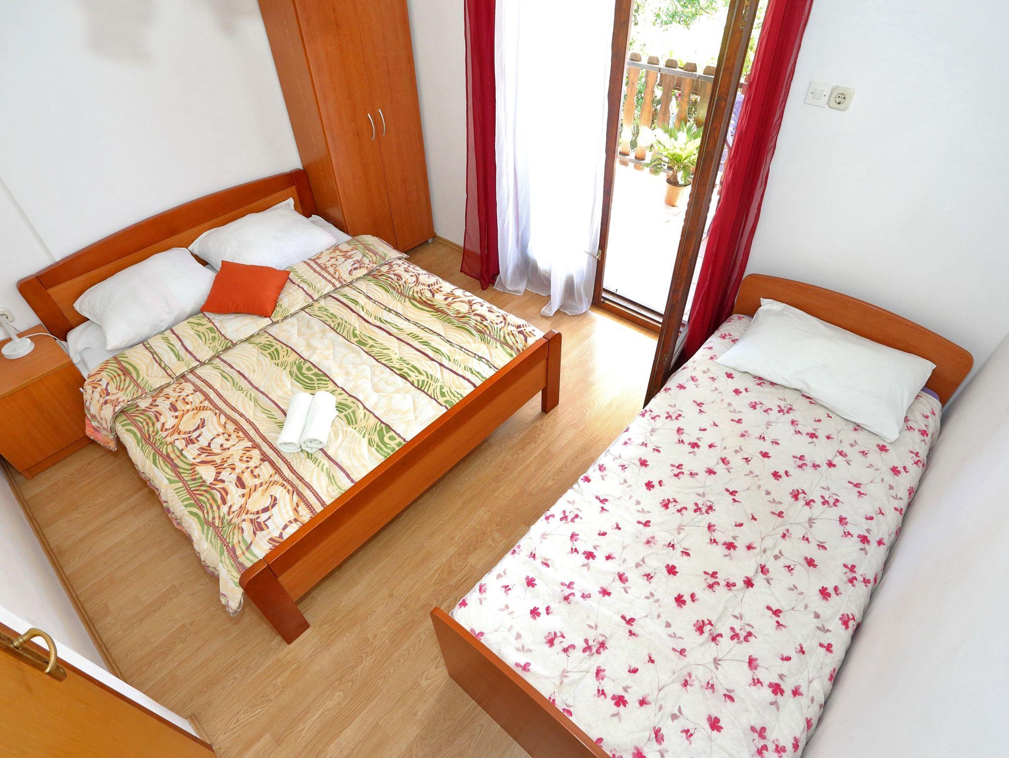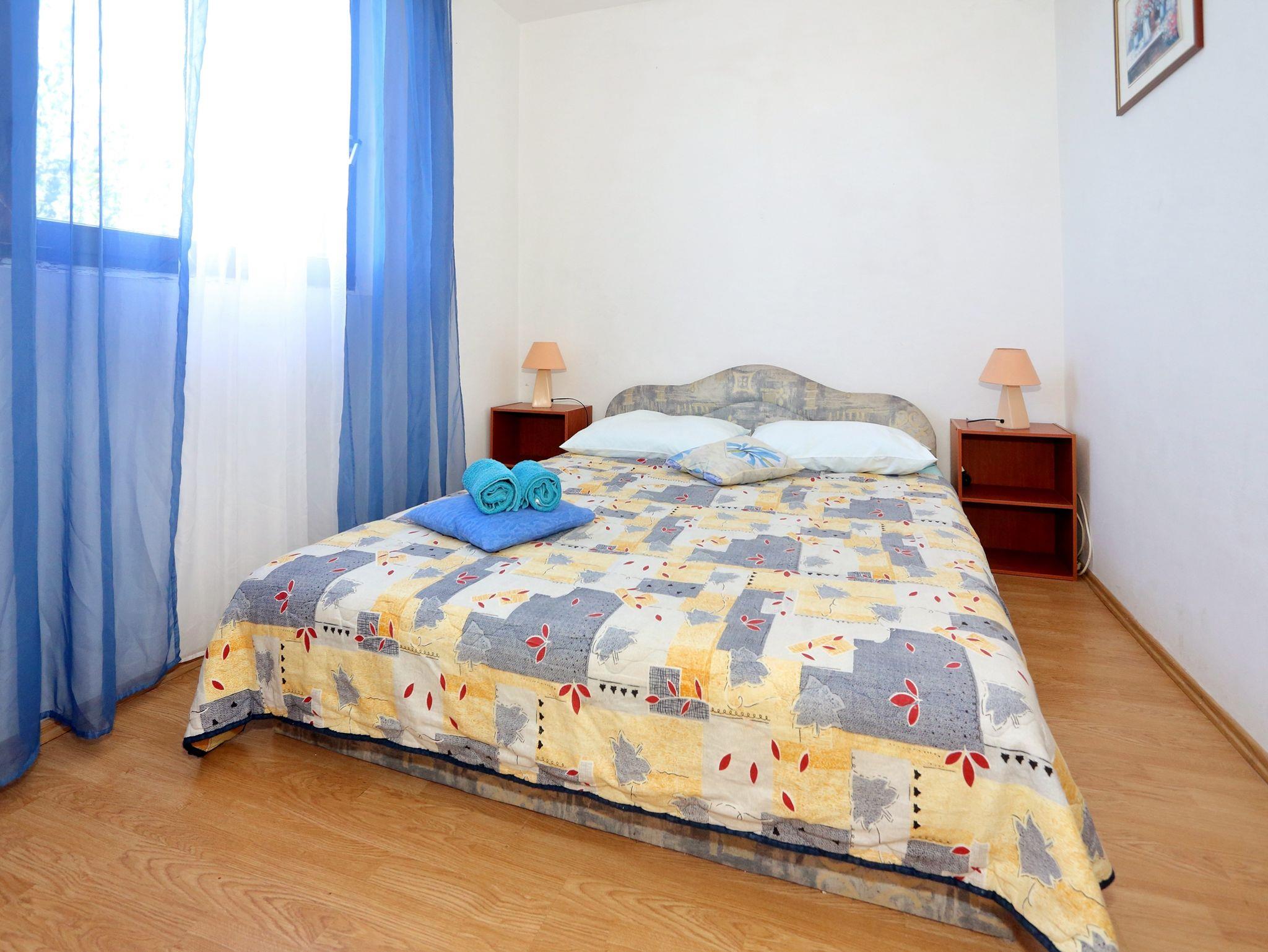 Ferienwohnung bietet Platz für 5 Gäste. Die Betten sind in Schlafzimmern, die es 2 gibt, innerhalb einer Gesamtfläche von 30m2, angeordnet. Die Gäste haben eine eigene Terrasse zur Verfügung, auf der sie in warmen Sommernächten genießen können. Es ist erlaubt, Speisen auf dem Gemeinschafts-Grill vorzubereiten. Unterkunftseinheit hat Räume, die von dem Rest der Einheit abgetrennt werden. IM PREIS INBEGRIFFEN: Kurtaxe, Endreinigung, Klimatisierung, Parkplatz, Internet, Fahrrad, Kinderbett, Bügeleisen, Bügelbrett, Föhn. VERBINDLICHE ZUSÄTZLICHE KOSTEN: Aufzahlung für Kurzaufenthalte (prozentualer Zuschlag pro Nächtigungsanzahl: 30% - 1, 20% - 2, 10% - 3). UNVERBINDLICHE ZUSÄTZLICHE KOSTEN: Wäschewaschen (5,00 € Waschen). Die Verfügbarkeit zusätzlicher Dienstleistungen in Ihrem reservierten Termin und die Preise derselben (falls nicht aufgeführt) müssen im Voraus überprüft werden. Zusätzliche Dienstleistungen die in der Zahlungsaufforderung nicht aufgeführt sind werden direkt beim Vermieter bezahlt, angenommen der Gast nutzt auch diese. Ermäßigung auf den Grundpreis: Gratistag 14=13 (bei einem Aufenthalt von 14 Tagen oder mehr erhalten Sie einen Gratistag für den Aufenthalt bis 31.12.26).