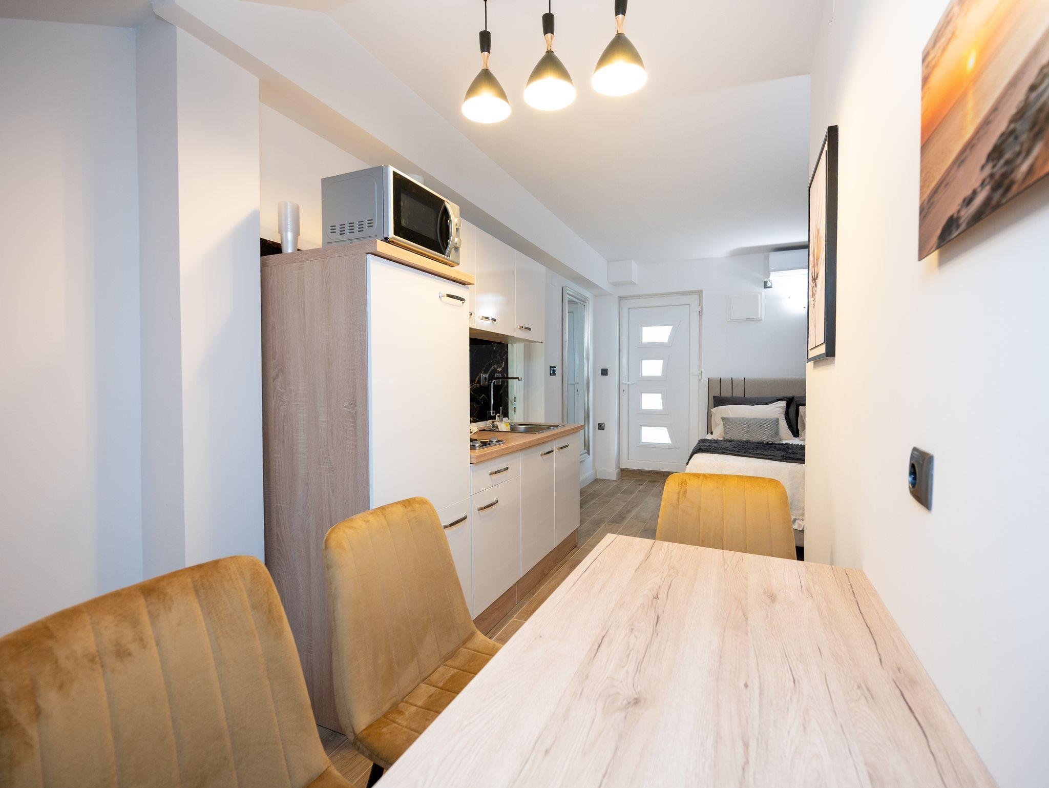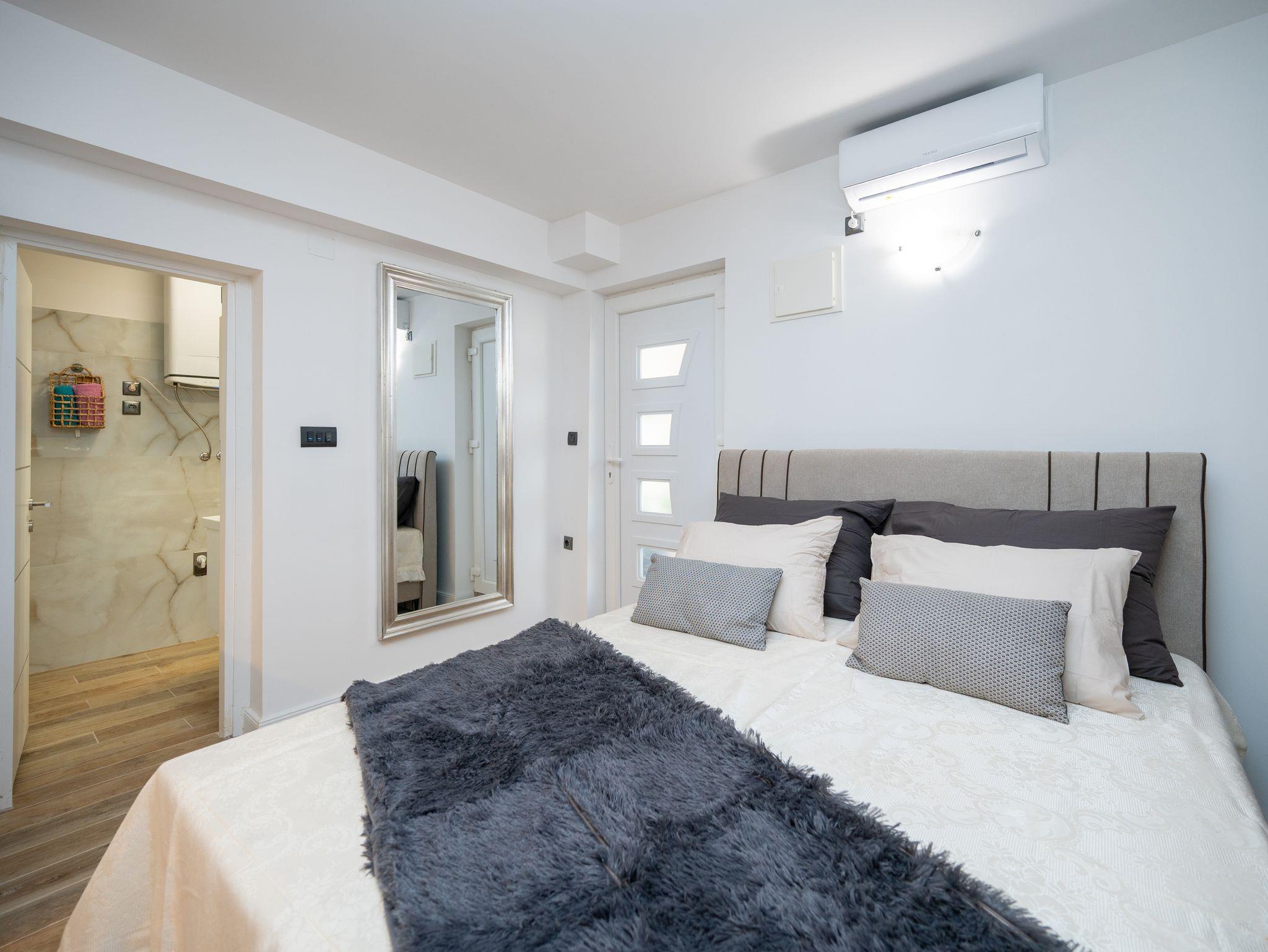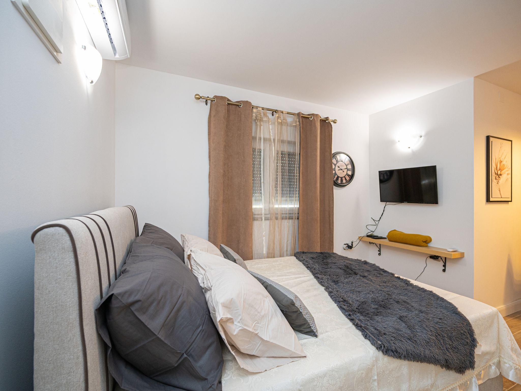 Studio bietet Platz für 2 Gäste. Die Betten sind in Schlafzimmern, die es 1 gibt, innerhalb einer Gesamtfläche von 21m2, angeordnet. Es ist erlaubt, Speisen auf dem Gemeinschafts-Grill vorzubereiten. Die reservierte Unterkunftseinheit hat keinen Balkon und keine Terrasse. IM PREIS INBEGRIFFEN: Kurtaxe, Endreinigung, Klimatisierung, Parkplatz, Internet, Bügeleisen, Bügelbrett, Föhn. VERBINDLICHE ZUSÄTZLICHE KOSTEN: Aufzahlung für Kurzaufenthalte (prozentualer Zuschlag pro Nächtigungsanzahl: 30% - 1, 20% - 2, 10% - 3). Die Verfügbarkeit zusätzlicher Dienstleistungen in Ihrem reservierten Termin und die Preise derselben (falls nicht aufgeführt) müssen im Voraus überprüft werden. Zusätzliche Dienstleistungen die in der Zahlungsaufforderung nicht aufgeführt sind werden direkt beim Vermieter bezahlt, angenommen der Gast nutzt auch diese. Ermäßigung auf den Grundpreis: Gratistag 14=13 (bei einem Aufenthalt von 14 Tagen oder mehr erhalten Sie einen Gratistag für den Aufenthalt bis 31.12.26).