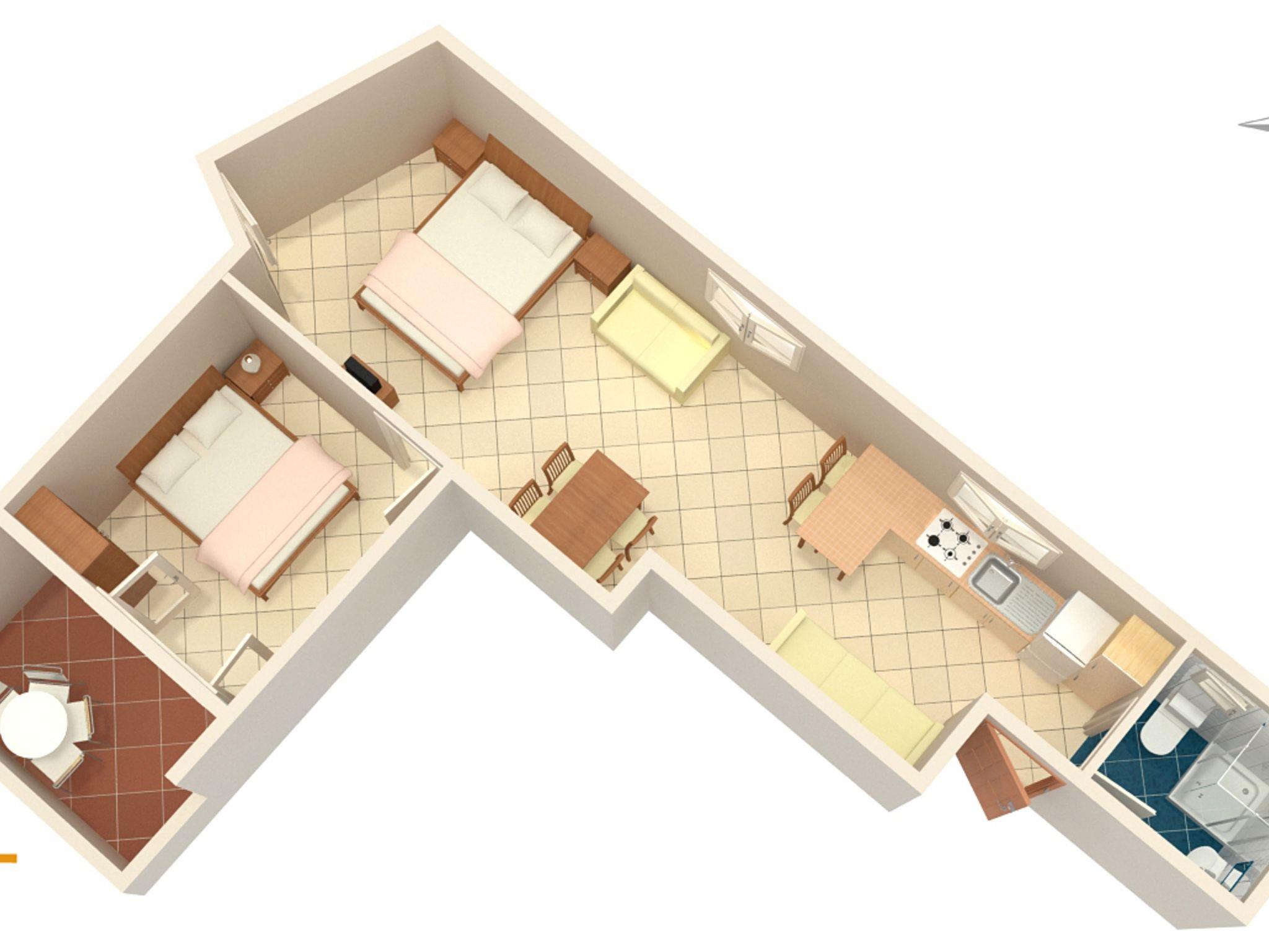 Studio bietet Platz für 5 Gäste. Die Betten sind in Schlafzimmern, die es 1 gibt, und in Wohnzimmer, innerhalb einer Gesamtfläche von 38m2, angeordnet. Die Gäste haben eine eigene Terrasse zur Verfügung, auf der sie in warmen Sommernächten genießen können. Das Studio-Apartment bietet Meerblick. Es ist erlaubt, Speisen auf dem Gemeinschafts-Grill vorzubereiten. IM PREIS INBEGRIFFEN: Kurtaxe, Endreinigung, Internet, Wäschewaschen, tragbarer Grill. VERBINDLICHE ZUSÄTZLICHE KOSTEN: Aufzahlung für Kurzaufenthalte (prozentualer Zuschlag pro Nächtigungsanzahl: 30% - 1, 20% - 2, 10% - 3). UNVERBINDLICHE ZUSÄTZLICHE KOSTEN: Klimatisierung (5,00 € pro Nacht). Die Verfügbarkeit zusätzlicher Dienstleistungen in Ihrem reservierten Termin und die Preise derselben (falls nicht aufgeführt) müssen im Voraus überprüft werden. Zusätzliche Dienstleistungen die in der Zahlungsaufforderung nicht aufgeführt sind werden direkt beim Vermieter bezahlt, angenommen der Gast nutzt auch diese. Ermäßigung auf den Grundpreis: Gratistag 21=19 (bei einem Aufenthalt von 21 Tagen oder mehr erhalten Sie 2 Gratistage für den Aufenthalt bis 31.12.26).