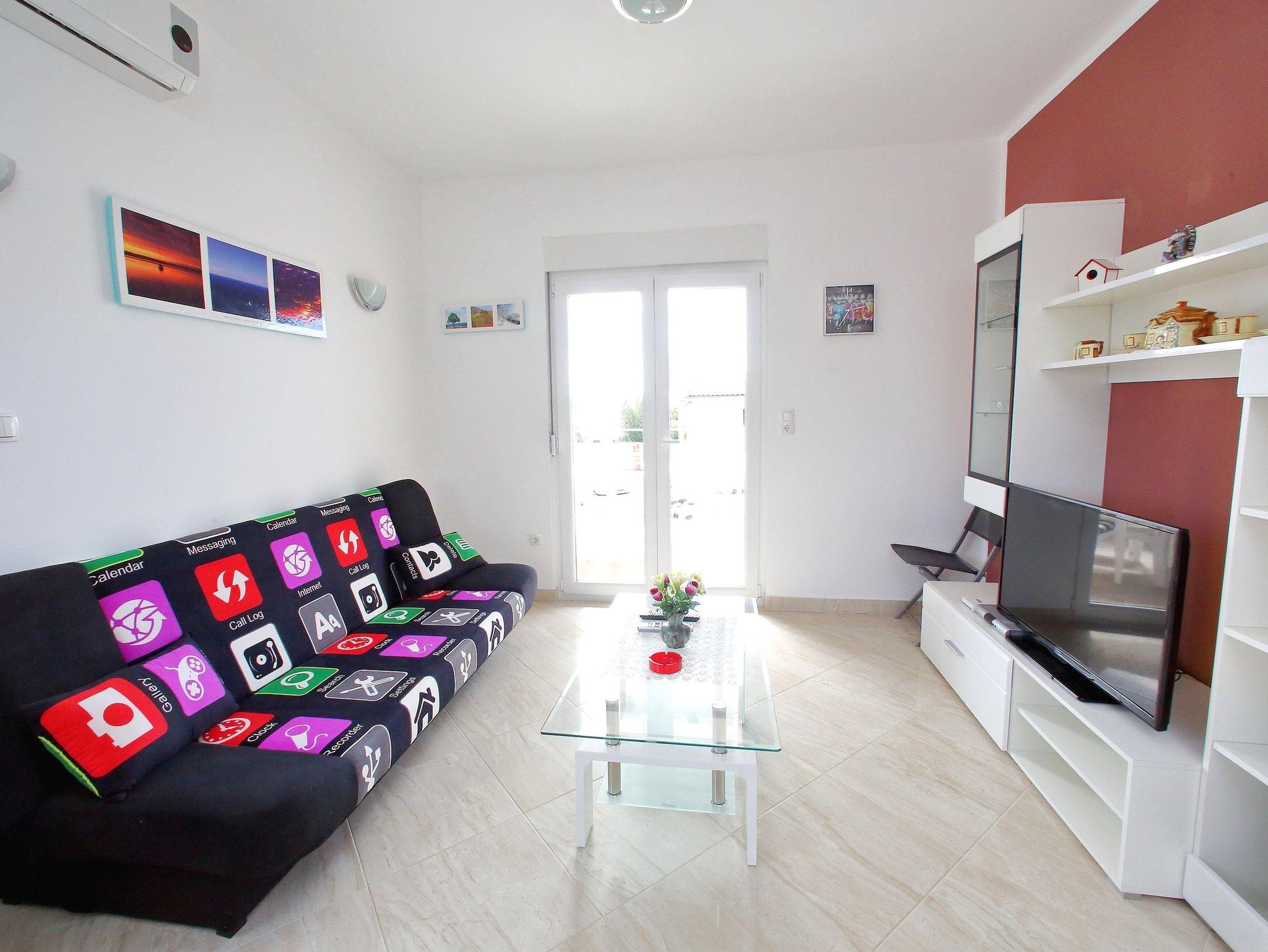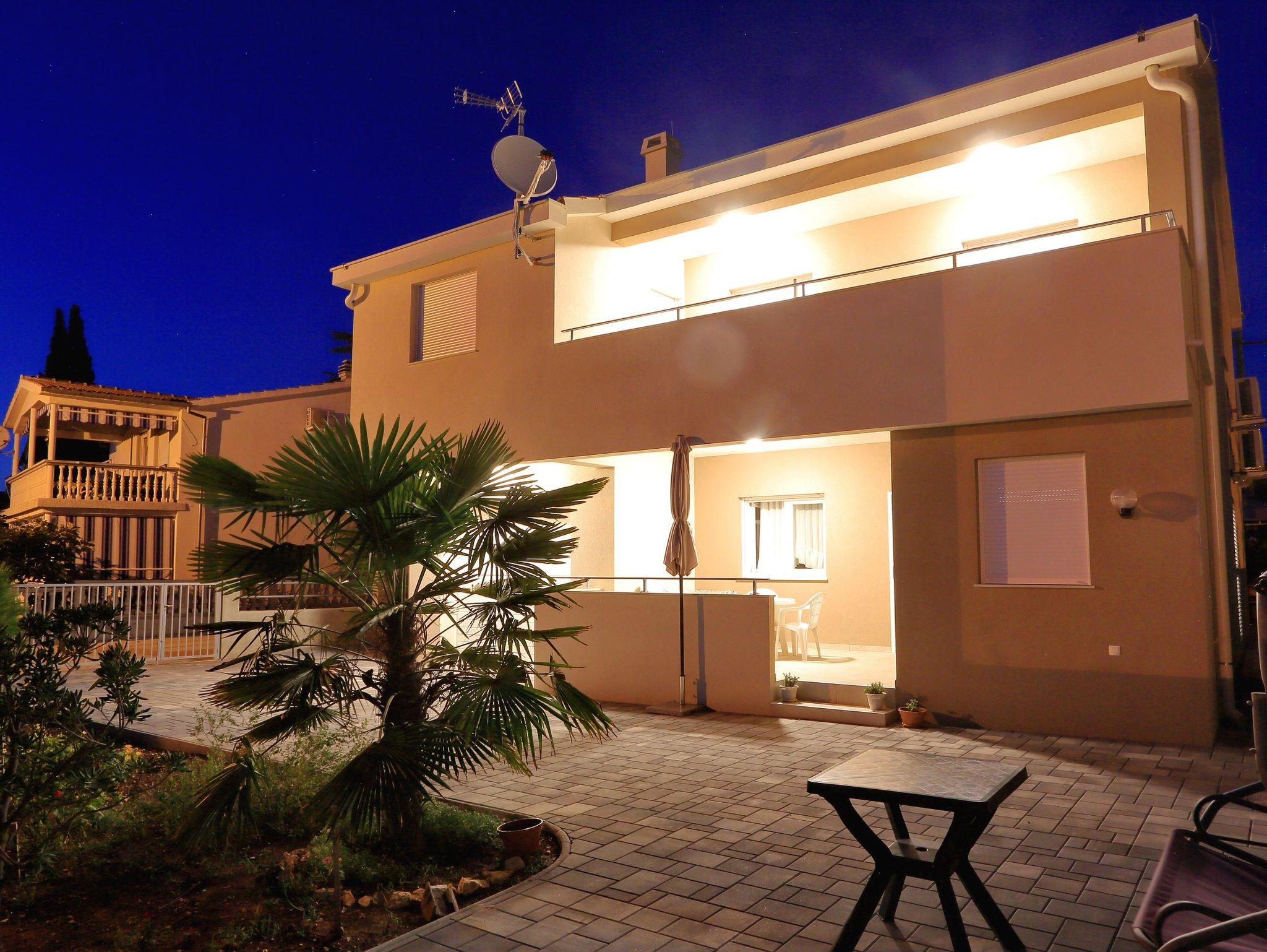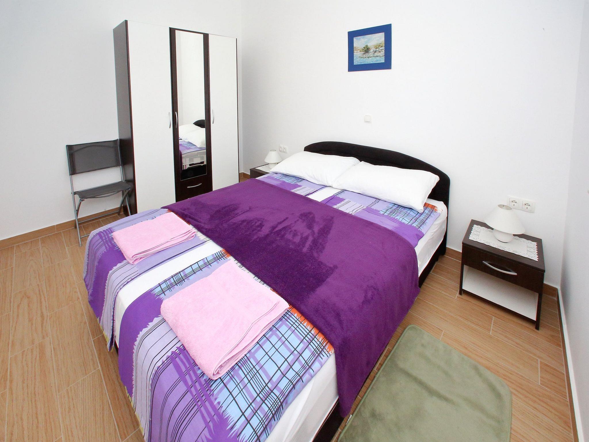 Ferienwohnung bietet Platz für 4 Gäste. Die Betten sind in Schlafzimmern, die es 1 gibt, und in Wohnzimmer, innerhalb einer Gesamtfläche von 44m2, angeordnet. Die Gäste haben eine eigene Terrasse zur Verfügung, auf der sie in warmen Sommernächten genießen können. Das Apartment bietet Meerblick. IM PREIS INBEGRIFFEN: Kurtaxe, Endreinigung, Klimatisierung, Parkplatz, Internet, Kinderbett, Bügeleisen, Föhn. VERBINDLICHE ZUSÄTZLICHE KOSTEN: Aufzahlung für Kurzaufenthalte (prozentualer Zuschlag pro Nächtigungsanzahl: 30% - 1, 20% - 2, 10% - 3). Die Verfügbarkeit zusätzlicher Dienstleistungen in Ihrem reservierten Termin und die Preise derselben (falls nicht aufgeführt) müssen im Voraus überprüft werden. Zusätzliche Dienstleistungen die in der Zahlungsaufforderung nicht aufgeführt sind werden direkt beim Vermieter bezahlt, angenommen der Gast nutzt auch diese.