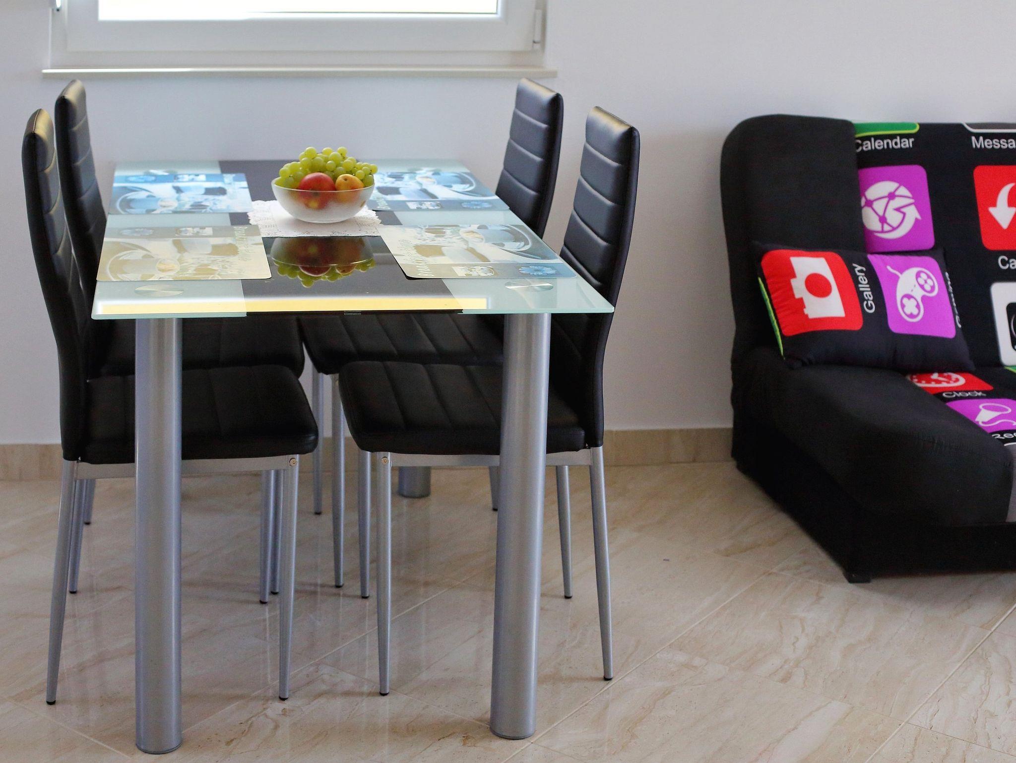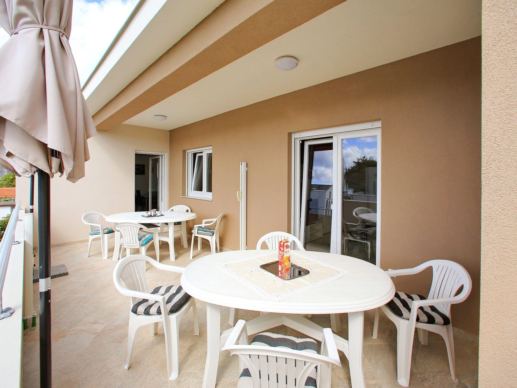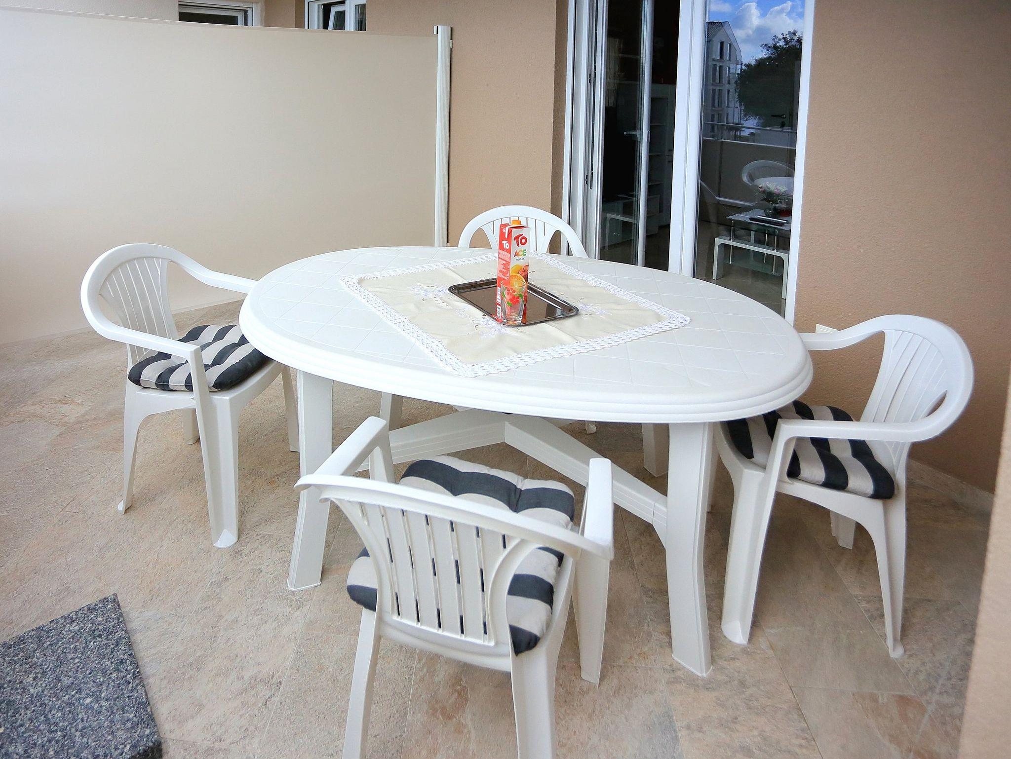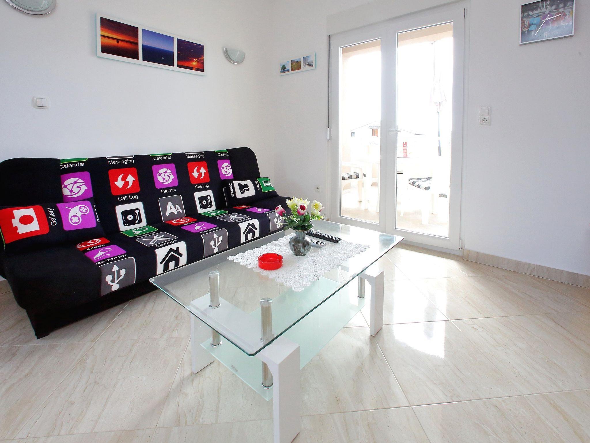 Ferienwohnung bietet Platz für 4 Gäste. Die Betten sind in Schlafzimmern, die es 1 gibt, und in Wohnzimmer, innerhalb einer Gesamtfläche von 44m2, angeordnet. Die Gäste haben eine eigene Terrasse zur Verfügung, auf der sie in warmen Sommernächten genießen können. Das Apartment bietet Meerblick. IM PREIS INBEGRIFFEN: Kurtaxe, Endreinigung, Klimatisierung, Parkplatz, Internet, Kinderbett, Bügeleisen, Föhn. VERBINDLICHE ZUSÄTZLICHE KOSTEN: Aufzahlung für Kurzaufenthalte (prozentualer Zuschlag pro Nächtigungsanzahl: 30% - 1, 20% - 2, 10% - 3). Die Verfügbarkeit zusätzlicher Dienstleistungen in Ihrem reservierten Termin und die Preise derselben (falls nicht aufgeführt) müssen im Voraus überprüft werden. Zusätzliche Dienstleistungen die in der Zahlungsaufforderung nicht aufgeführt sind werden direkt beim Vermieter bezahlt, angenommen der Gast nutzt auch diese.