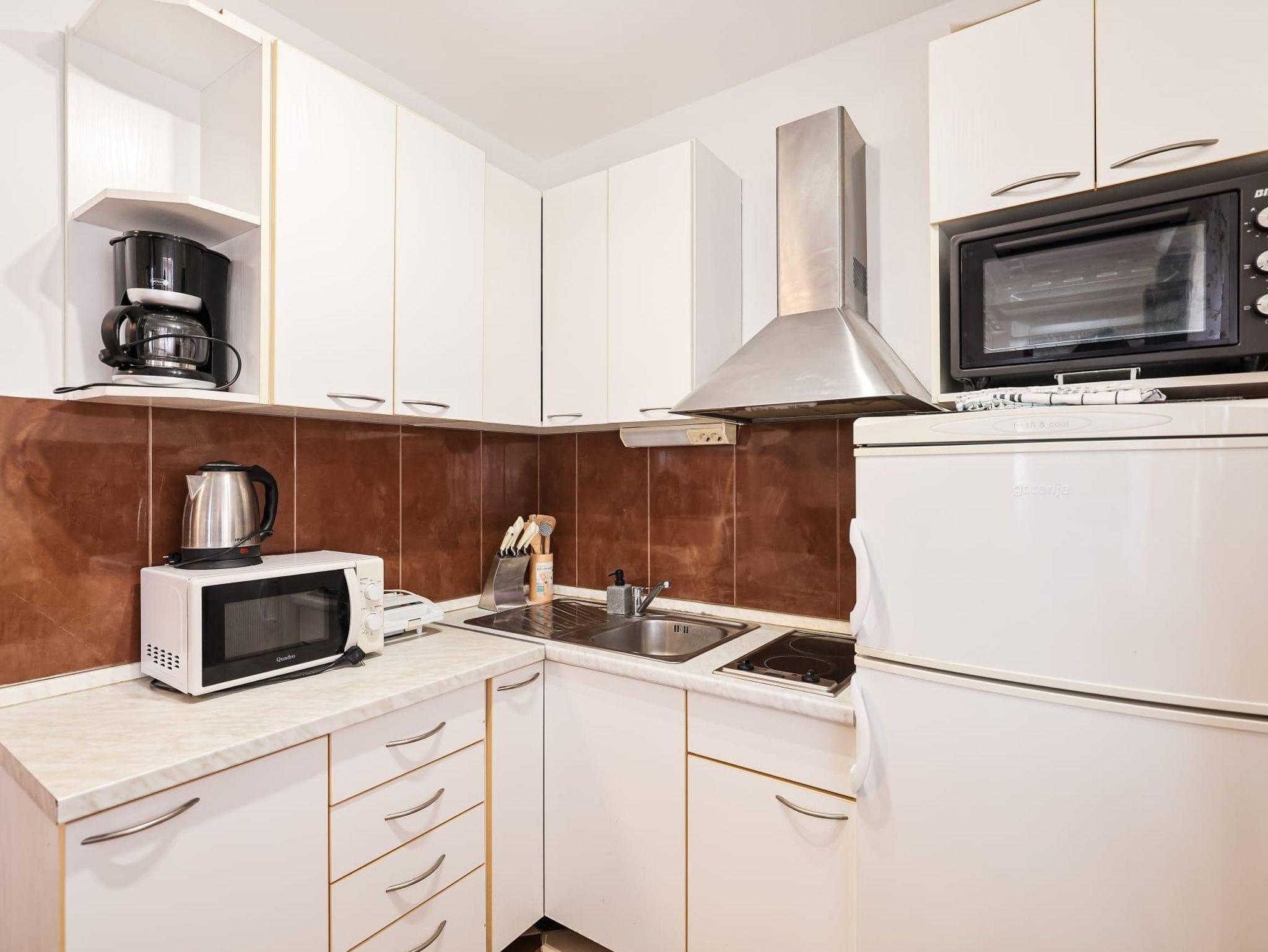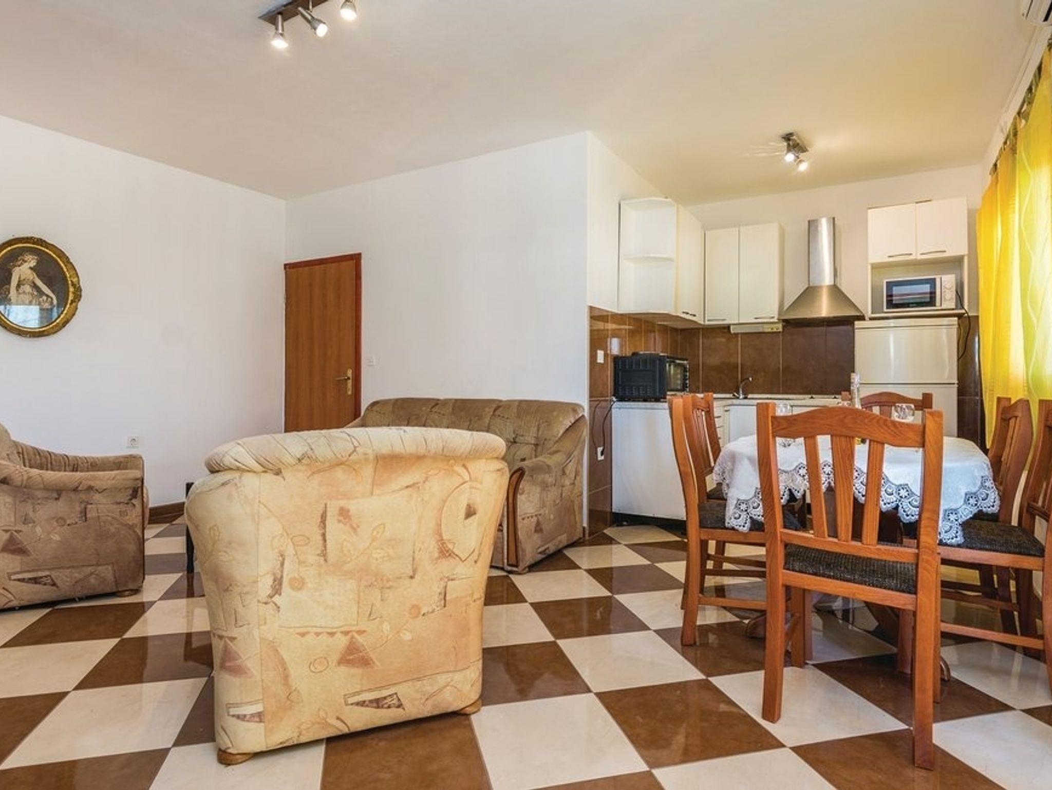 Ferienwohnung bietet Platz für 6 Gäste. Die Betten sind in Schlafzimmern, die es 2 gibt, und in Wohnzimmer, innerhalb einer Gesamtfläche von 47m2, angeordnet. Die Gäste haben eine eigene Terrasse zur Verfügung, auf der sie in warmen Sommernächten genießen können. Das Apartment bietet Meerblick. Es ist erlaubt, Speisen auf dem Gemeinschafts-Grill vorzubereiten. In der Unterkunftseinheit besteht die Möglichkeit des Mitbringens von Haustieren, und die Dienstleistung ist im Preis der Unterkunft enthalten. IM PREIS INBEGRIFFEN: Kurtaxe, Endreinigung, Klimatisierung, Parkplatz, Internet, Haustiere, Kinderbett. Die Verfügbarkeit zusätzlicher Dienstleistungen in Ihrem reservierten Termin und die Preise derselben (falls nicht aufgeführt) müssen im Voraus überprüft werden. Zusätzliche Dienstleistungen die in der Zahlungsaufforderung nicht aufgeführt sind werden direkt beim Vermieter bezahlt, angenommen der Gast nutzt auch diese.