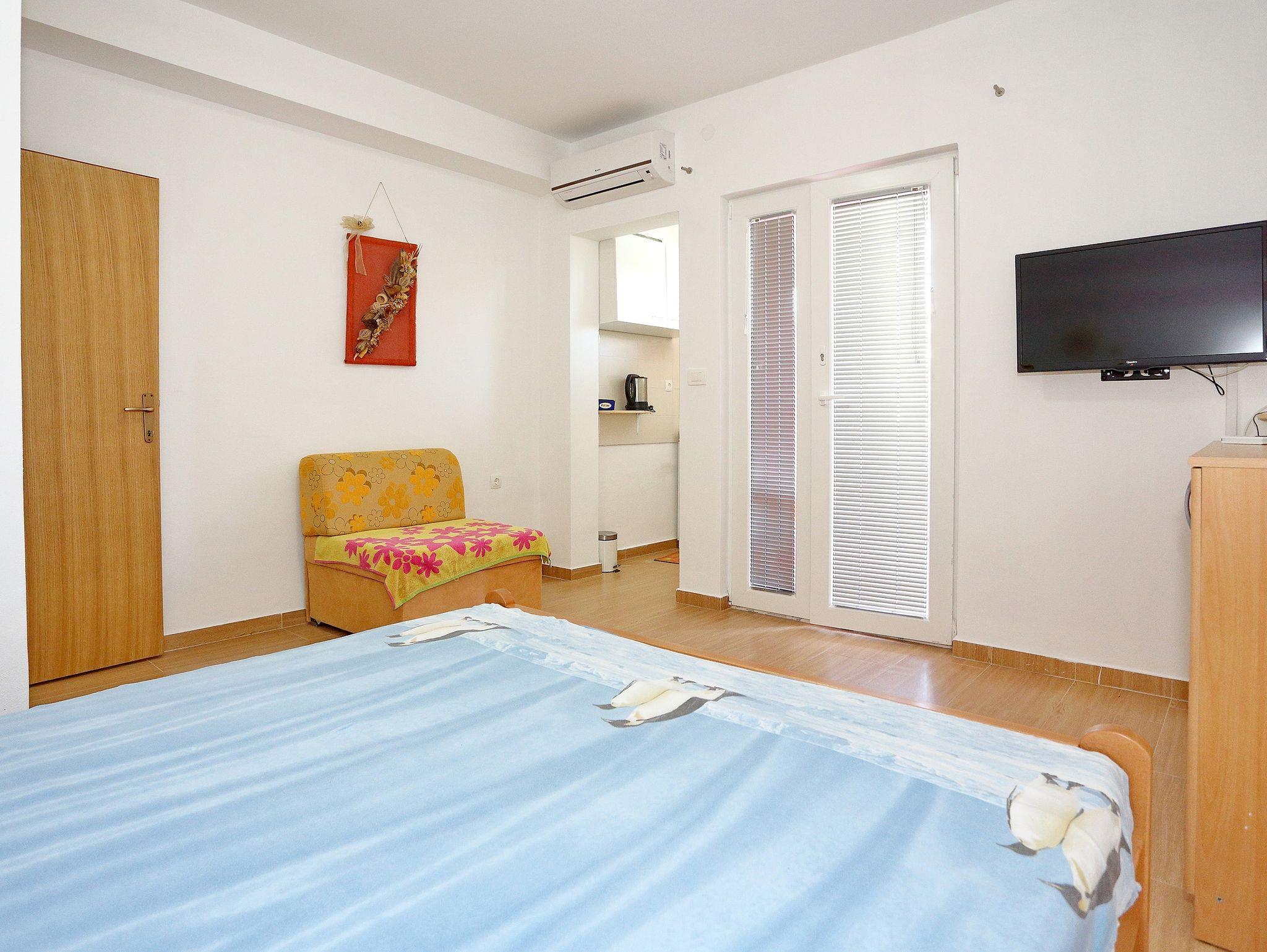 Studio bietet Platz für 2 Gäste. Die Betten sind in Schlafzimmern, die es 1 gibt, innerhalb einer Gesamtfläche von 20m2, angeordnet. Die Gäste haben eine eigene Terrasse zur Verfügung, auf der sie in warmen Sommernächten genießen können. Es ist erlaubt, Speisen auf dem Gemeinschafts-Grill vorzubereiten. IM PREIS INBEGRIFFEN: Kurtaxe, Endreinigung, Klimatisierung, Parkplatz, Internet, Kinderbett, Bügeleisen, Föhn. Die Verfügbarkeit zusätzlicher Dienstleistungen in Ihrem reservierten Termin und die Preise derselben (falls nicht aufgeführt) müssen im Voraus überprüft werden. Zusätzliche Dienstleistungen die in der Zahlungsaufforderung nicht aufgeführt sind werden direkt beim Vermieter bezahlt, angenommen der Gast nutzt auch diese. Ermäßigung auf den Grundpreis: Gratistag 14=13 (bei einem Aufenthalt von 14 Tagen oder mehr erhalten Sie einen Gratistag für den Aufenthalt bis 31.12.26).