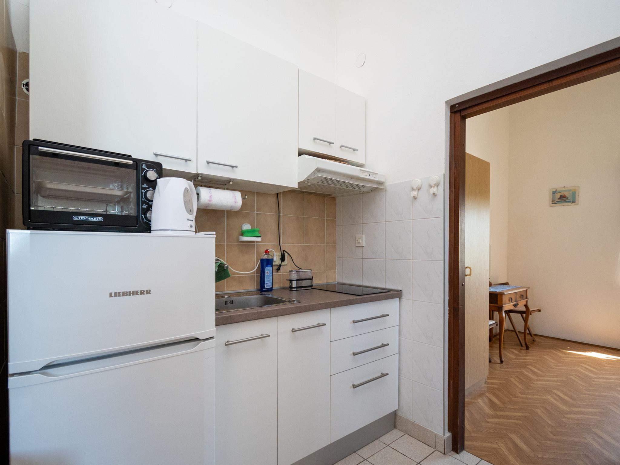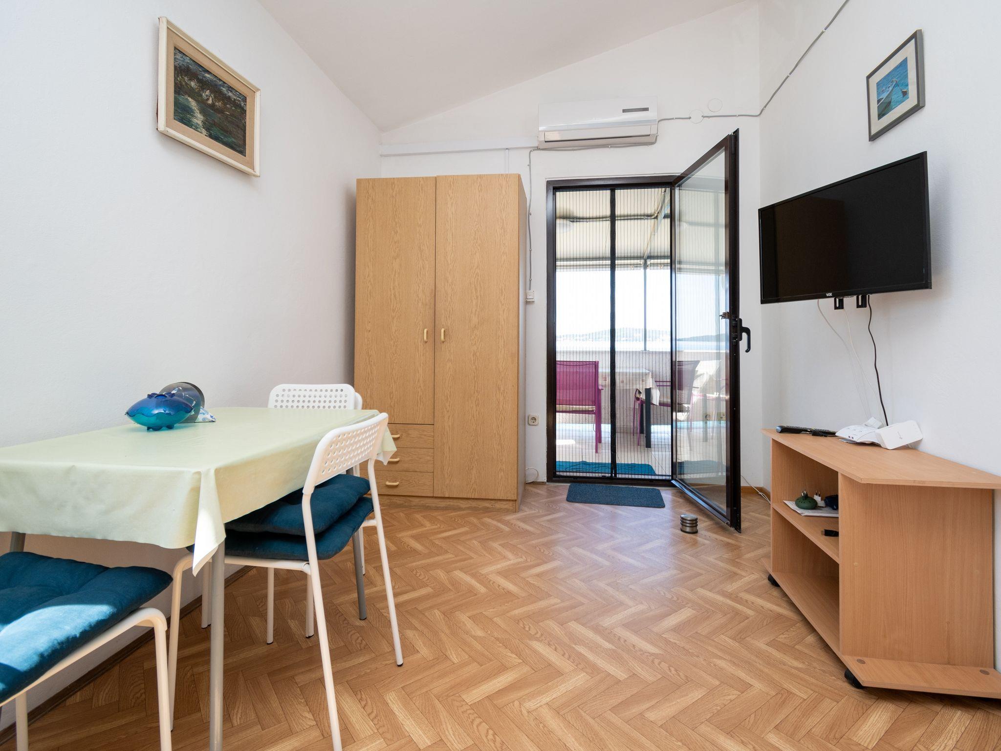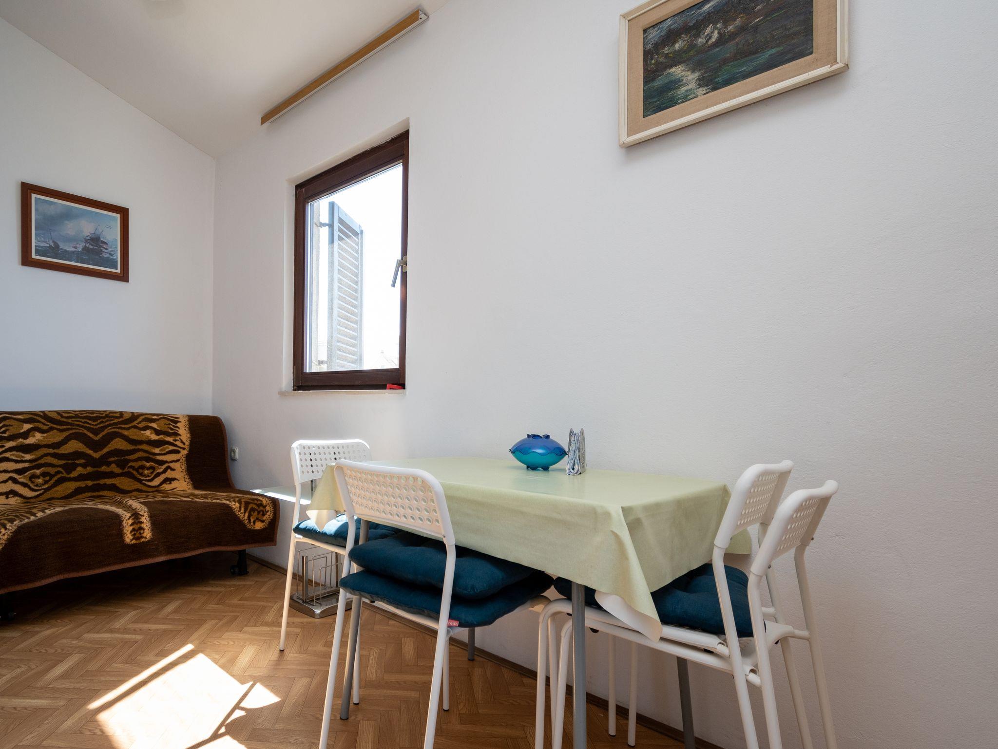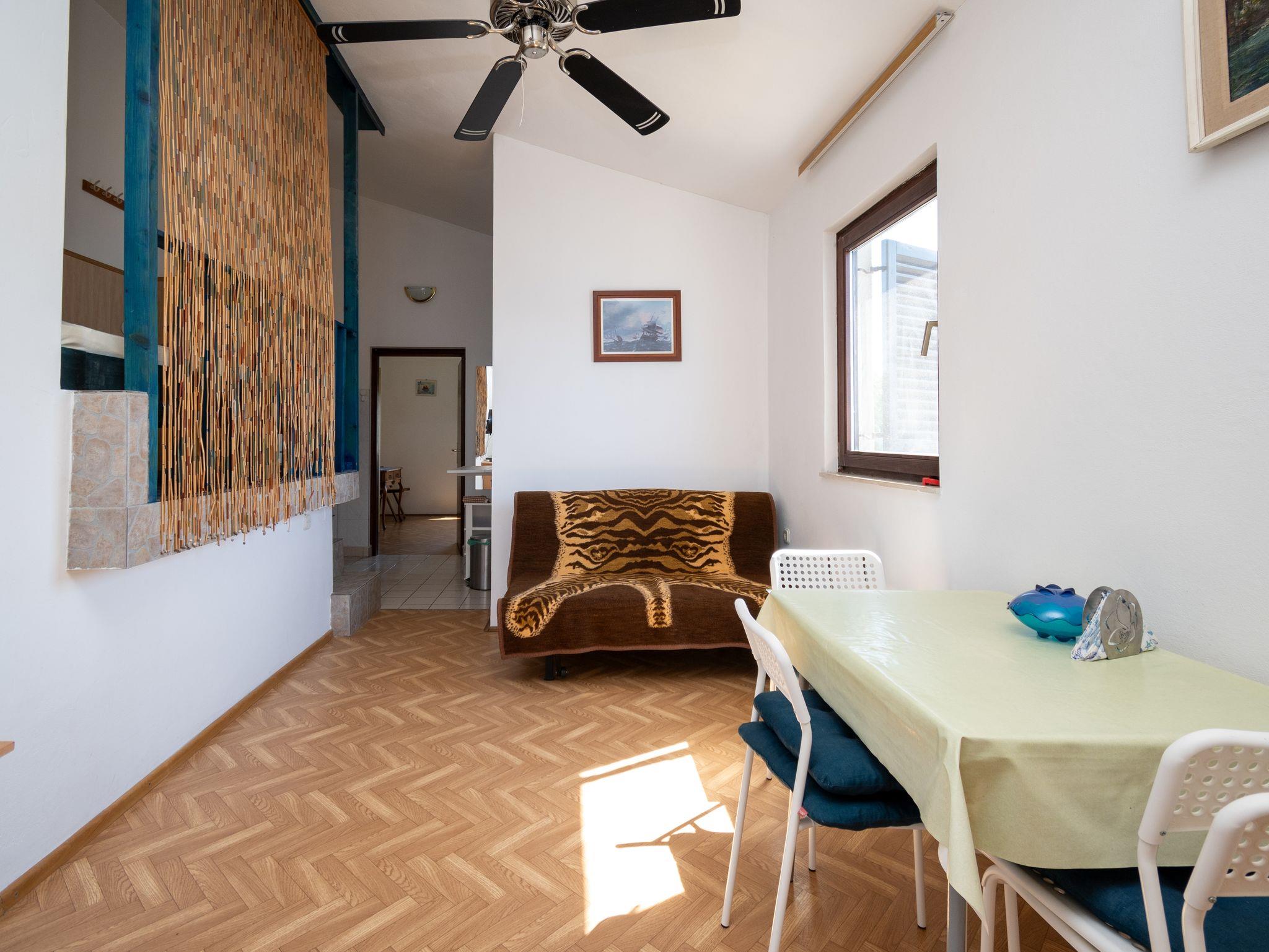 Ferienwohnung bietet Platz für 4 Gäste. Die Betten sind in Schlafzimmern, die es 1 gibt, und in Wohnzimmer, innerhalb einer Gesamtfläche von 41m2, angeordnet. Die Gäste haben eine eigene Terrasse zur Verfügung, auf der sie in warmen Sommernächten genießen können. Das Apartment bietet Meerblick. Es ist erlaubt, Speisen auf dem Gemeinschafts-Grill vorzubereiten. IM PREIS INBEGRIFFEN: Kurtaxe, Endreinigung, Parkplatz, Internet, Kinderbett, Bügeleisen, Bügelbrett, Föhn. UNVERBINDLICHE ZUSÄTZLICHE KOSTEN: Klimatisierung (7,00 € pro Nacht), Wäschewaschen (7,00 € Waschen), Bootsanlegeplatz (8,00 € pro Nacht). Die Verfügbarkeit zusätzlicher Dienstleistungen in Ihrem reservierten Termin und die Preise derselben (falls nicht aufgeführt) müssen im Voraus überprüft werden. Zusätzliche Dienstleistungen die in der Zahlungsaufforderung nicht aufgeführt sind werden direkt beim Vermieter bezahlt, angenommen der Gast nutzt auch diese. Ermäßigung auf den Grundpreis: Gratistag 28=25 (bei einem Aufenthalt von 28 oder mehr Tagen erhalten Sie 3 kostenlose Tage für den Aufenthalt bis 31.12.26).