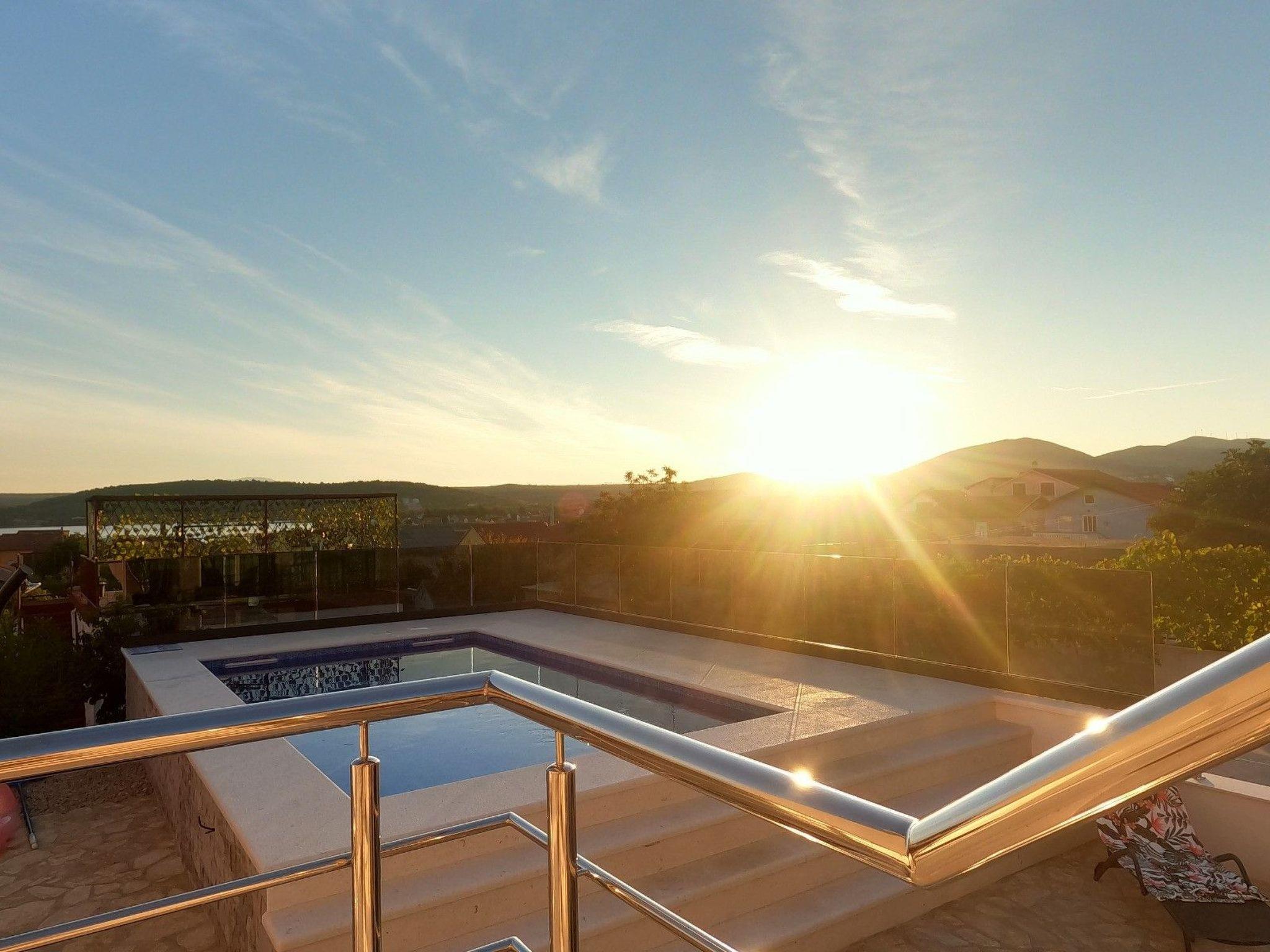 Die Villa Lotti ist ein wunderschönes Ferienhaus mit eigenem Pool und großer Dachterrasse. Das Haus besteht aus 5 separaten Apartments. Jedes ist vollausgestattet und verfügt über eigene Küche, Bad, Waschmaschine, Geschirrspüler, Klimaanlage, Doppelbett und Schlafcouch. Das Haus eignet sich perfekt für den Urlaub von mehreren Familien und Gruppen. 150 Meter vom Wasser entfernt, können Sie durch die Hanglage den wunderschönen Meerblick von der großen Dachterrasse genießen. Der großzügige Außenbereich ist mit gemütlichen Loungemöbeln ausgestattet und bietet viel Platz um die Sonne zu genießen, sich zu Erholen oder für schöne Grillabende. Im Pool können Sie sich abkühlen und die Seele baumeln lassen. Um den Urlaub besonders zu gestalten, vermieten wir im Ort Jetskis, Motorboote und eine wunderschöne Motoryacht. So können Sie Kroatien bei Ausflügen auch vom Wasser aus erleben. Vor Ort haben Sie einen Ansprechpartner, der die Geheimtipps in der Umgebung kennt und bei Wünschen und Fragen für Sie da ist. Der Krka Nationalpark ist nur 10 Minuten mit dem Auto entfernt. Das Stadtzentrum von Sibenik erreichen Sie ebenfalls gut, innerhalb von 5-10 Minuten. Falls Sie mit dem Flugzeug anreisen oder mal nichts selbst fahren möchten, können wir Ihnen gern unseren Fahrservice anbieten. Freuen Sie sich auf einen unvergesslichen Urlaub in Kroatien.