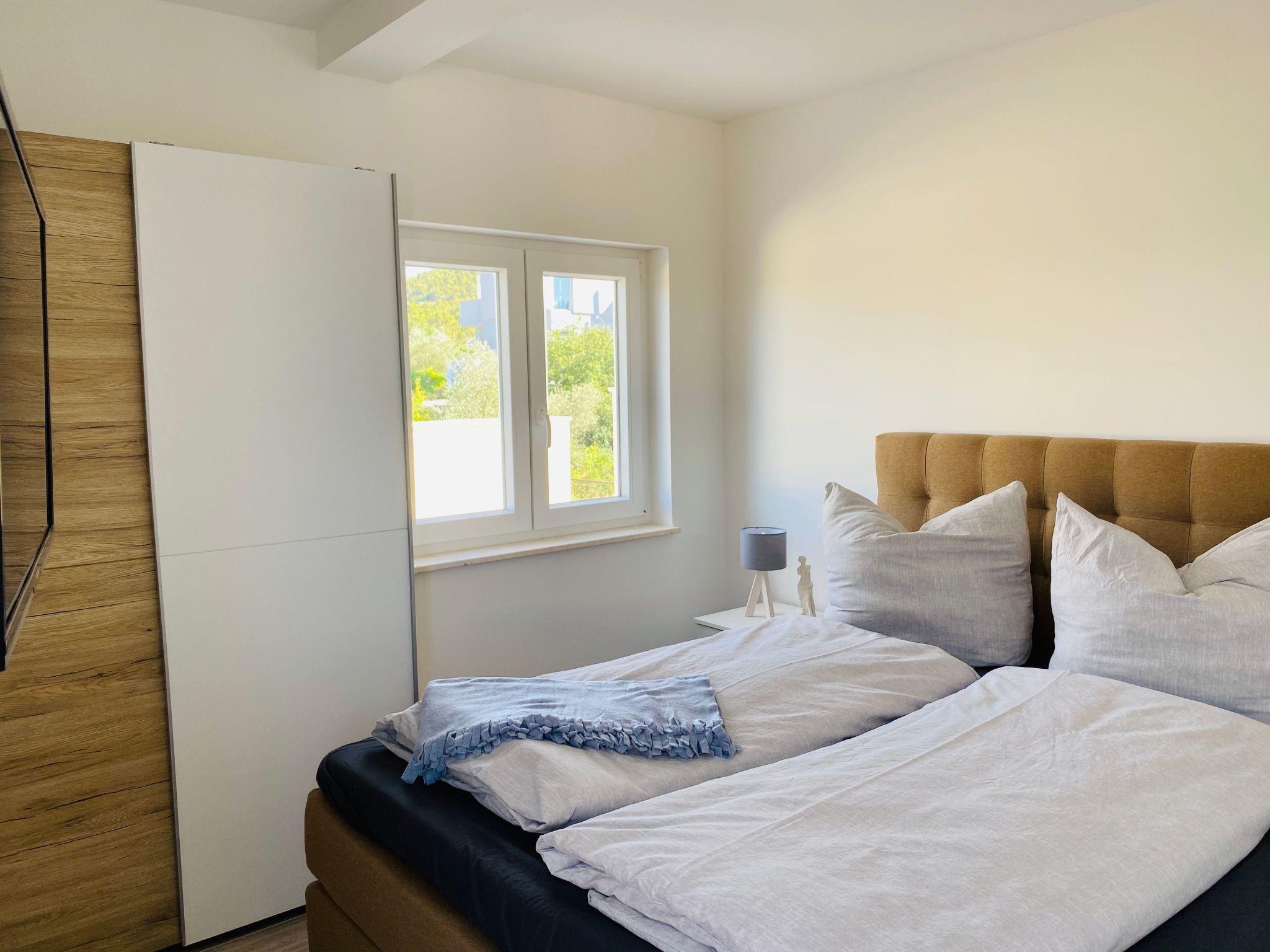 Die Innenräume präsentieren sich hell und freundlich, jedes Appartement mit eigenem Wohn- und Essbereich ausgestattet, was selbstverständliches Wohlgefühl verspricht. Insgesamt verteilen sich 6 abdunkelbare Schlafzimmer und 3 Bäder mit begehbarer Dusche und Toilette auf zwei Etagen, wobei eine Fußbodenheizung teilweise für zusätzlichen Komfort sorgt. Für Selbstversorger bietet die Küchenausstattung mit Cerankochfeld, Filter-Kaffeemaschine, Spülmaschine und Wasserkocher genug Möglichkeit, um kulinarisch kreativ zu werden. Die Annehmlichkeiten wie Klimaanlage in allen Wohn- und Schlafräumen, Waschmaschine und WLAN runden das Angebot ab.