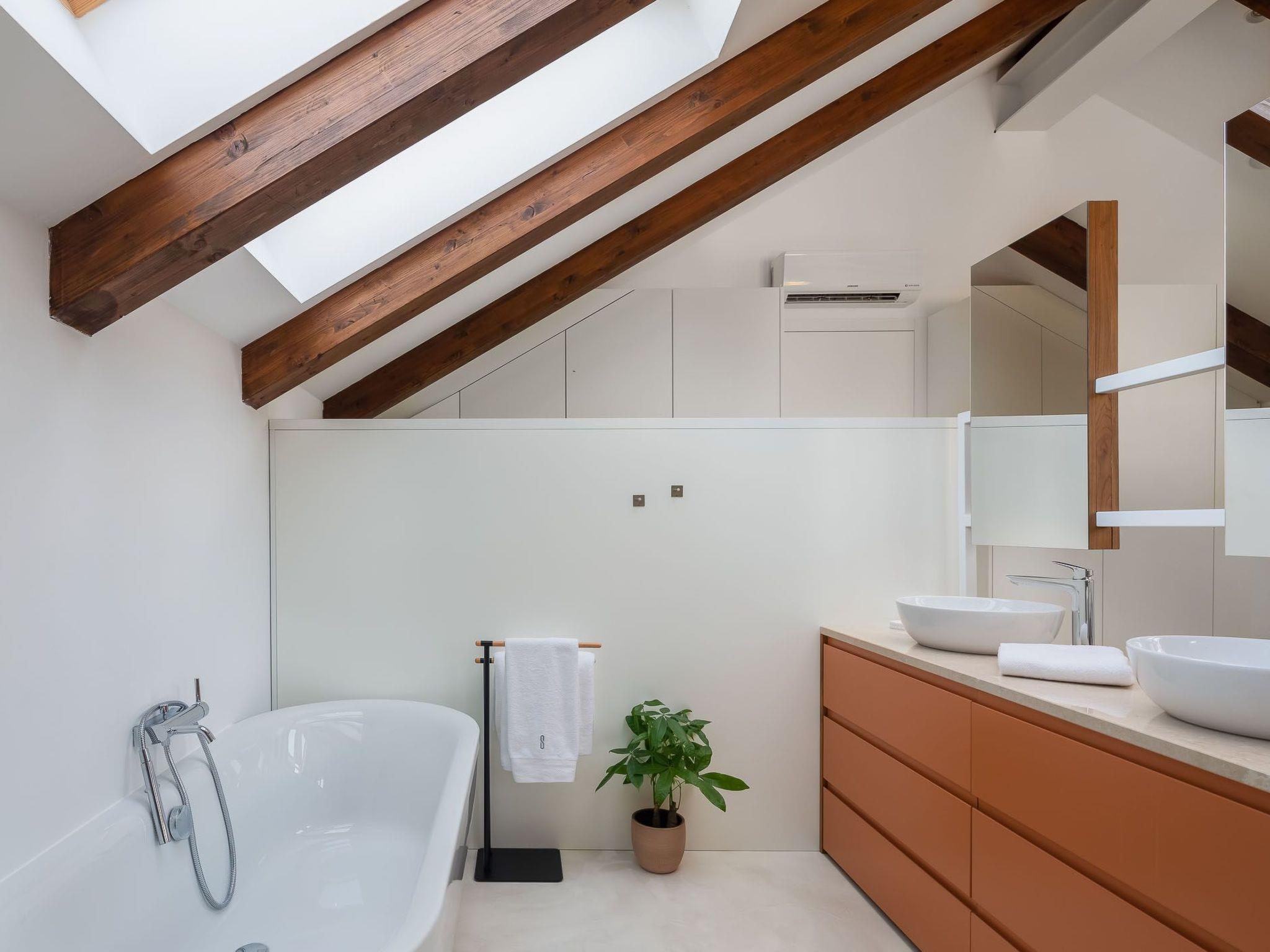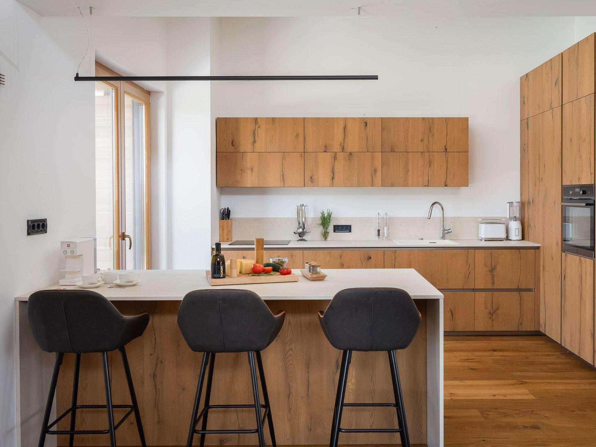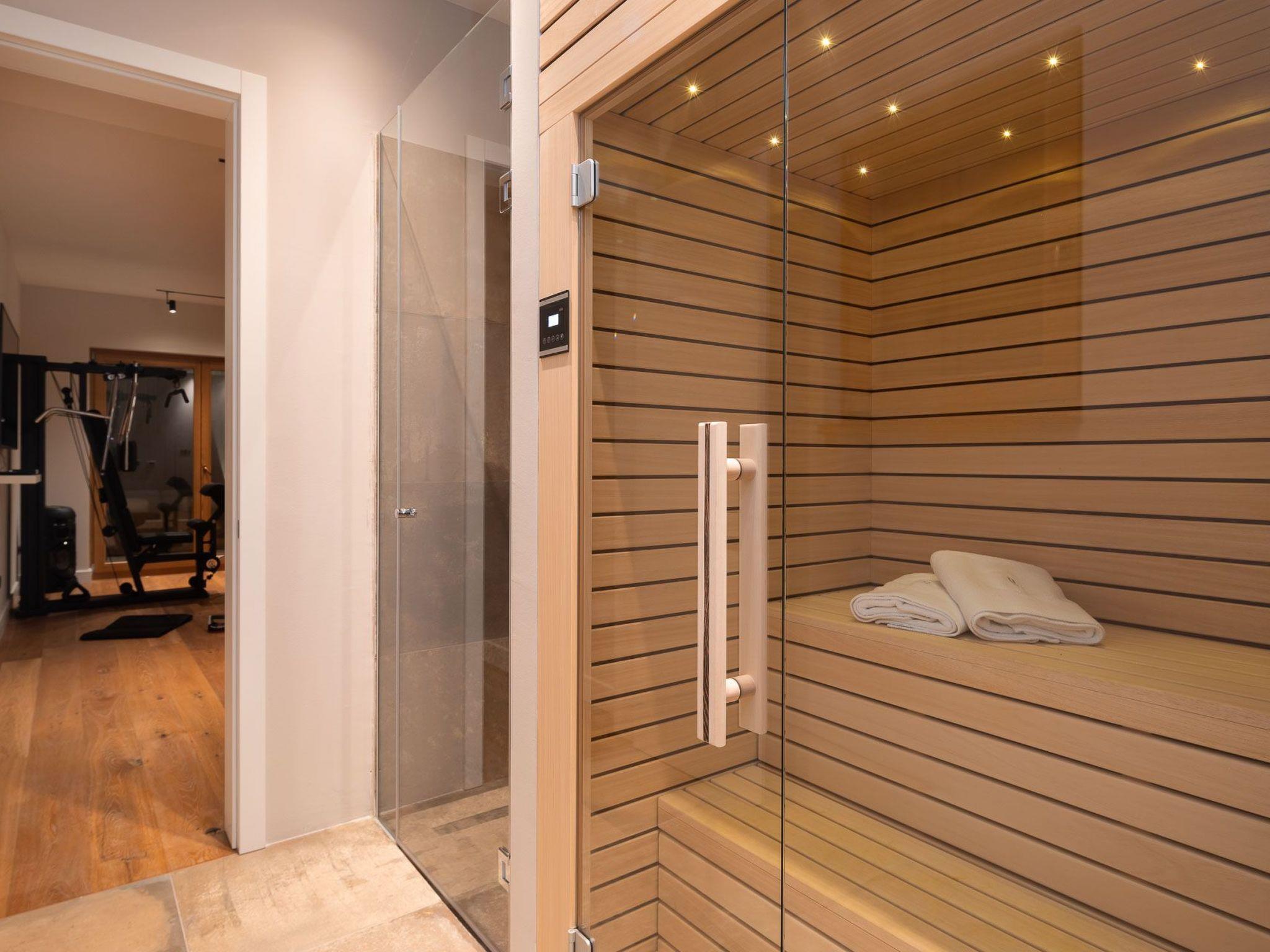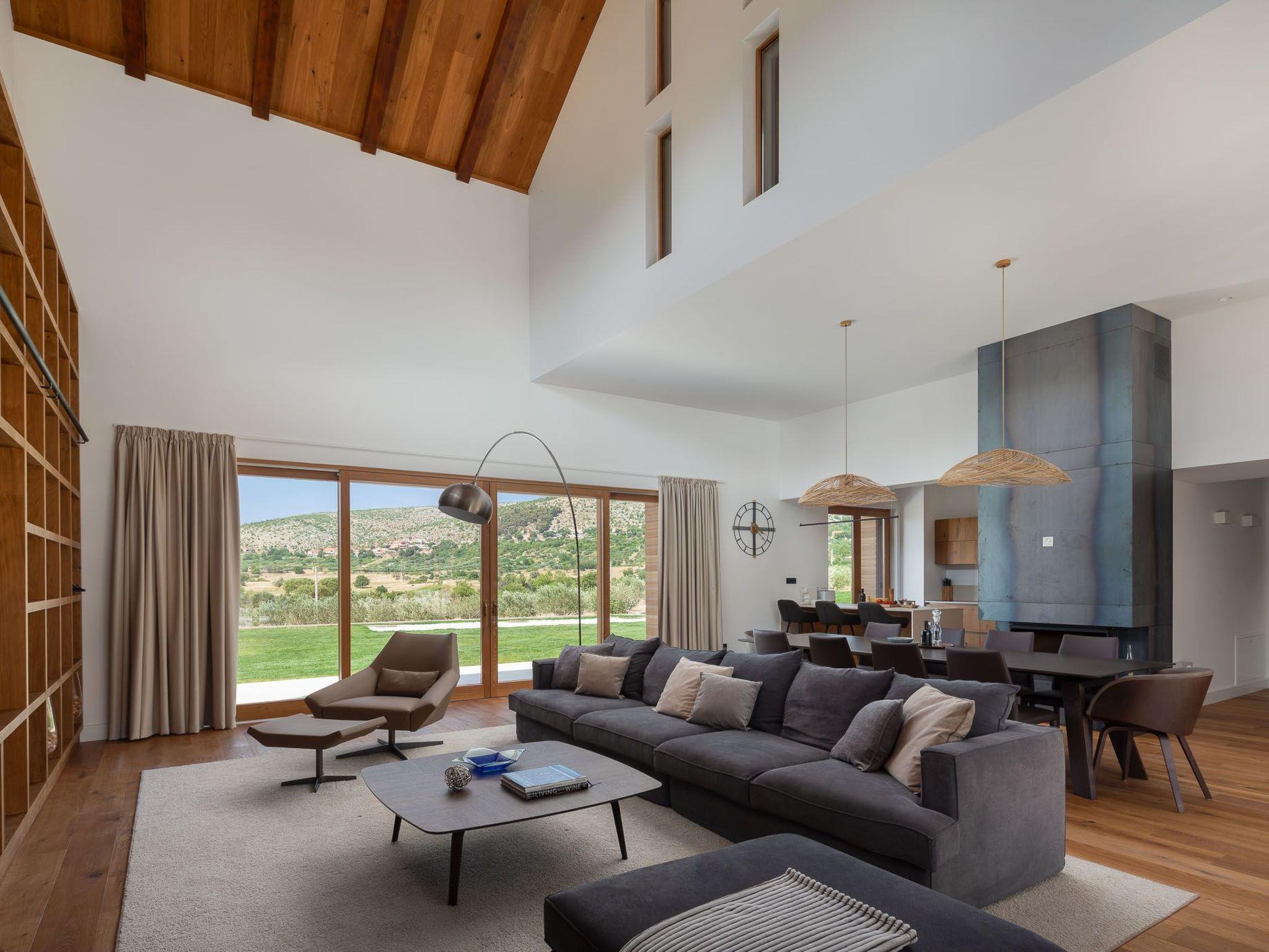 Im Inneren bietet das Haus eine harmonische Mischung aus Komfort und Bequemlichkeit mit fünf Schlafzimmern und einer gleichen Anzahl von Badezimmern, die jedem Gast Privatsphäre und Komfort bieten. Die Fußbodenheizung im gesamten Haus und die Klimaanlage, die zu jeder Jahreszeit für ein angenehmes Ambiente sorgt, garantieren einen hohen Komfort. Die Villa ist mit einer Waschmaschine und einem Wäschetrockner zur alleinigen Nutzung sowie einer Kaffeemaschine und einem Geschirrspüler ausgestattet, um Ihren Aufenthalt so angenehm wie möglich zu gestalten. Der Kamin verleiht dem Raum eine gemütliche Wärme und lädt Sie dazu ein, unvergessliche Abende zu verbringen.