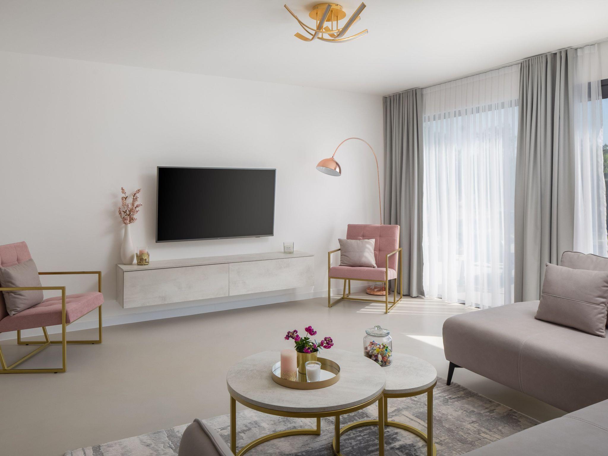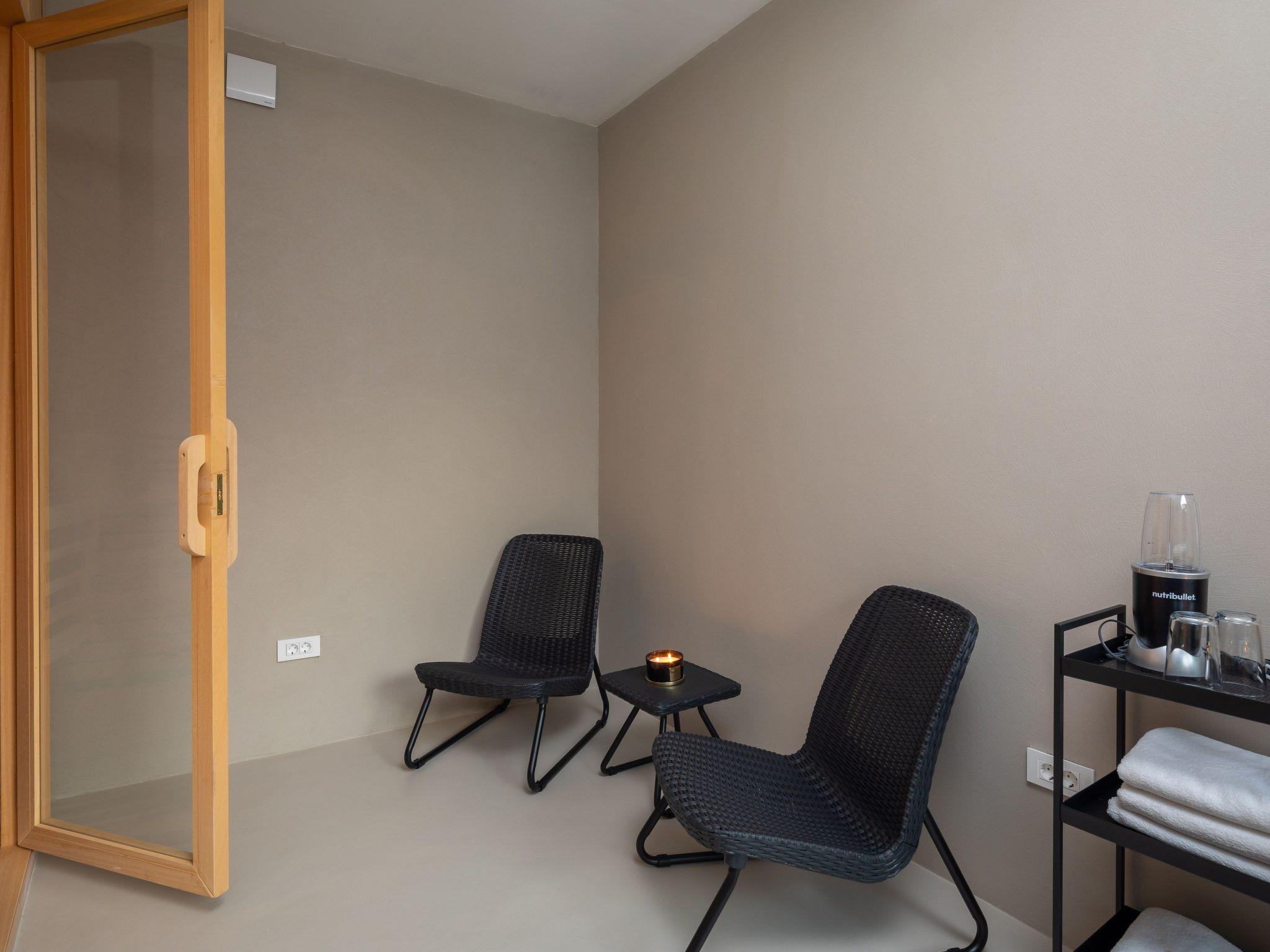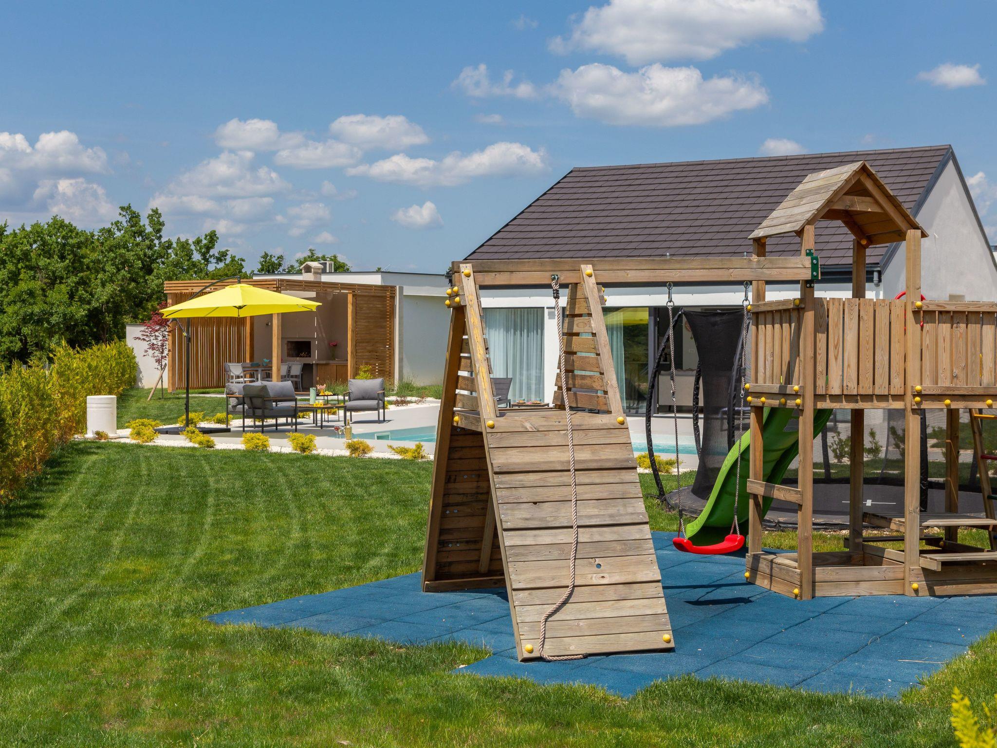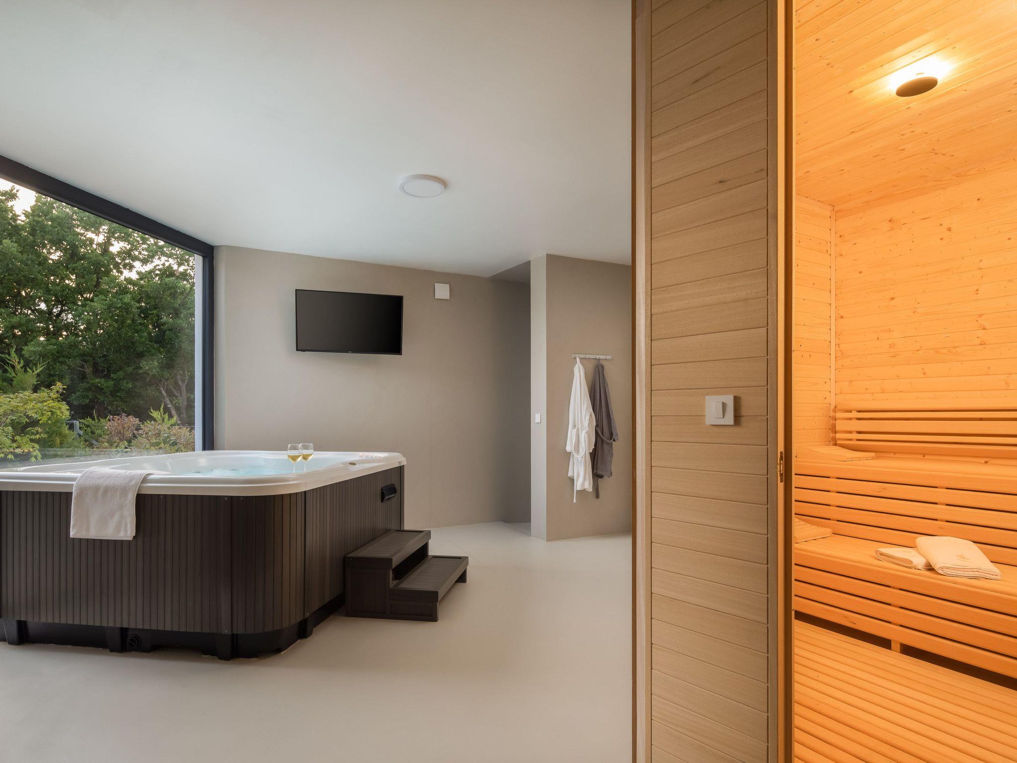 Für etwas Entspannung sorgen die 38m2 großen beheizten Pools vor den Villen und dazwischen ein kleines Haus mit Sauna und Ruheraum. Dazwischen befindet sich auch ein Fitnessraum mit verschiedenen Fitnessgeräten. Während Sie sich entspannen, trainieren oder vielleicht eine Partie Tischfußball spielen, können die Kleinen auf dem Kinderspielplatz spielen und auf dem Trampolin springen.