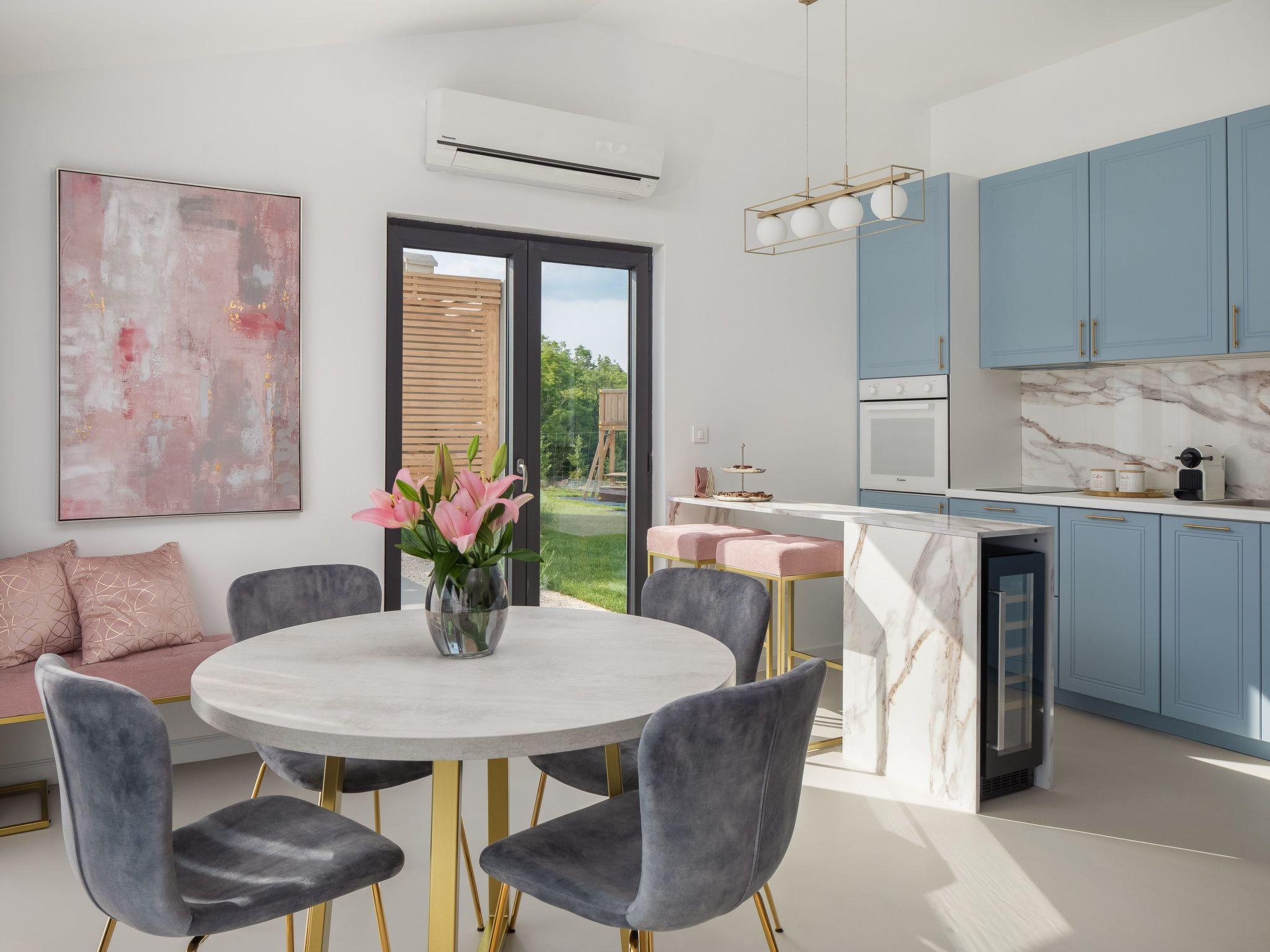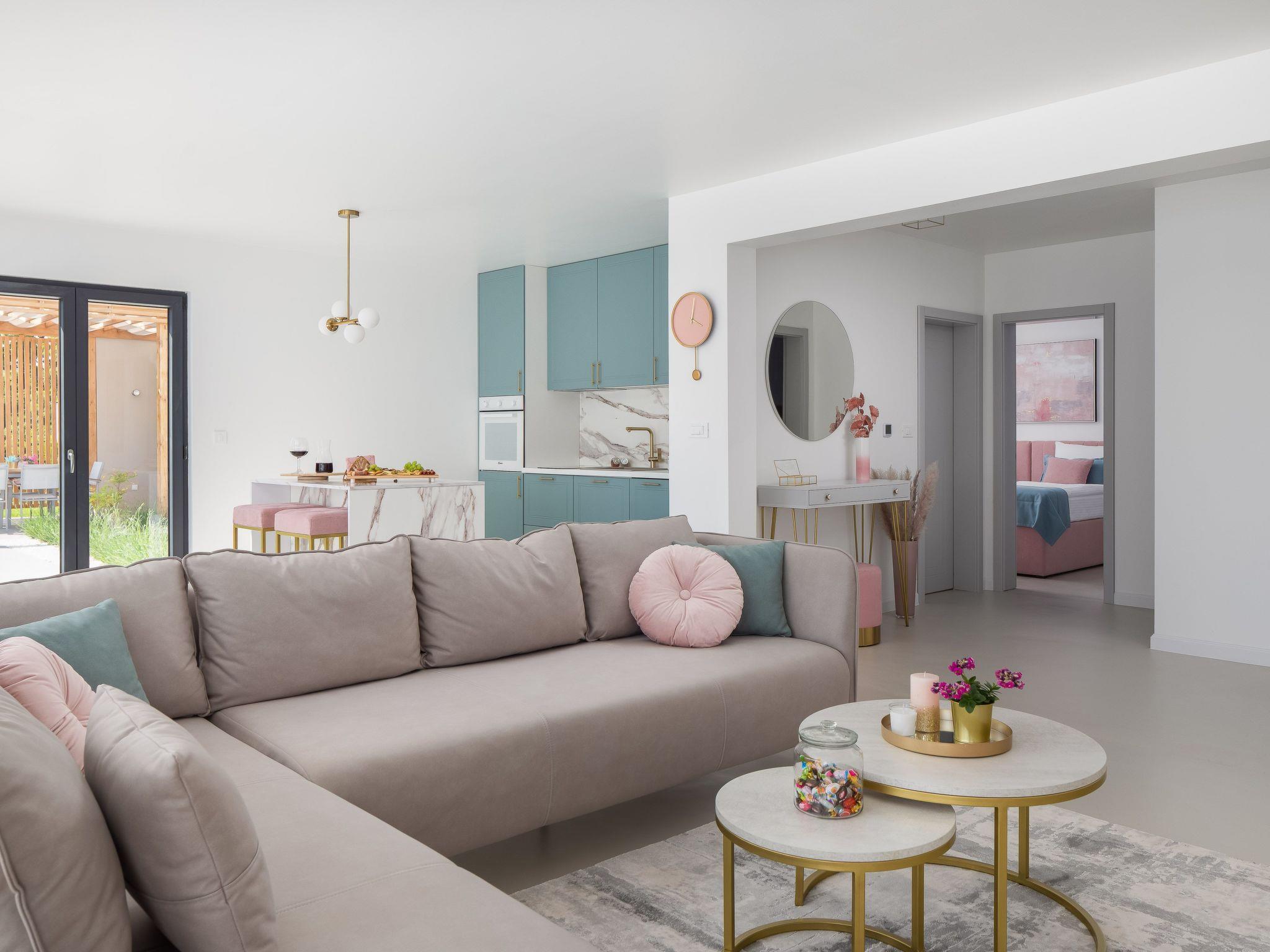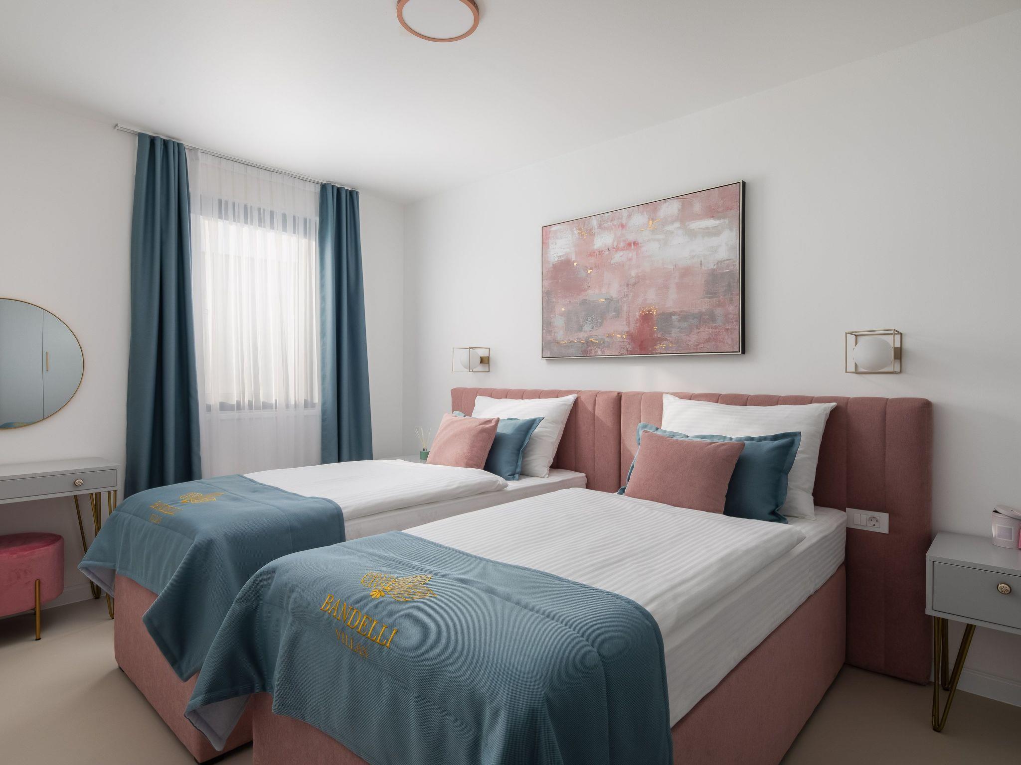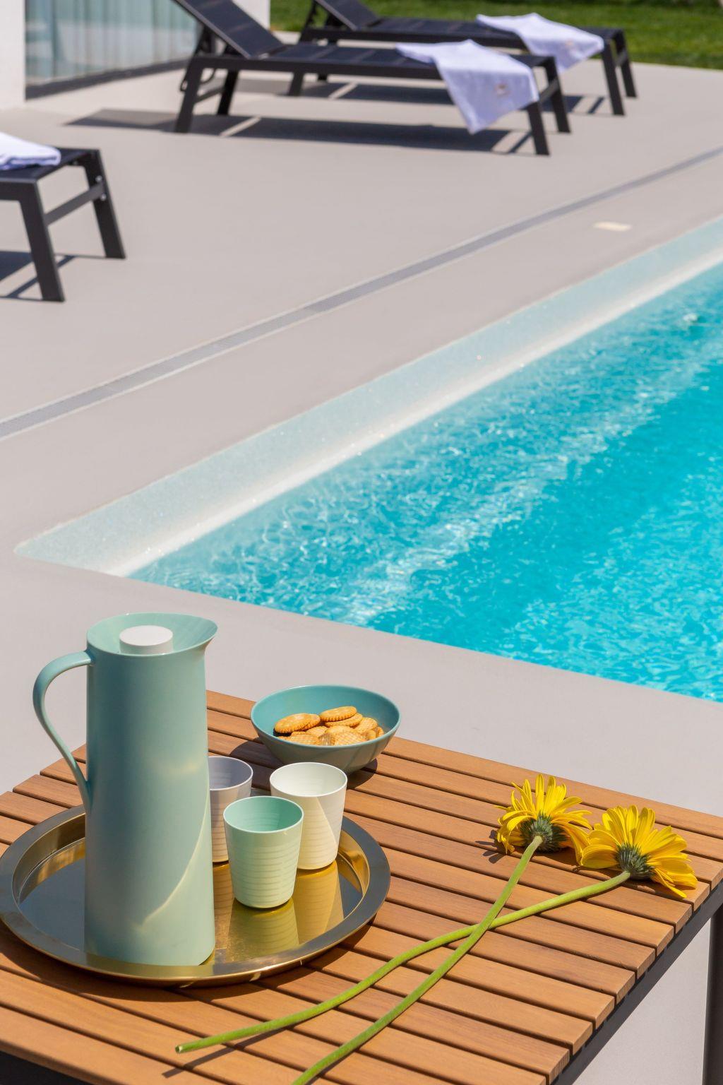 Die maximale Kapazität der Villa ist 8 Gäste, 4 Gäste pro Villa. Es gibt insgesamt 4 geräumige Schlafzimmer mit Doppel- und Einzelbetten, und in jedem steht ein Babybettchen. In der romantischen Einrichtung finden Sie ein charmantes Wohnzimmer mit Arbeitsbereich und Filmsammlung, das Ihnen das Beste aus beiden Welten bietet. Jede Villa verfügt über eine Innen- und Außenküche, ebenso wie über einen Innen- und einen Außenspeisebereich. Die Außenküche und der Essbereich befinden sich unter einer schönen Holzlaube am Pool.