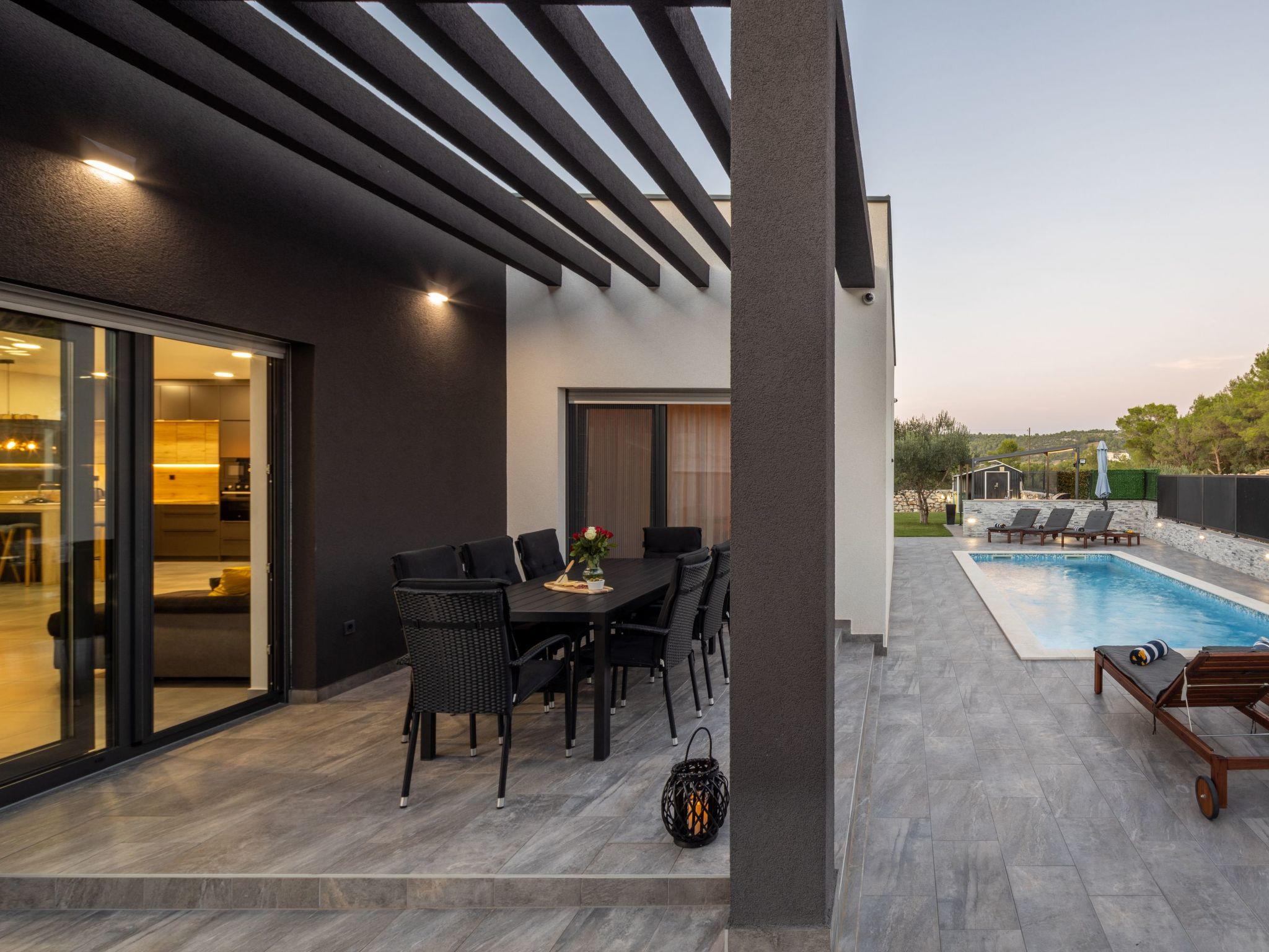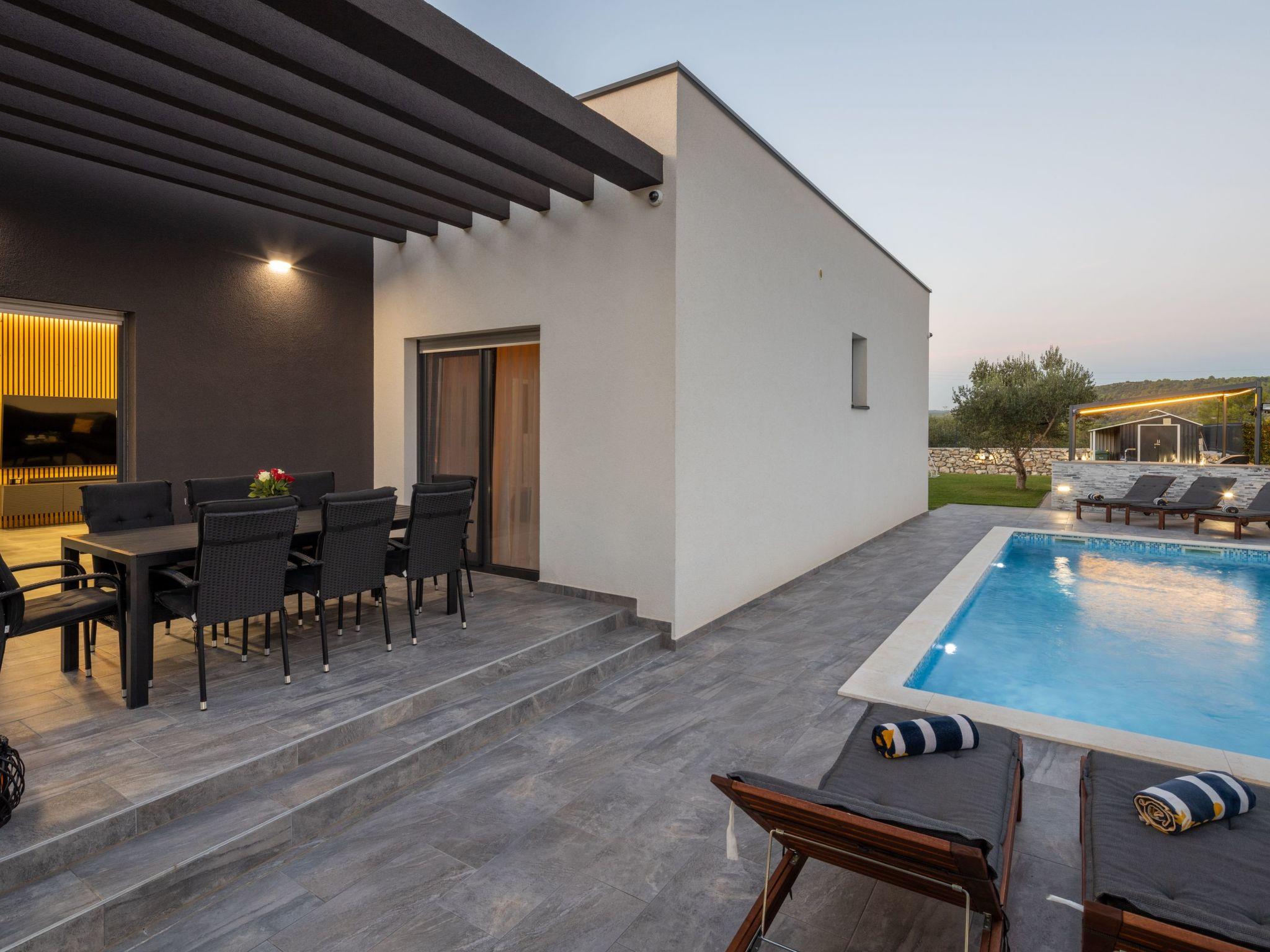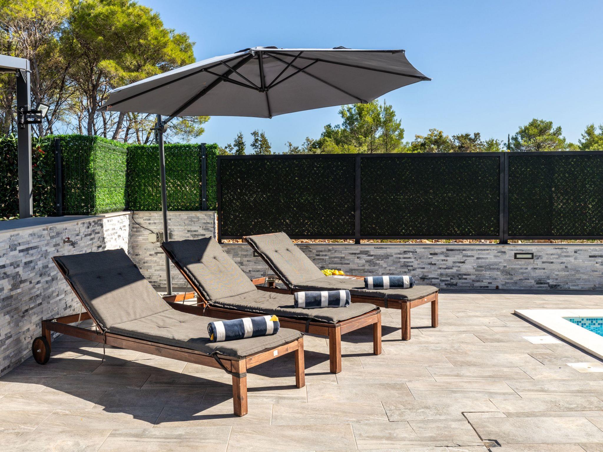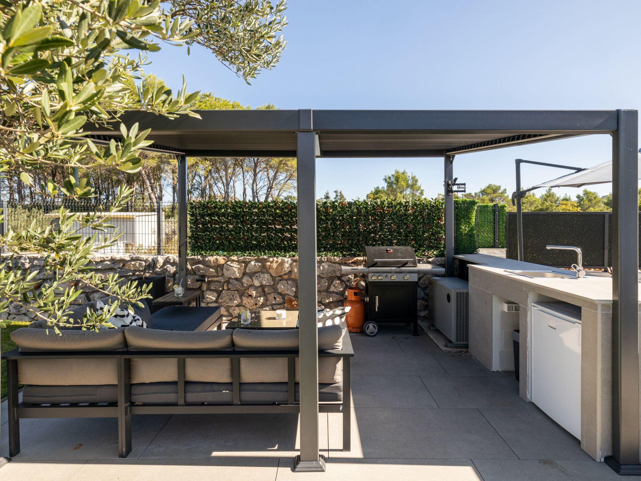 Der Außenbereich dieser Villa ist ein echtes Highlight und bietet eine exklusive Oase für Entspannung und Spaß. Der private Pool liegt inmitten eines wunderschön angelegten Gartens und lädt zum gemütlichen Schwimmen oder Sonnenbaden ein. Für ein einzigartiges kulinarisches Erlebnis steht Ihnen eine Außenküche mit Grill zur Verfügung, in der Sie köstliche Mahlzeiten zubereiten und auf der Terrasse genießen können.