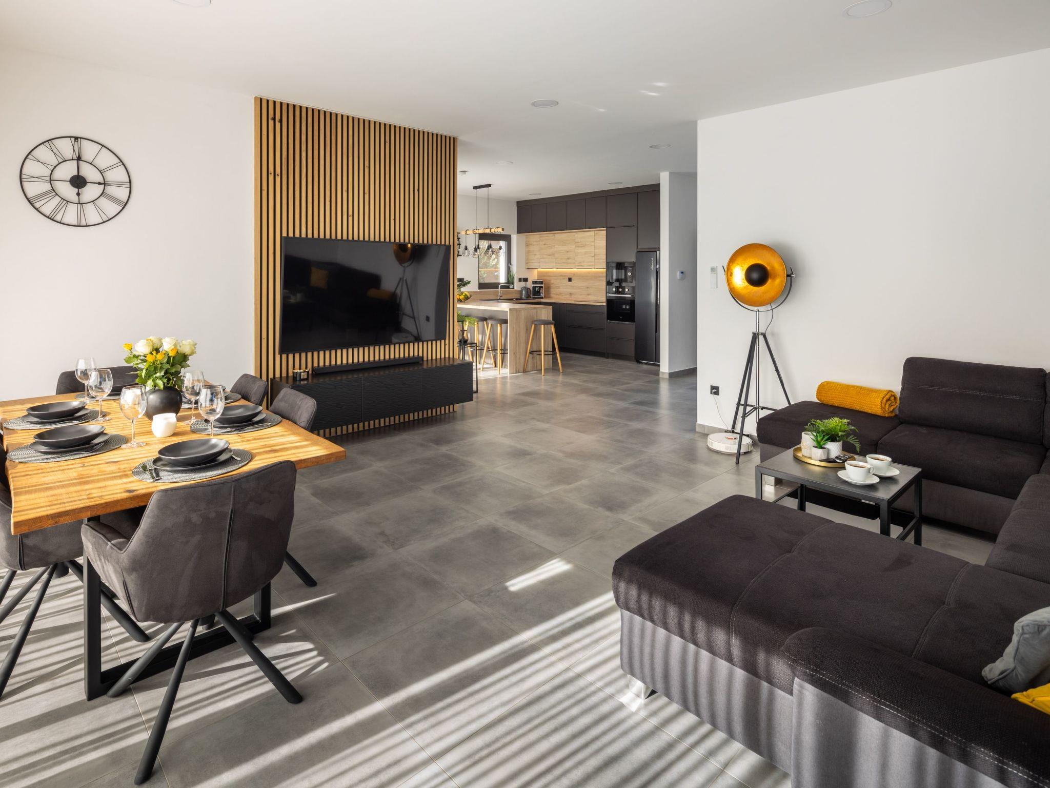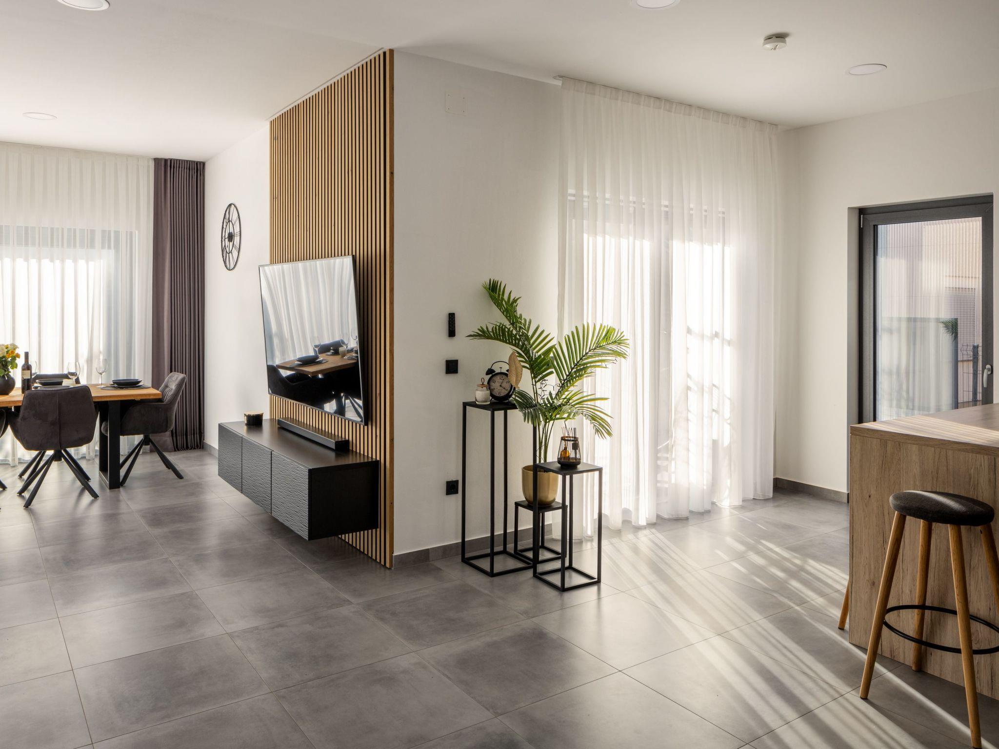 Im Inneren ist die Villa komplett ausgestattet, um Ihren Aufenthalt so angenehm wie möglich zu gestalten. Sie verfügt über drei gemütliche Schlafzimmer und zwei Badezimmer mit Duschen, so dass alle Gäste ausreichend Platz und Privatsphäre haben. Um Ihren Komfort zu erhöhen, ist die gesamte Villa mit Klimaanlage und Fußbodenheizung ausgestattet, so dass sie zu jeder Jahreszeit perfekt ist. Für diejenigen, die lieber selbst kochen, ist die Villa mit einem 2-Platten-Herd, einer Kaffeemaschine und einem Geschirrspüler ausgestattet. Außerdem steht Ihnen eine Waschmaschine zur alleinigen Nutzung zur Verfügung, so dass Sie Ihren Urlaub so problemlos wie möglich gestalten können.