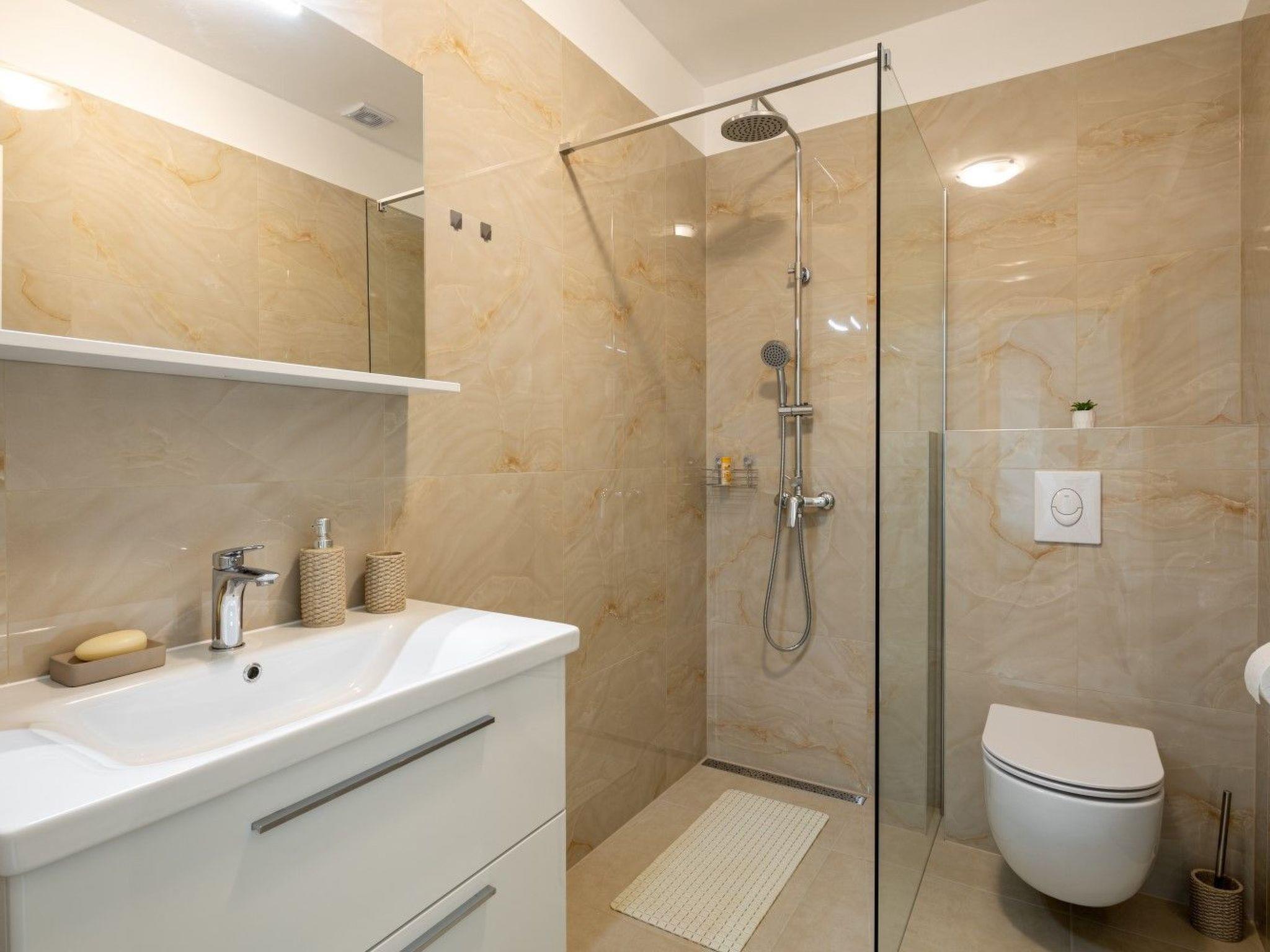 Die Villa Mara in Šibenik ist für maximal 6 Personen geeignet. Die Villa verfügt über drei Schlafzimmer mit Doppelbetten, jedes mit eigenem Bad, und ein Kinderbett kann auf Anfrage zur Verfügung gestellt werden.