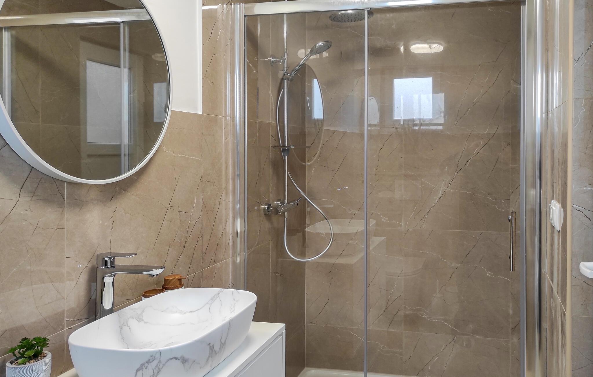 Badezimmer 5m2 (nr. 2) - WC. Warmes und kaltes Wasser. Dusche