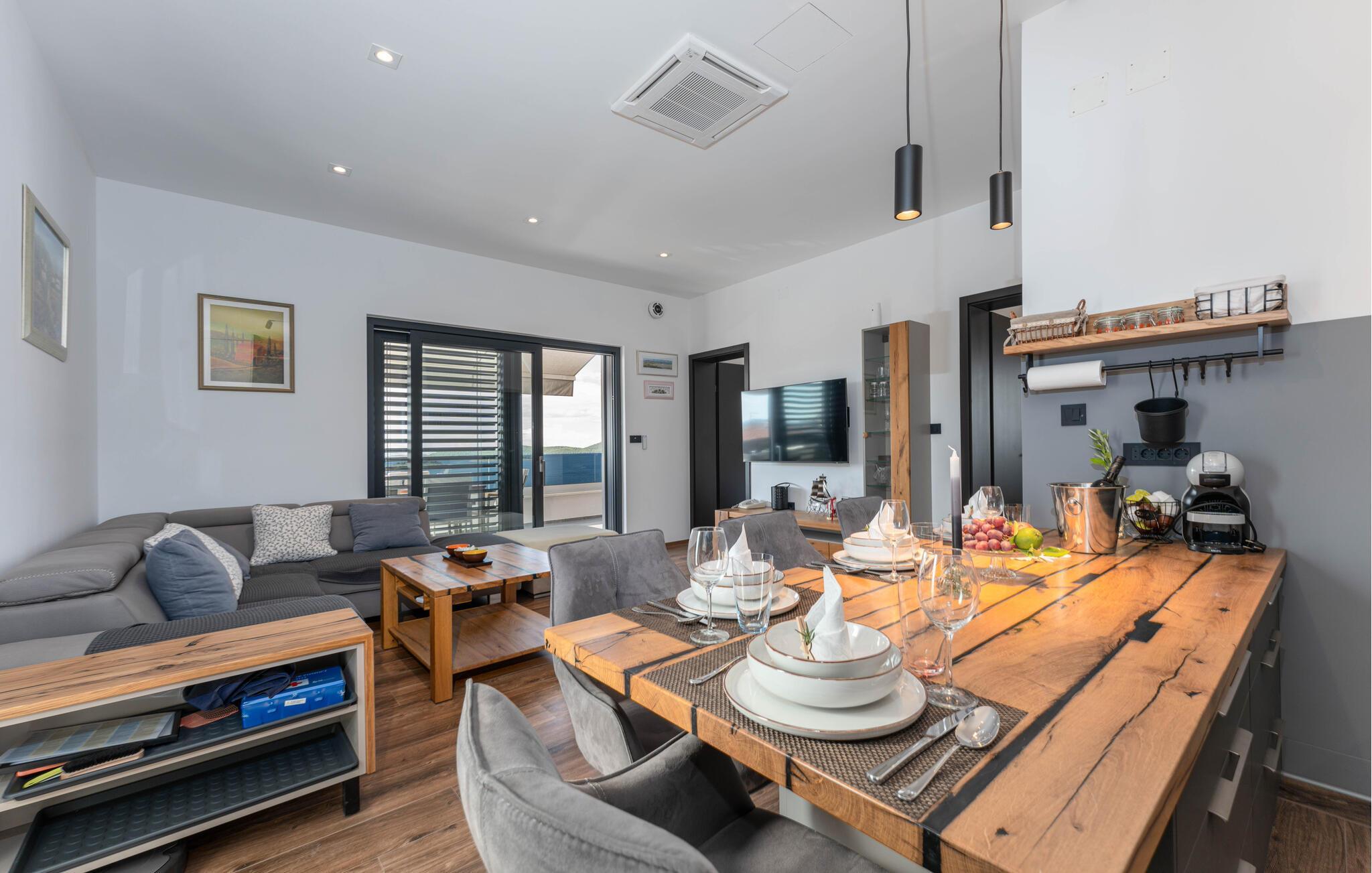 Nur wenige Schritte vom Meer entfernt begrüßt die attraktive Wohnung ihre Gäste. Helle Räume und die komfortable und moderne Ausstattung verleihen ihr ein ansprechendes Flair, sie ist der ideale Ort für eine schöne Auszeit am Meer mit zahlreichen Aktivitäten in der Umgebung. Genießen Sie durch große Fenster den wunderbaren Blick auf das Meer, während Sie am langen Esstisch zu Abend essen.