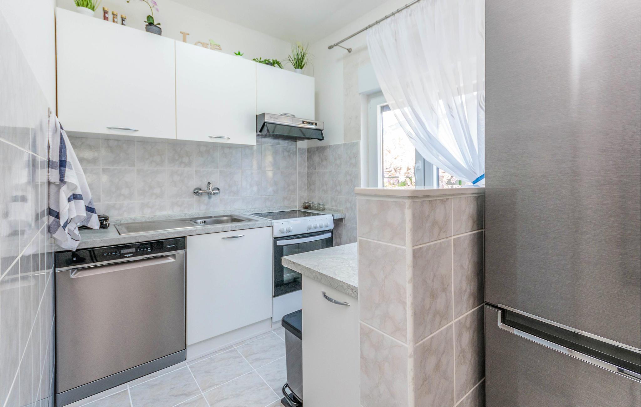 Dank der kurzen Entfernung zum Meer können Sie sich hier jederzeit nach Belieben am Kiesstrand erfrischen. In der Nähe finden Sie Bars, Restaurants und Märkte. Eine kurze Fahrt bringt Sie zu Nationalparks, wo Sie die spektakuläre Natur Dalmatiens kennenlernen können.