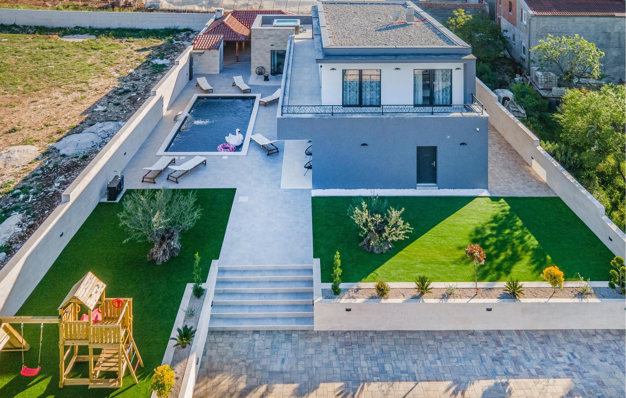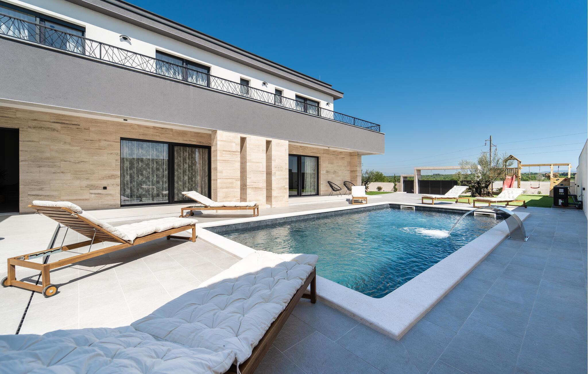 Im Hinterland von Biograd empfängt Sie diese geräumige Luxusvilla mit Swimmingpool und vielen Annehmlichkeiten.