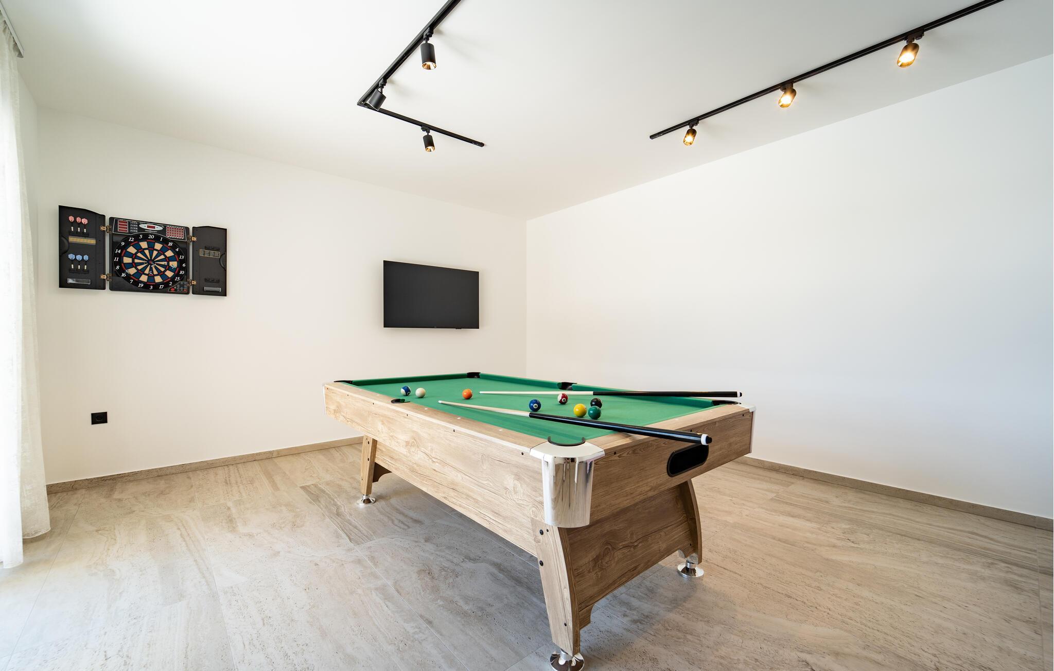 Freuen Sie sich auf diese Wohlfühloase, die Ihrer Großfamilie oder befreundeten Paaren einen Ort der Ruhe und Entspannung verspricht. Das wunderschöne Design, die komfortable Einrichtung und hochwertigen Materialien schaffen ein herrliches Ambiente, in dem Sie Ihren Stress vom Alltag hinter sich lassen können. Während die einen in der modernen Küche zaubern, können die anderen sich zum Billard oder Darts herausfordern oder im Fitnessraum mit hochwertiger Ausstattung und Infrarotsauna sich auspowern oder entspannen.