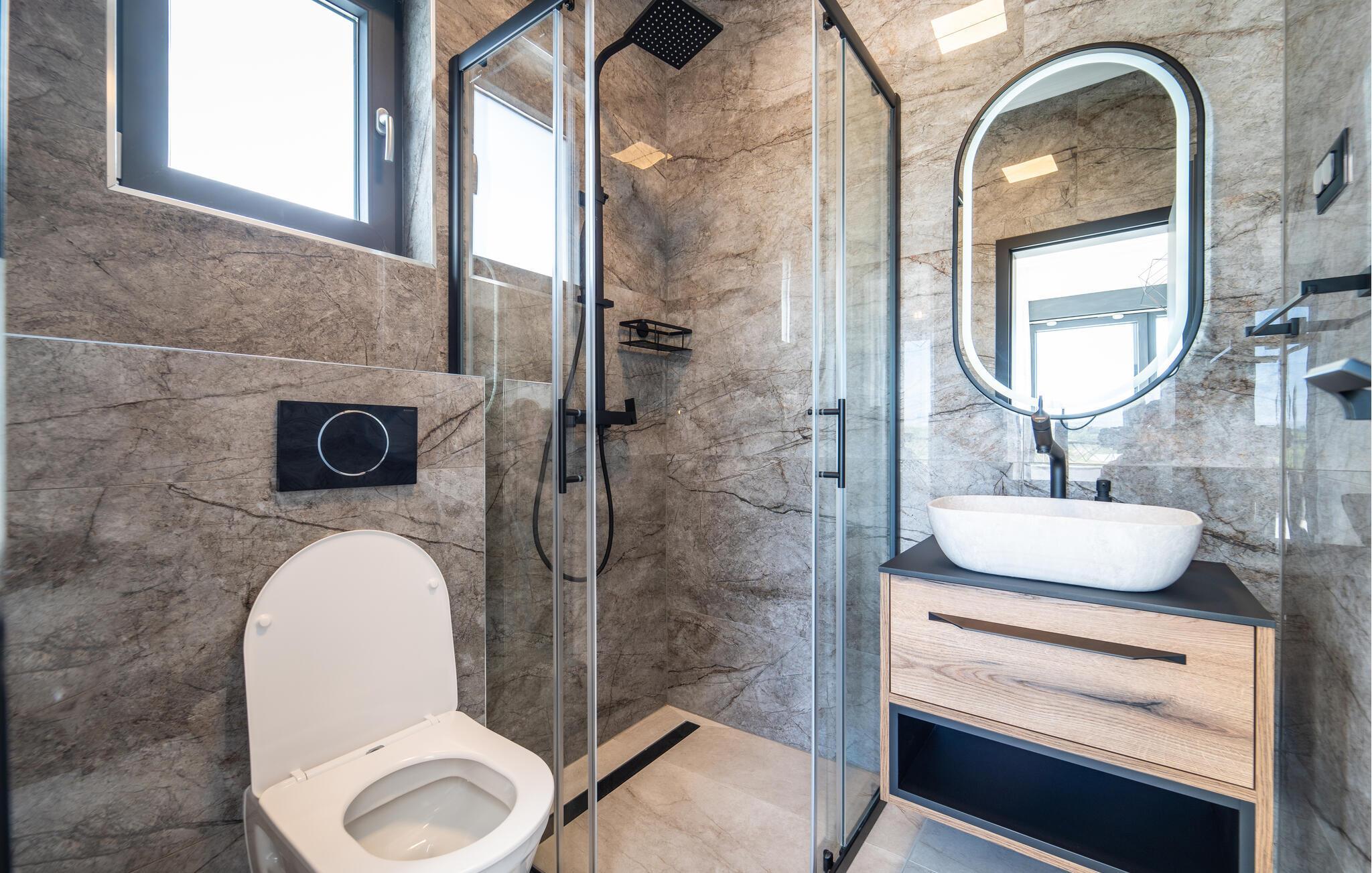 Badezimmer 4m2 (nr. 5) - WC. Warmes und kaltes Wasser. Dusche